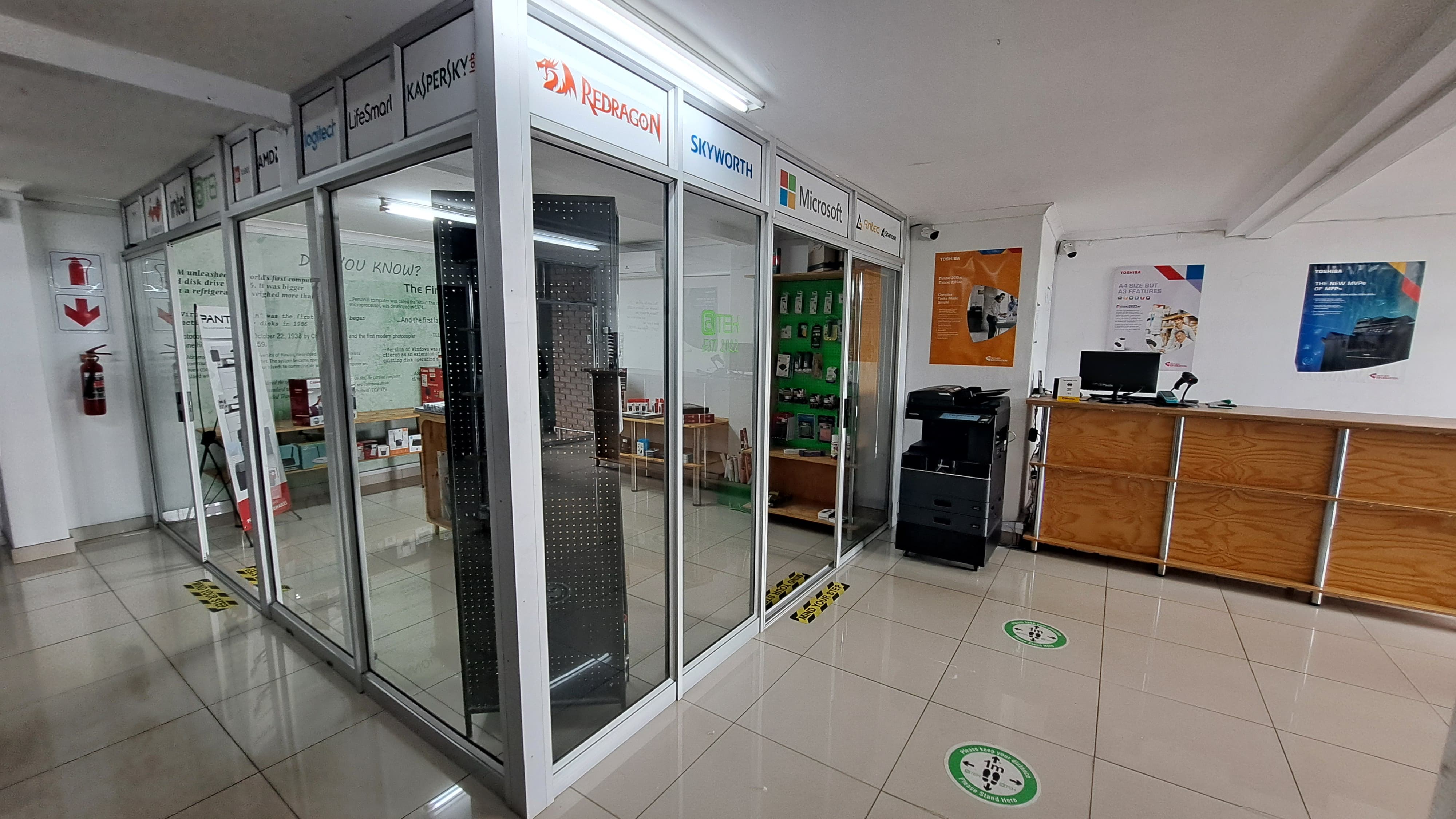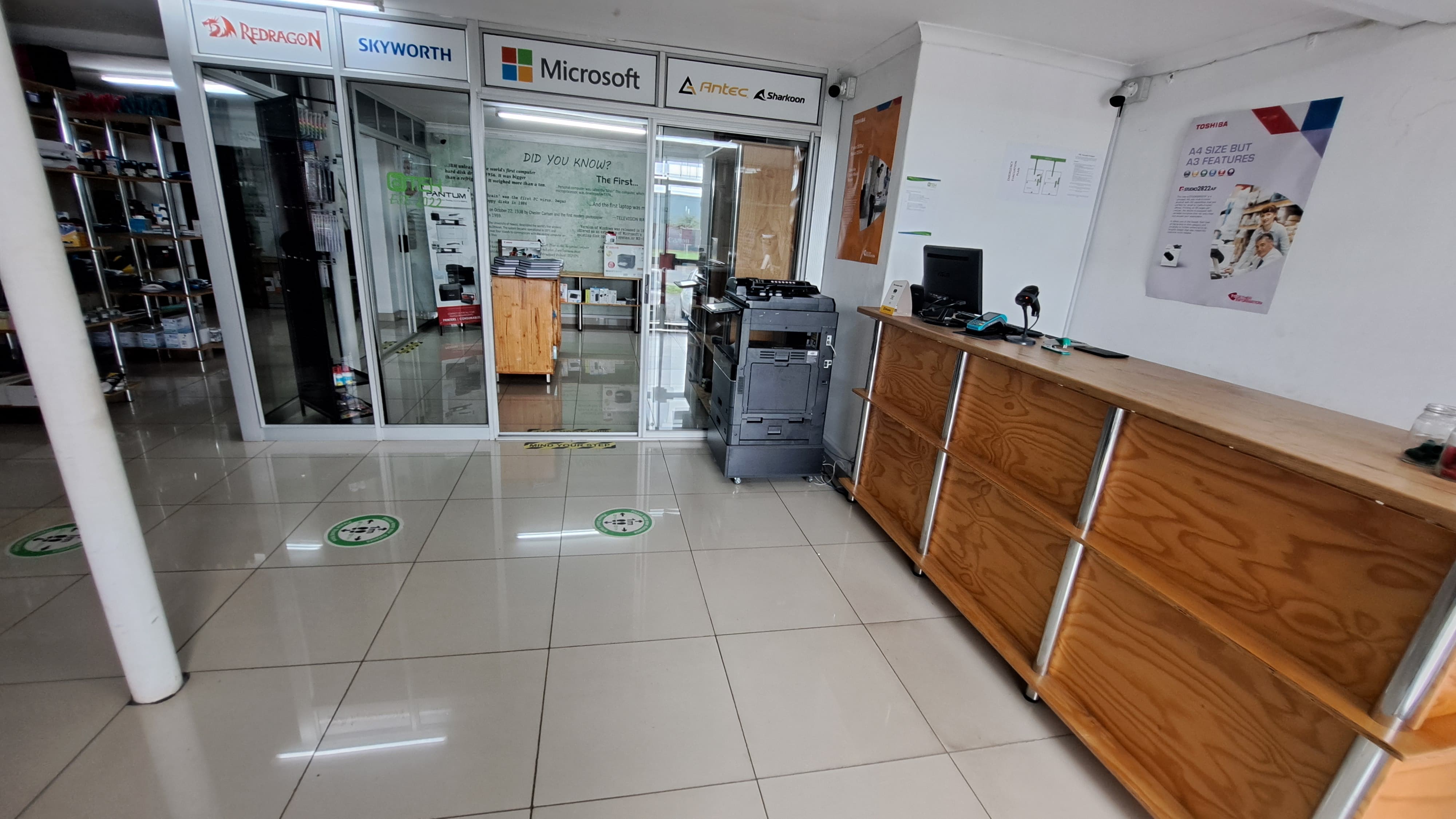 The unit is fully air-conditioned and comprises a welcoming showroom area, a dedicated workshop space, and a separate office component, ensuring an efficient workflow between customer-facing and operational areas.