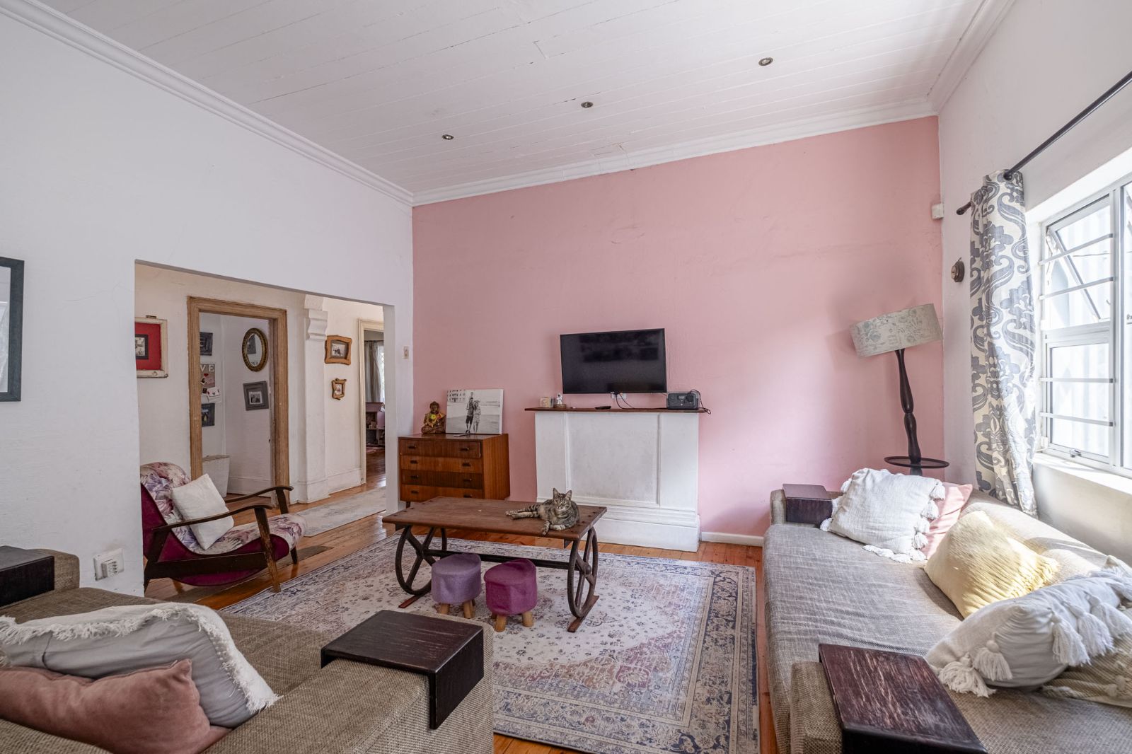 This 1874 character home in history-rich Richmond Hill invites you to step back in time without sacrificing modern comfort. North-facing and gracefully appointed, it offers three generous bedrooms and a single full bathroom plus a guest toilet, and laundry ensuring space and convenience for family and guests alike. The living areas flow seamlessly—the lounge, dining, and kitchen form an open-plan layout that lends a welcoming, sociable atmosphere. French doors open to a patio and undercover braai area, where you can overlook a tranquil natural garden and a refreshing pool, perfect for relaxing weekends or al fresco entertaining. Beautiful Oregon pine floors run throughout, paired with leadlight details that add heritage charm, while most windows have been upgraded to aluminium for modern efficiency.