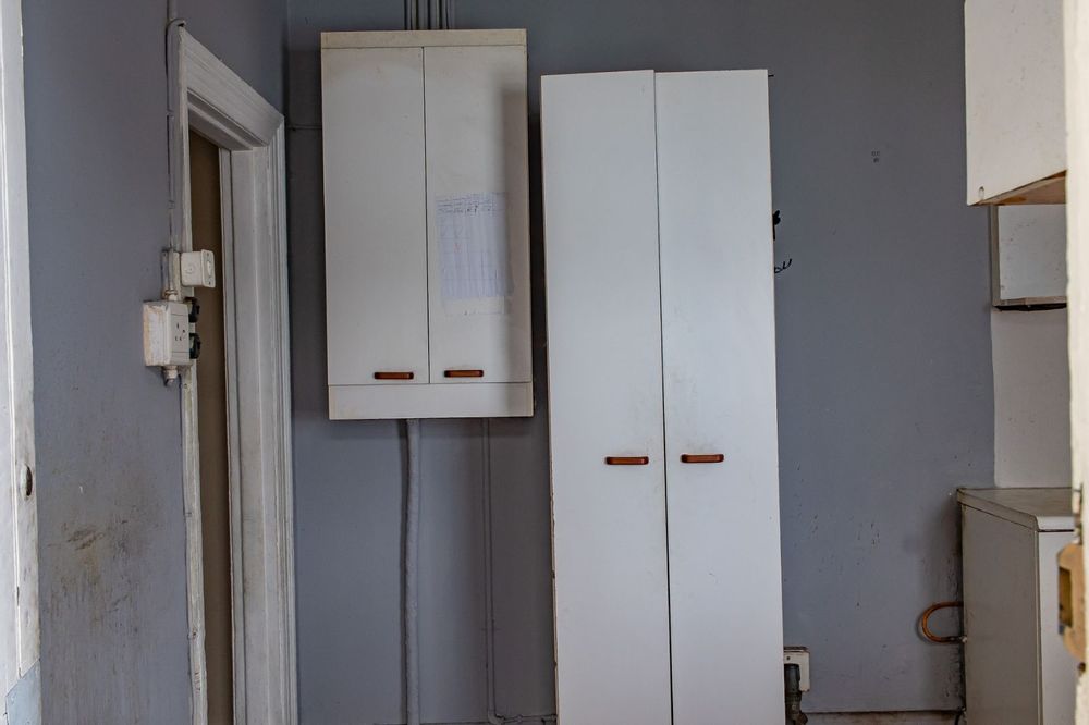 The property features three spacious bedrooms, a neat full bathroom, and a functional kitchen that flows into a comfortable living area. High ceilings and large windows enhance the sense of space and natural light throughout the home.