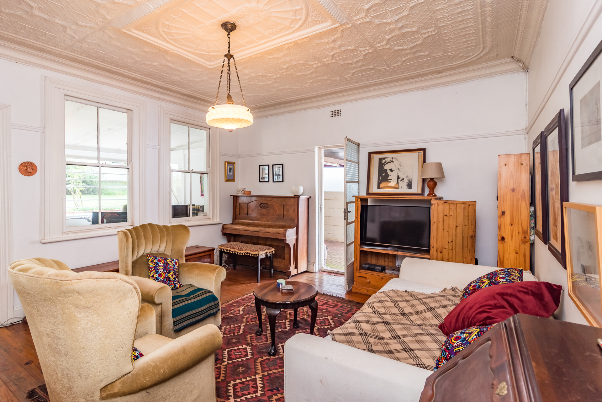 Built in 1907, with original 109-year-old steel-pressed ceilings imported from the United Kingdom. Oregon wood floors . Red Patio with period galvanized roof.
