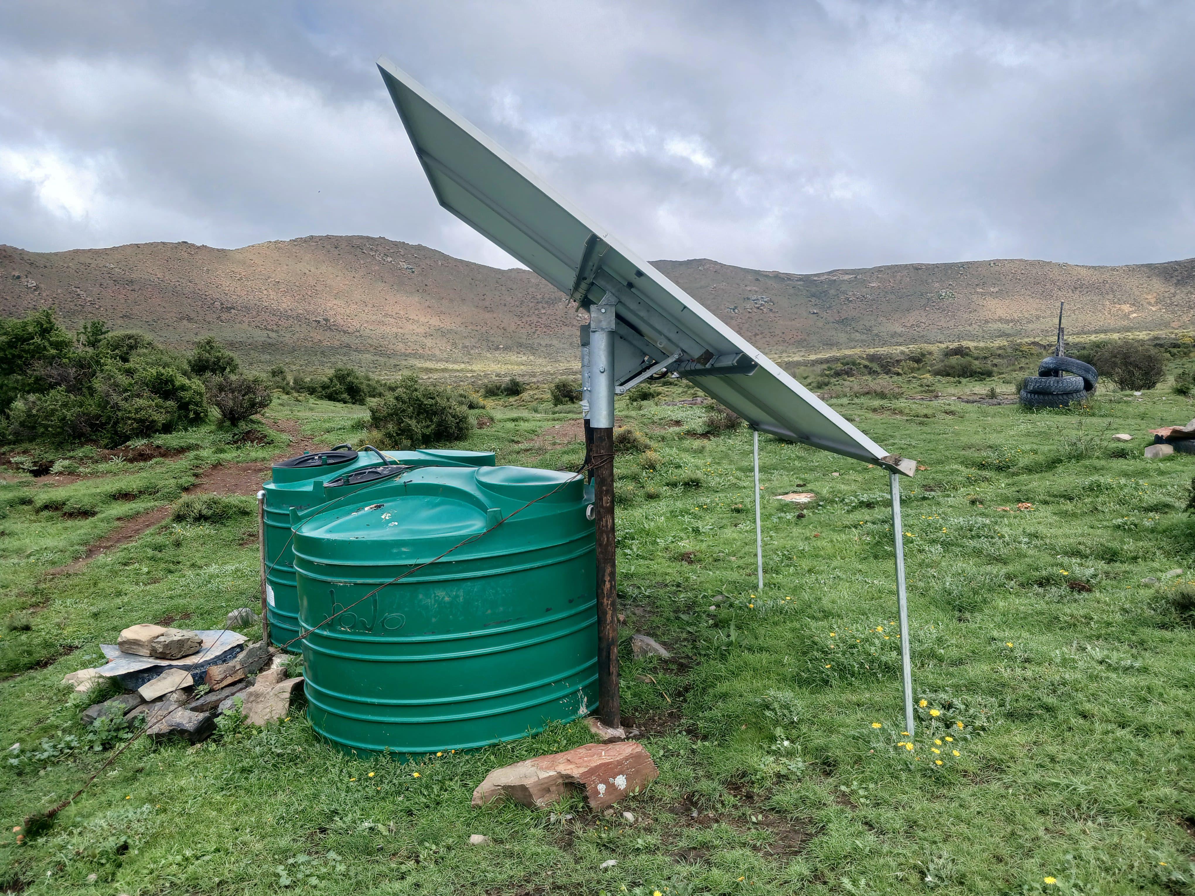 - Die fonteine is toegerus met sonpompe.