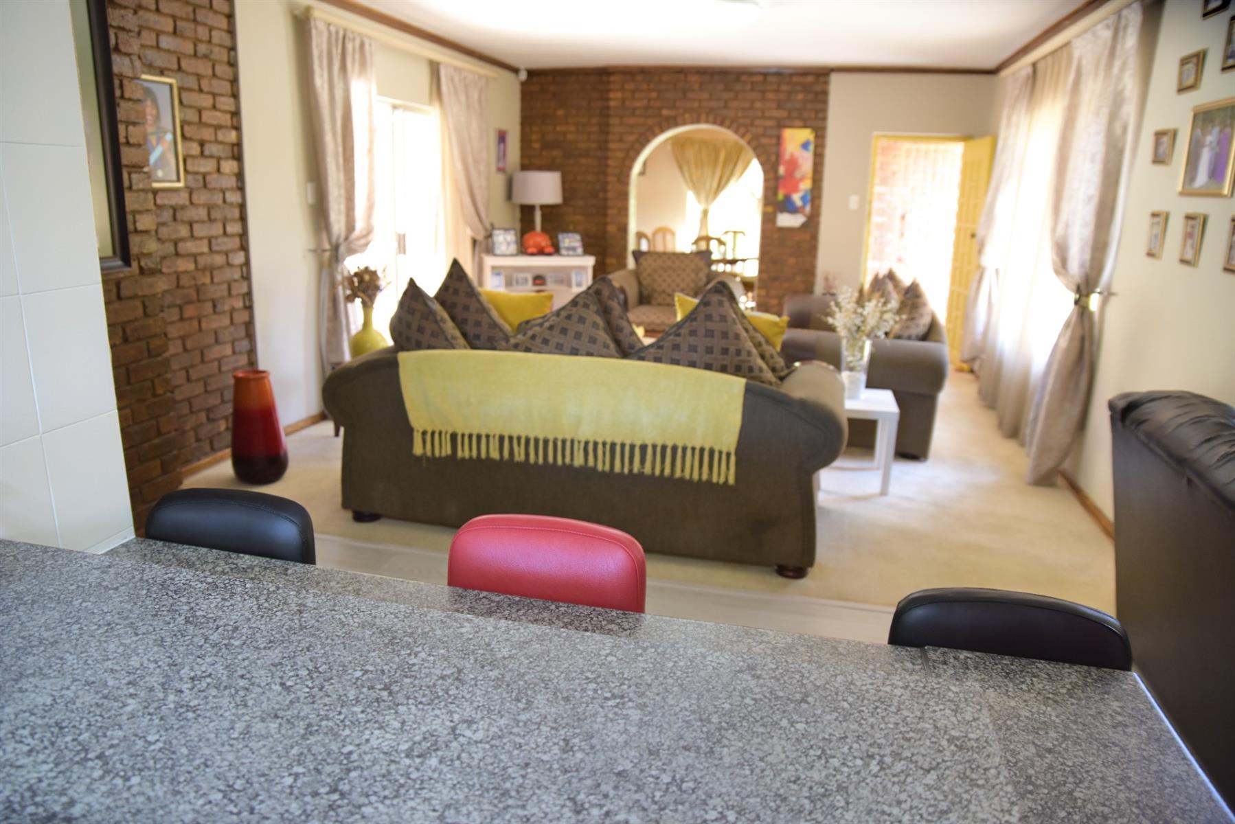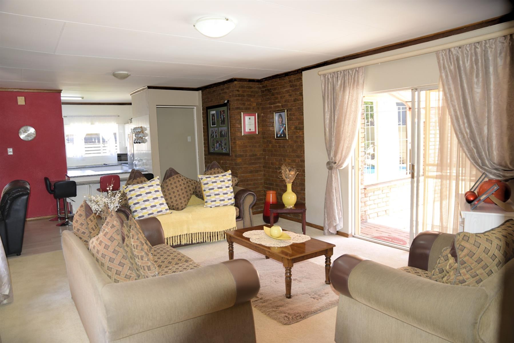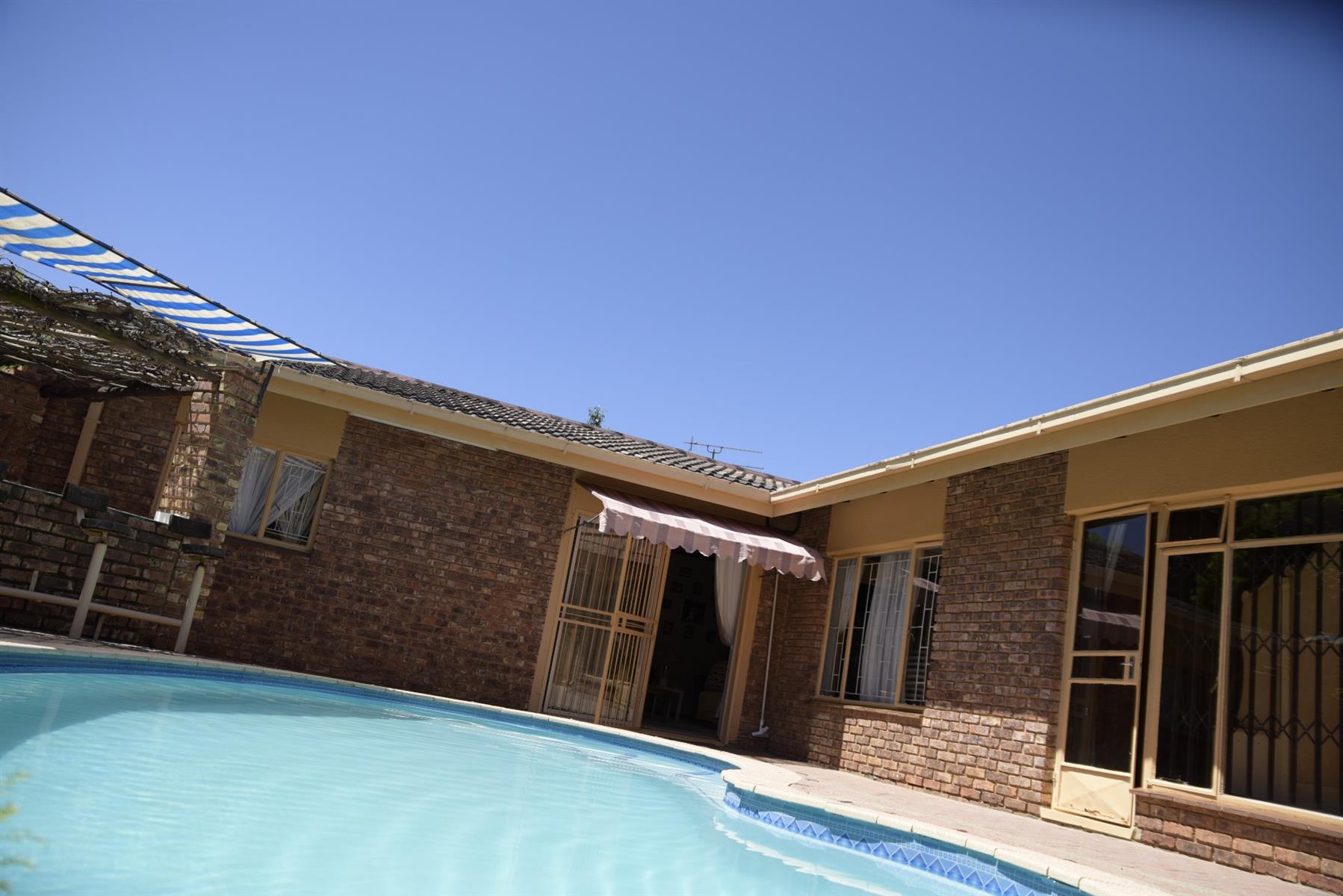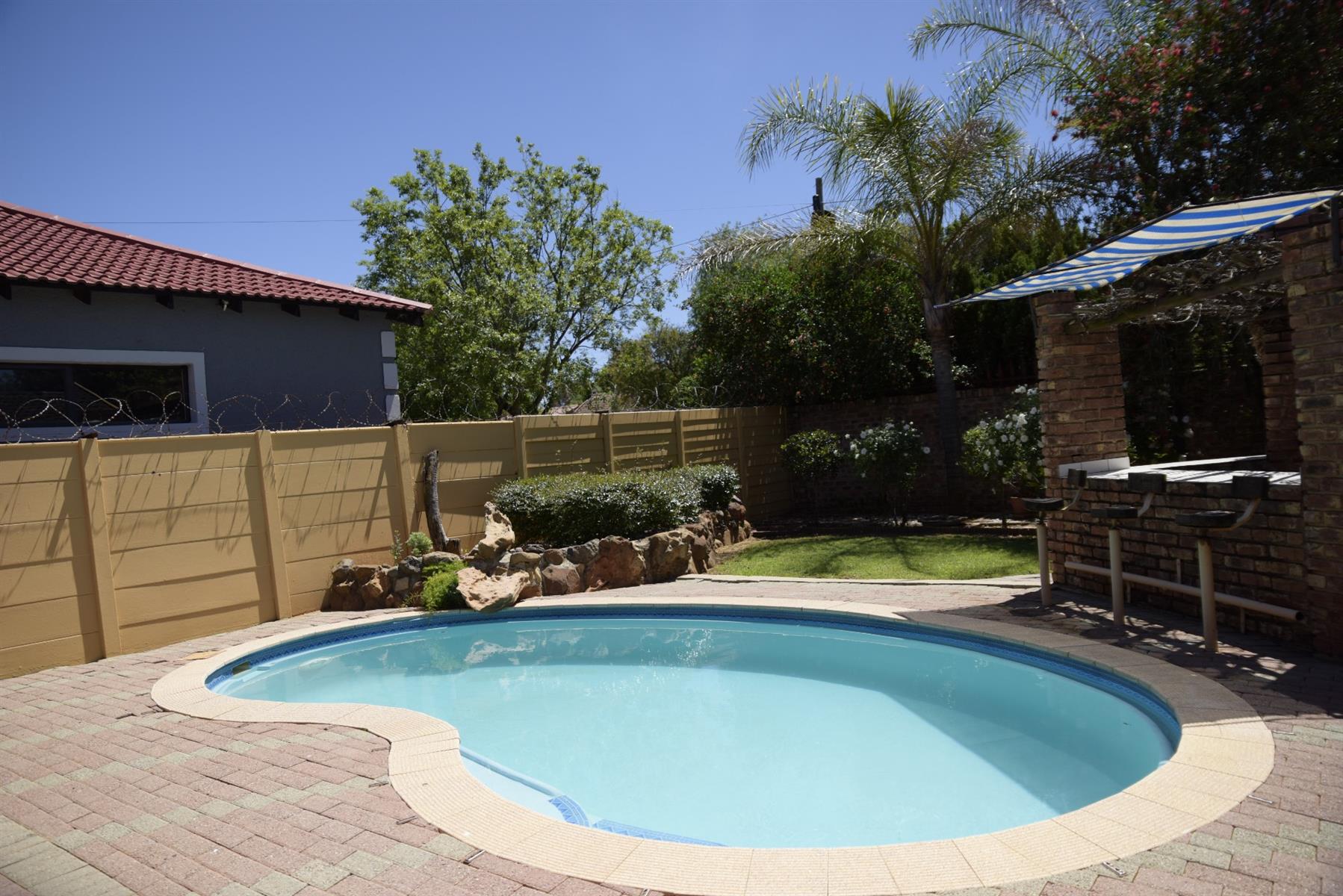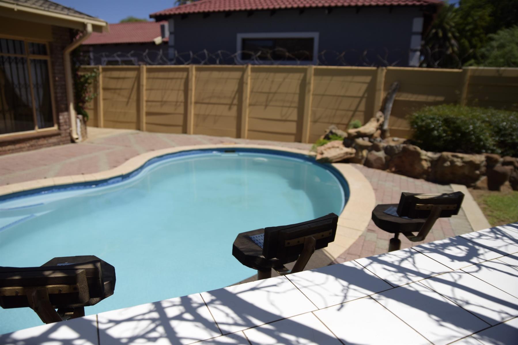 Glass doors open to a sun-splashed patio overlooking a sparkling pool and manicured garden — a haven for summer braais, laughter, and weekend fun. And with your very own poolside bar, entertaining friends and family has never been easier or more enjoyable.