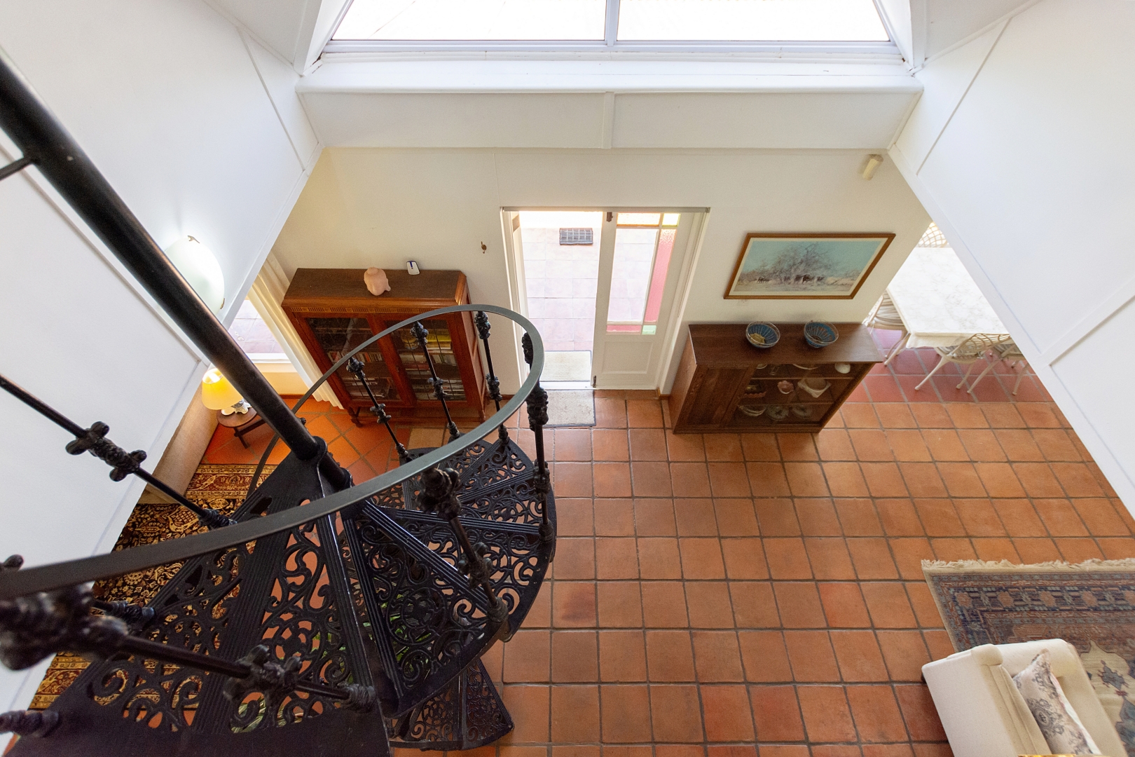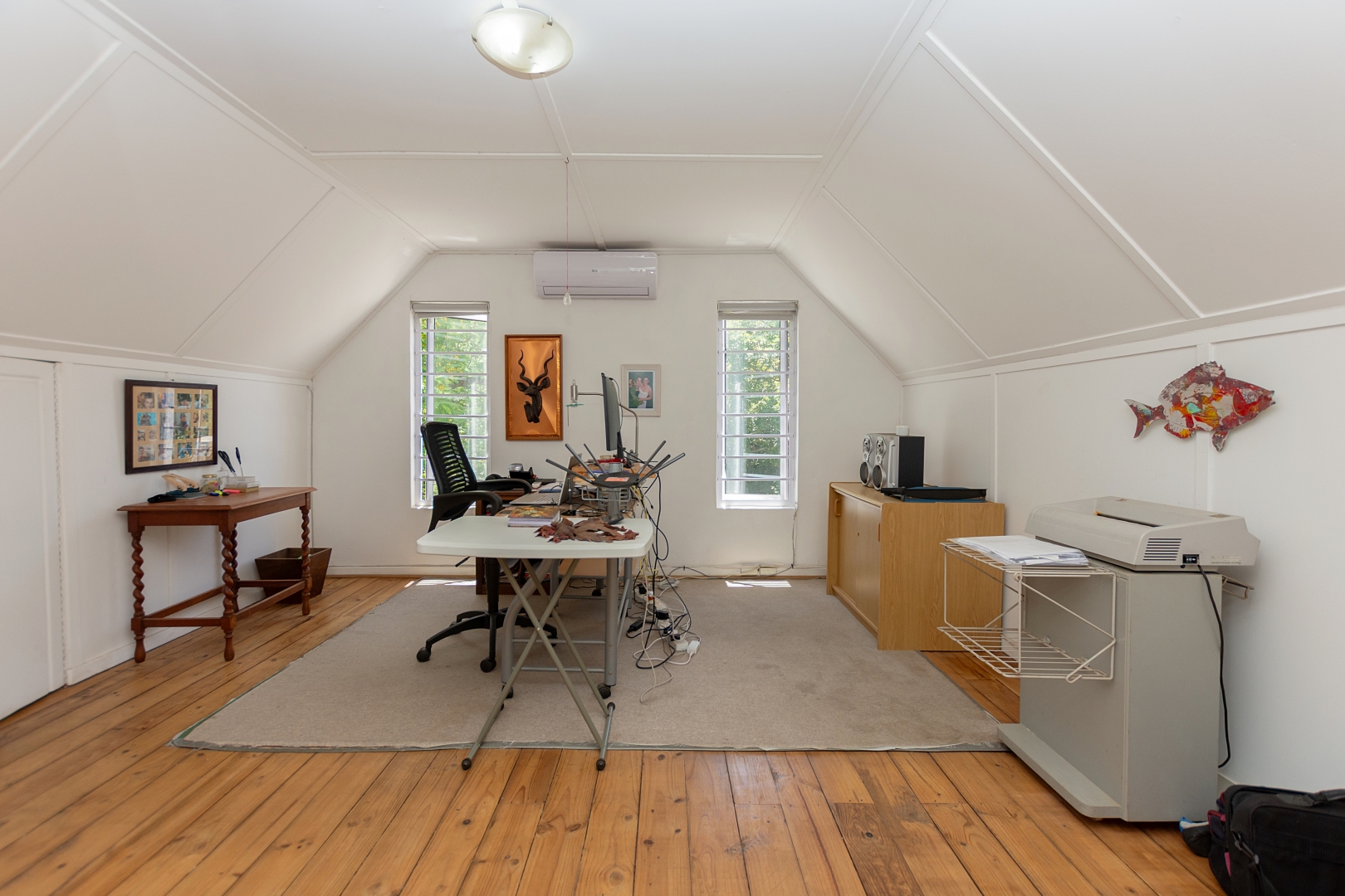 The well-equipped kitchen provides abundant cupboard space and connects directly to a practical storeroom and laundry, keeping daily life running with ease. A flexible downstairs bedroom opens directly to the garden, making it ideal as a serene guest suite, inspiring office, or creative studio. The generously proportioned main suite completes the lower level, featuring air-conditioning and elegant French doors that spill out onto the verandah and gardens beyond.