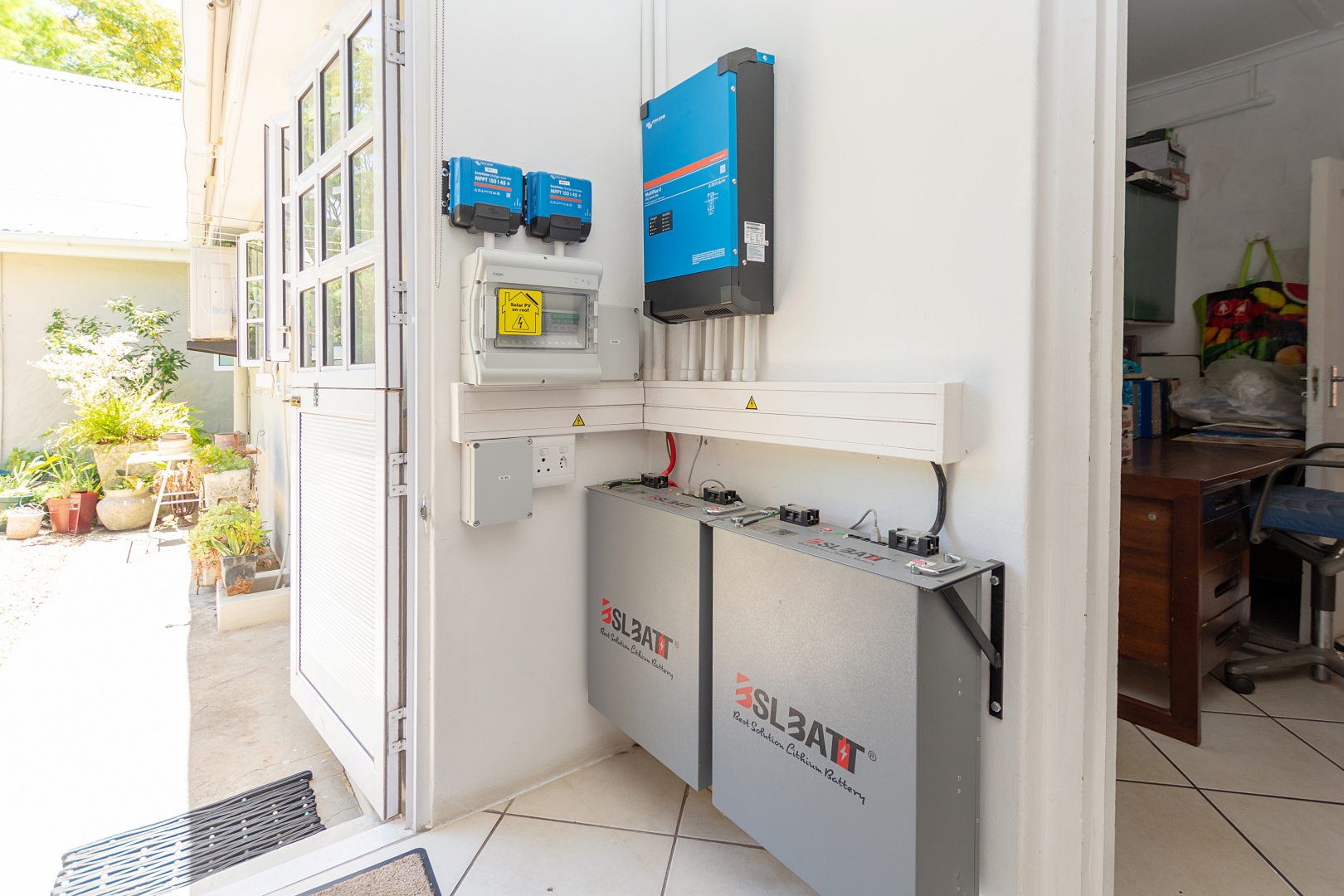 Modern comforts blend seamlessly with country tranquillity: a double garage with an automated door, a full alarm system, a borehole with automated irrigation, solar power for energy resilience, and fibre connectivity for effortless remote work and streaming.