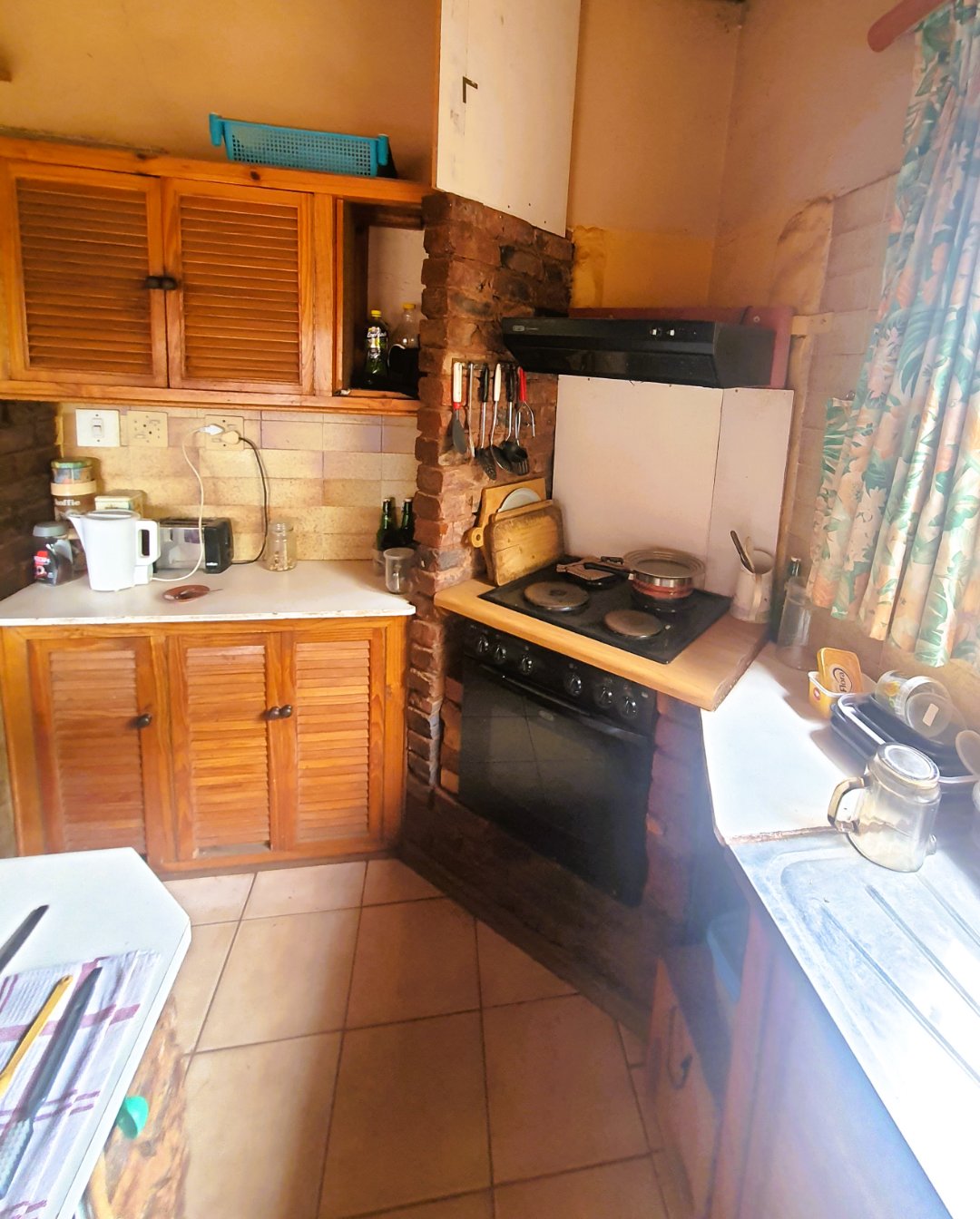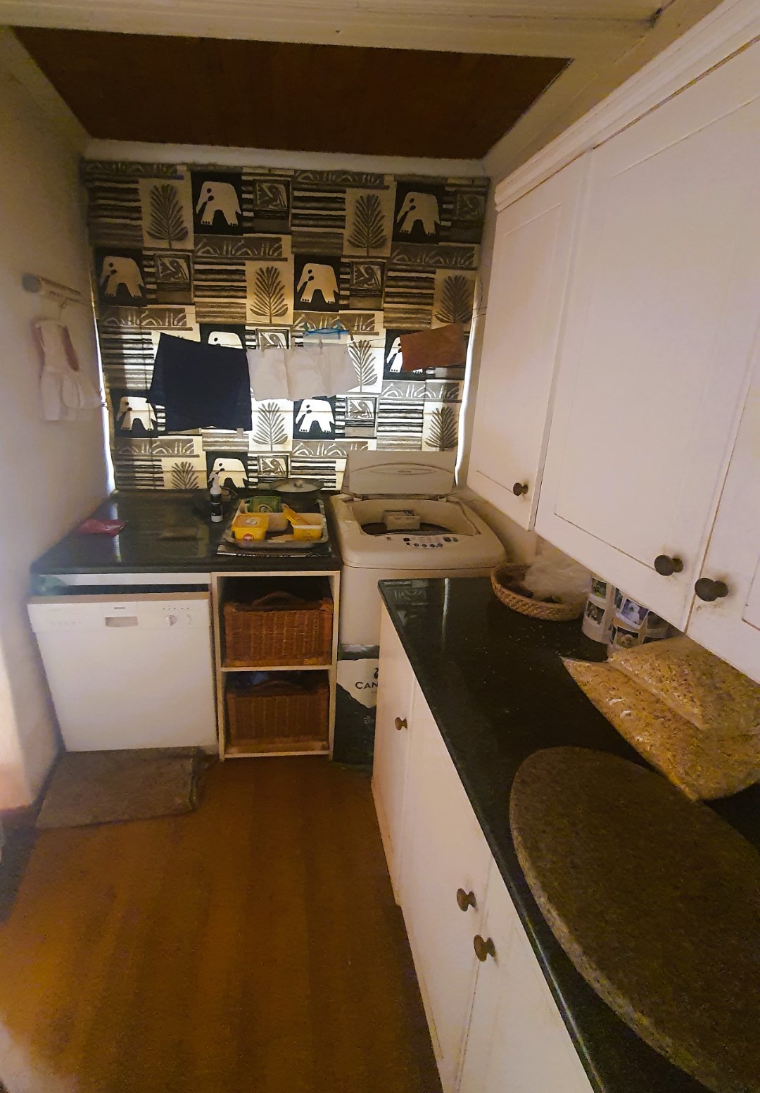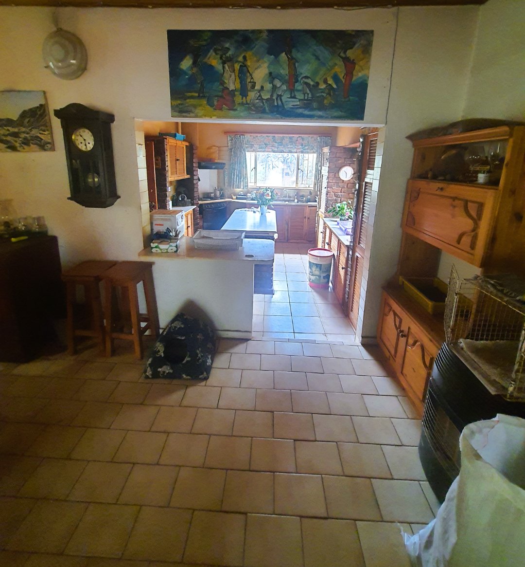 This 8.1-hectare smallholding offers spacious living, ideal for a comfortable lifestyle and functional use. The main house boasts an open-plan lounge and family room, seamlessly connected to the kitchen, which includes a breakfast nook, stove with hob and oven, melamine countertops, and ample space for a double fridge. A separate scullery provides additional convenience and accommodation for a washing machine and tumble dryer.