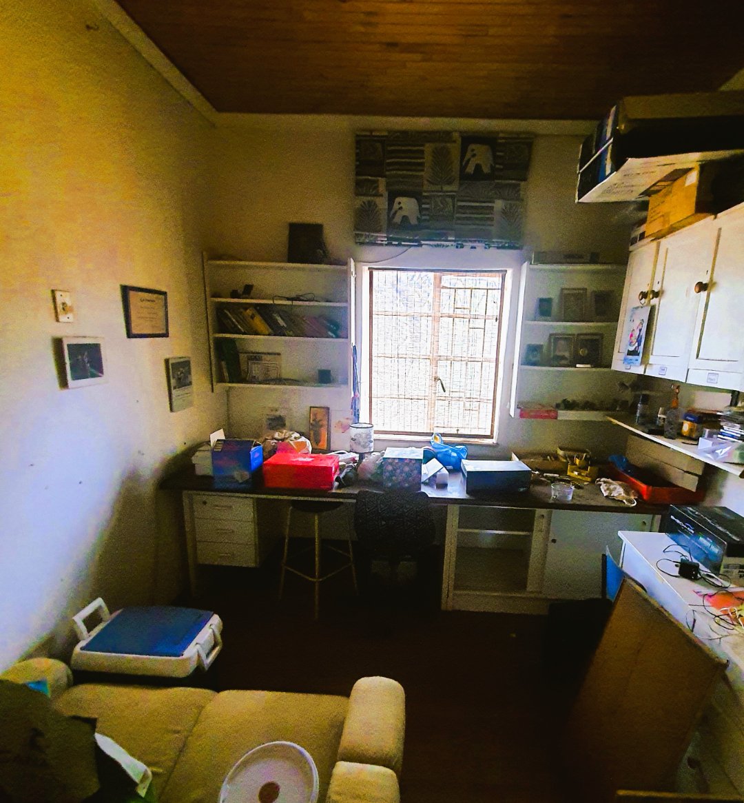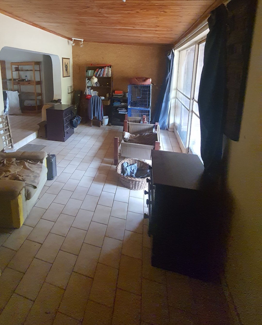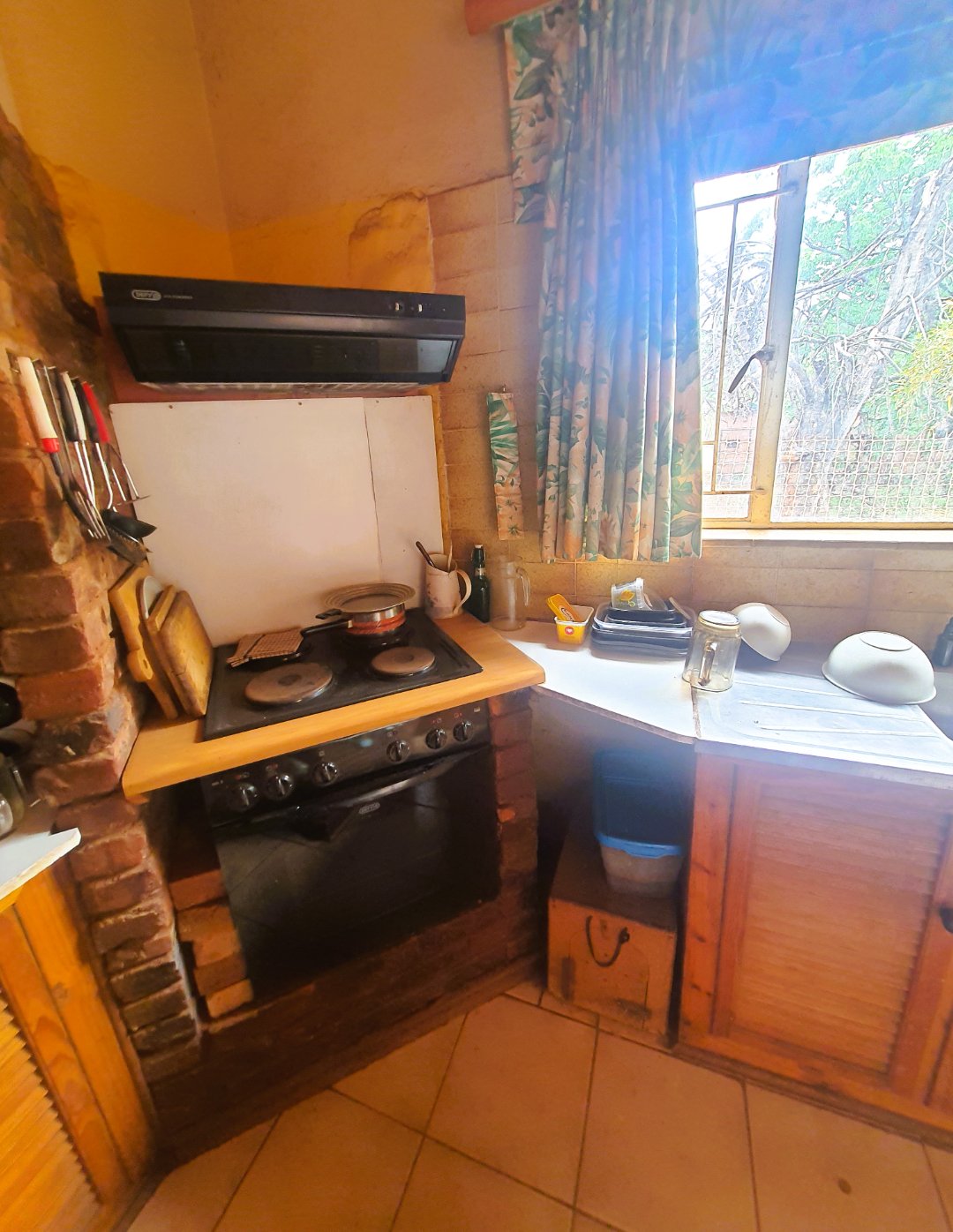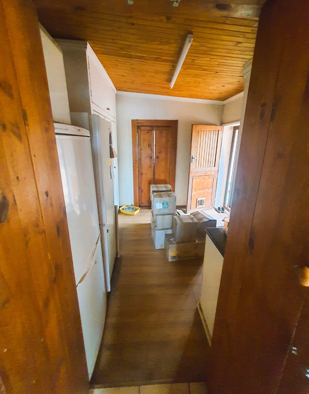 This 8.1-hectare smallholding offers spacious living, ideal for a comfortable lifestyle and functional use. The main house boasts an open-plan lounge and family room, seamlessly connected to the kitchen, which includes a breakfast nook, stove with hob and oven, melamine countertops, and ample space for a double fridge. A separate scullery provides additional convenience and accommodation for a washing machine and tumble dryer.