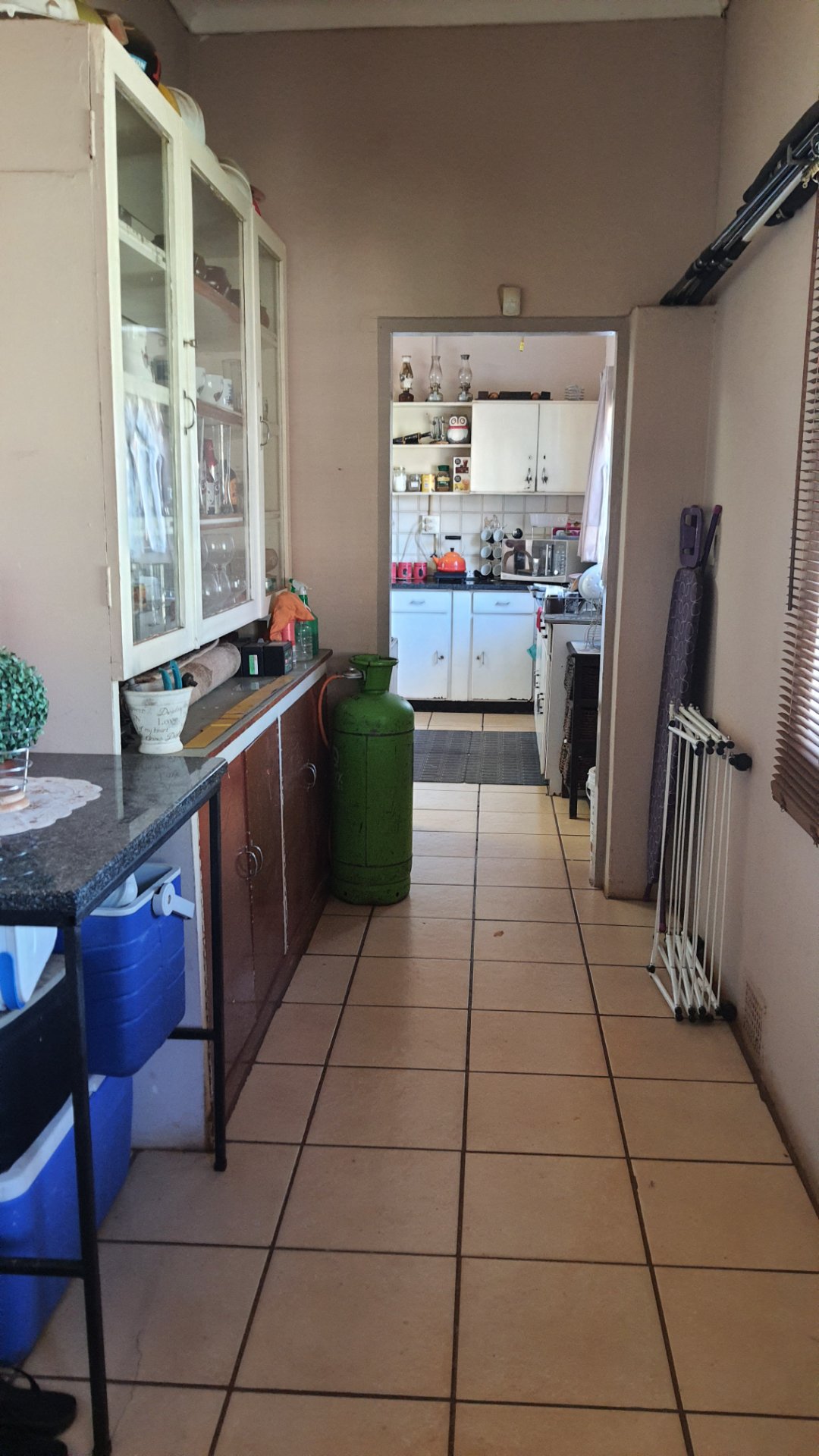 Property 1 (+/-200 sqm): This house offers open plan Living and dining room area, a Large kitchen with a walk-in pantry, two built-in ovens, no stove, washroom, 4 Bedrooms, 1 Bathroom which is an en-suite, Geyser, security gates at rooms, extra storage space, security gates at all the entrances, 2 Carports, 3 storage spaces outside can be used for cars, 1,5 built-garage with another two carports, alarm needs attention.