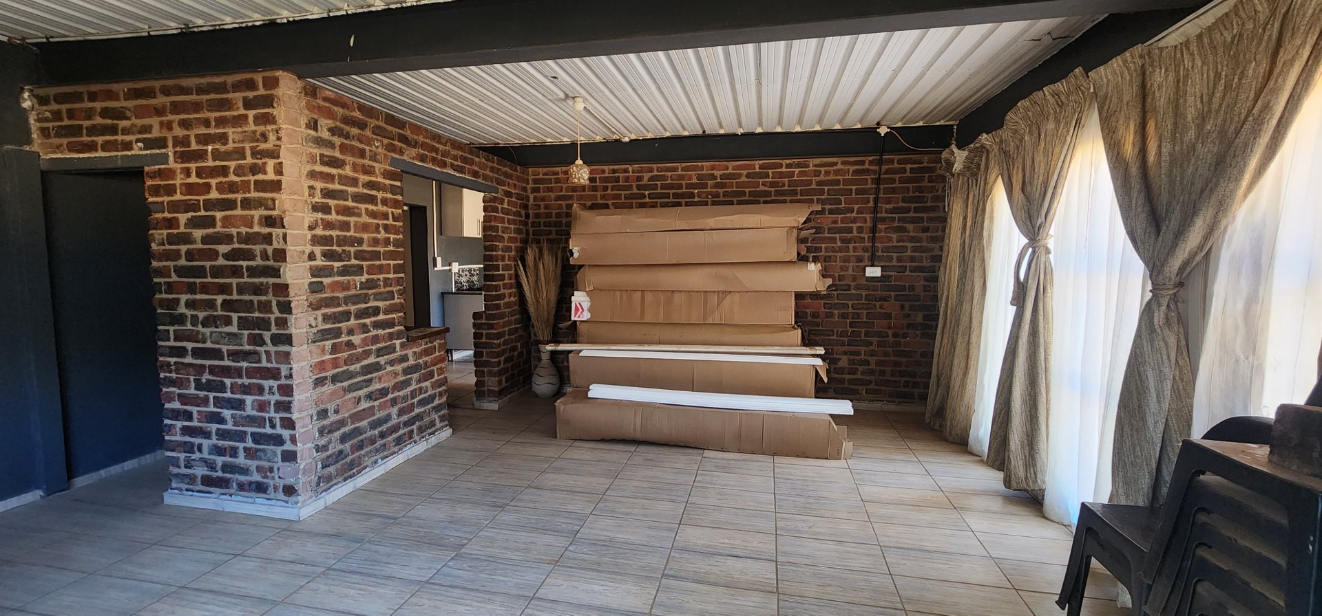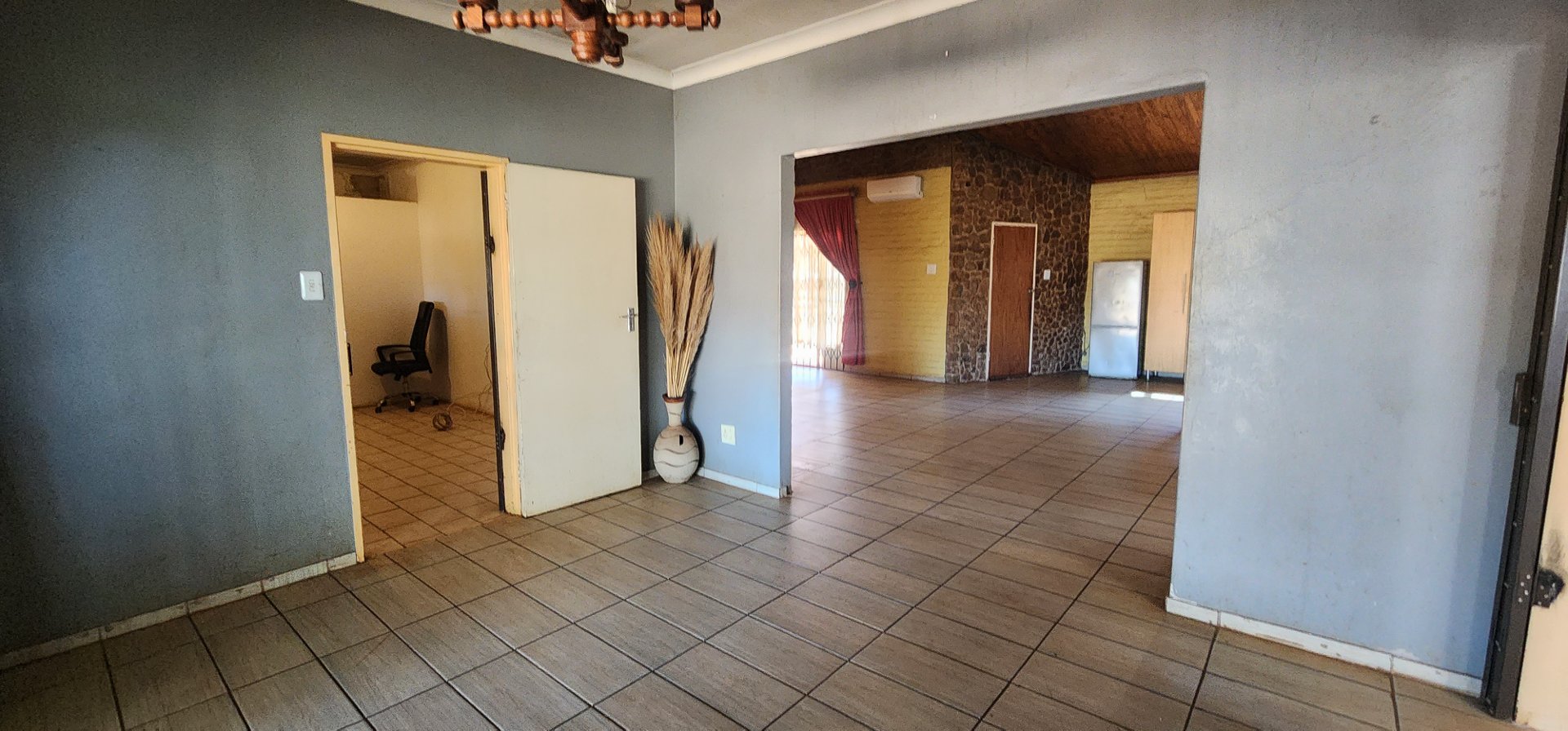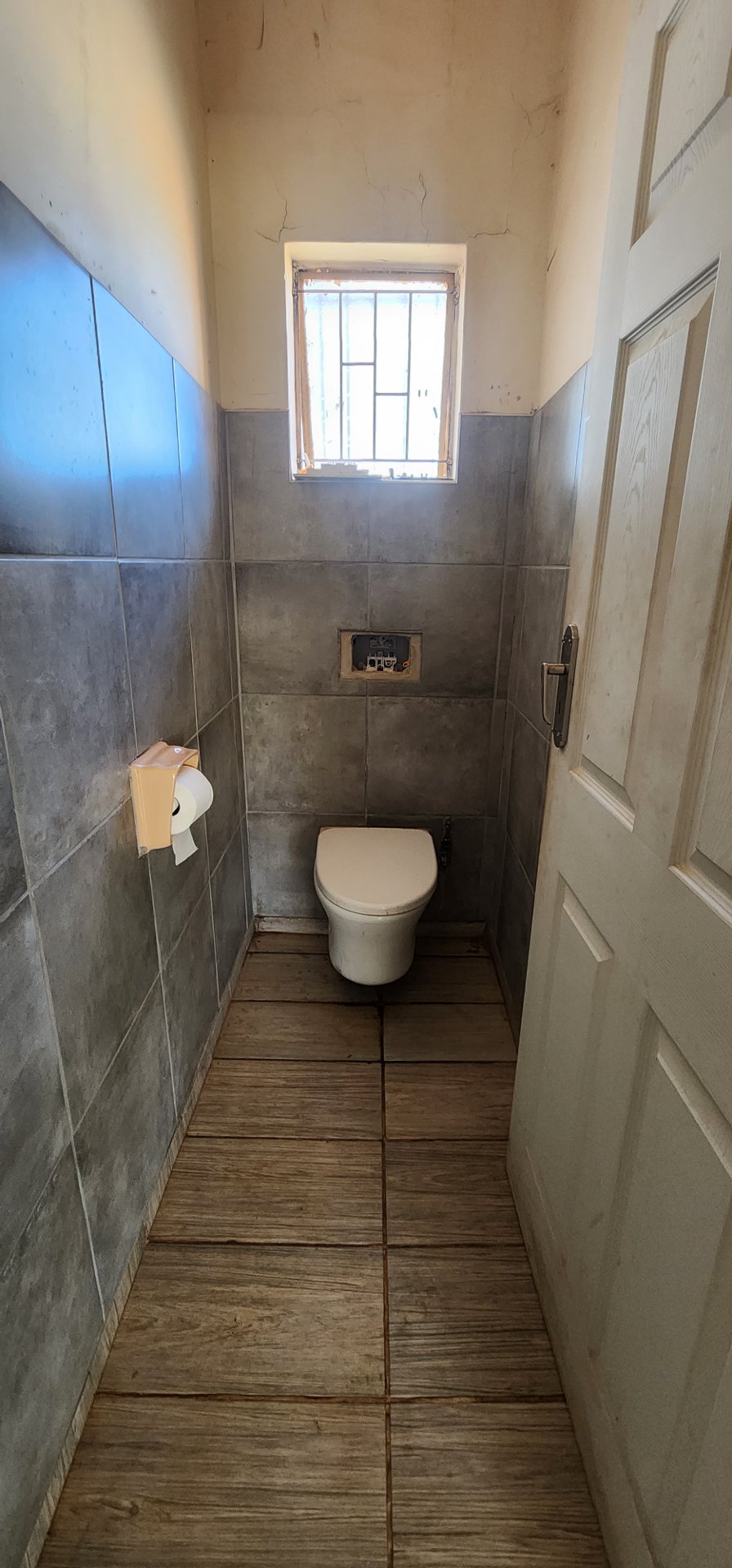 A storeroom offers extra storage space, and the borehole with three 2200-litre tanks ensures a reliable water supply. The garage includes an extra toilet, shower, and basin, although this is currently unfinished. The property is serviced by one septic tank.