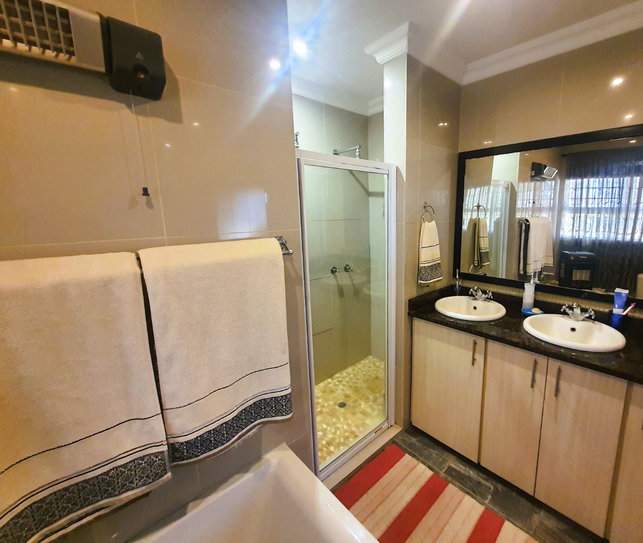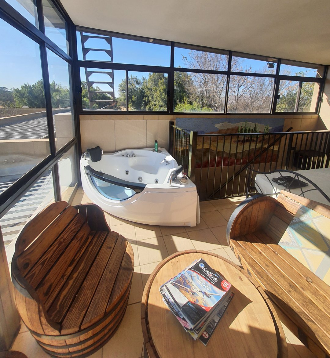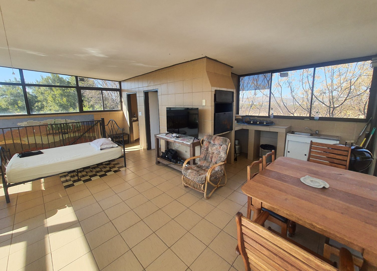 Upstairs, a full open-plan braai and entertainment area with tiled floors, abundant natural light, a jacuzzi, and a private bathroom (shower, toilet, basin) makes for the perfect entertaining area or guest suite, studio, or bachelor's rental option.