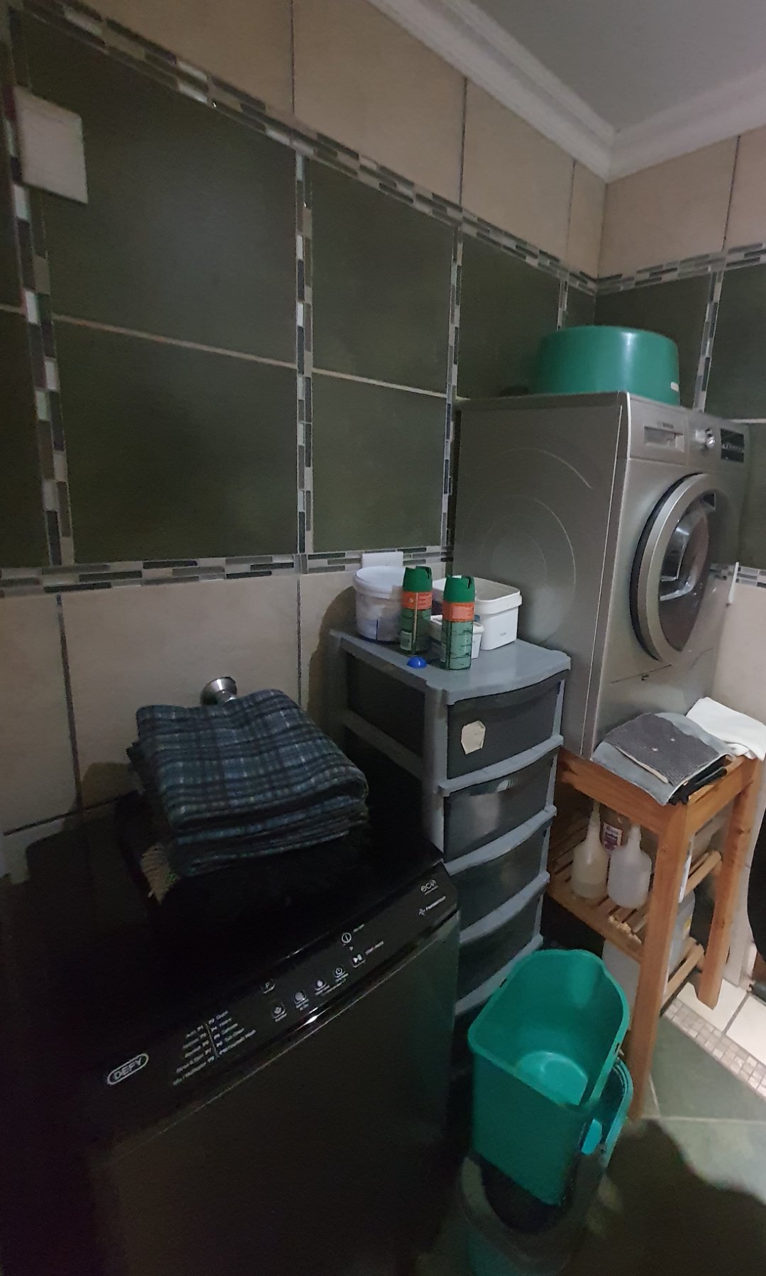 - Laundry area, storeroom, and second bachelor's unit with kitchen, pantry, and bathroom (shower, toilet, basin). The inverter for the Solar systems is installed in this unit.