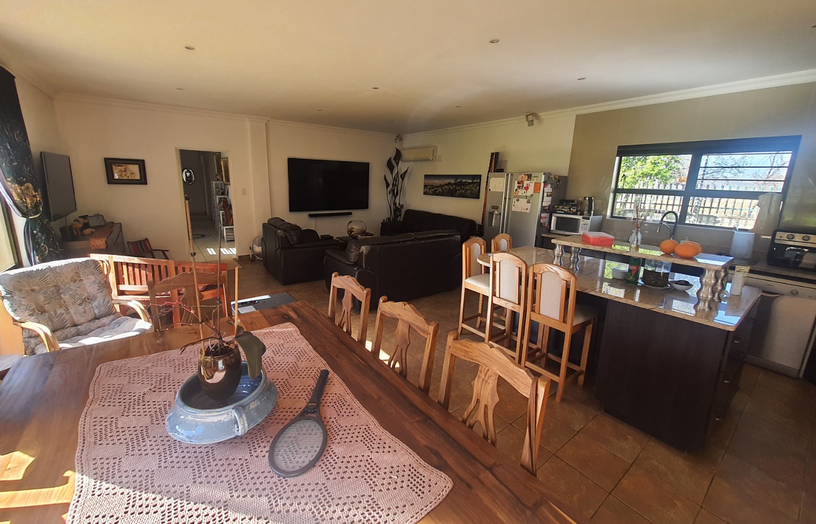 Step into secure, luxury farm-style living with a spacious 3-bedroom home nestled in a tranquil, landscaped setting. This beautiful property offers open plan living with a stylish kitchen featuring granite tops, a breakfast nook, gas stove and oven, dishwasher connection, all flowing seamlessly into the family room, lounge, and dining area, complete with air-conditioning.
