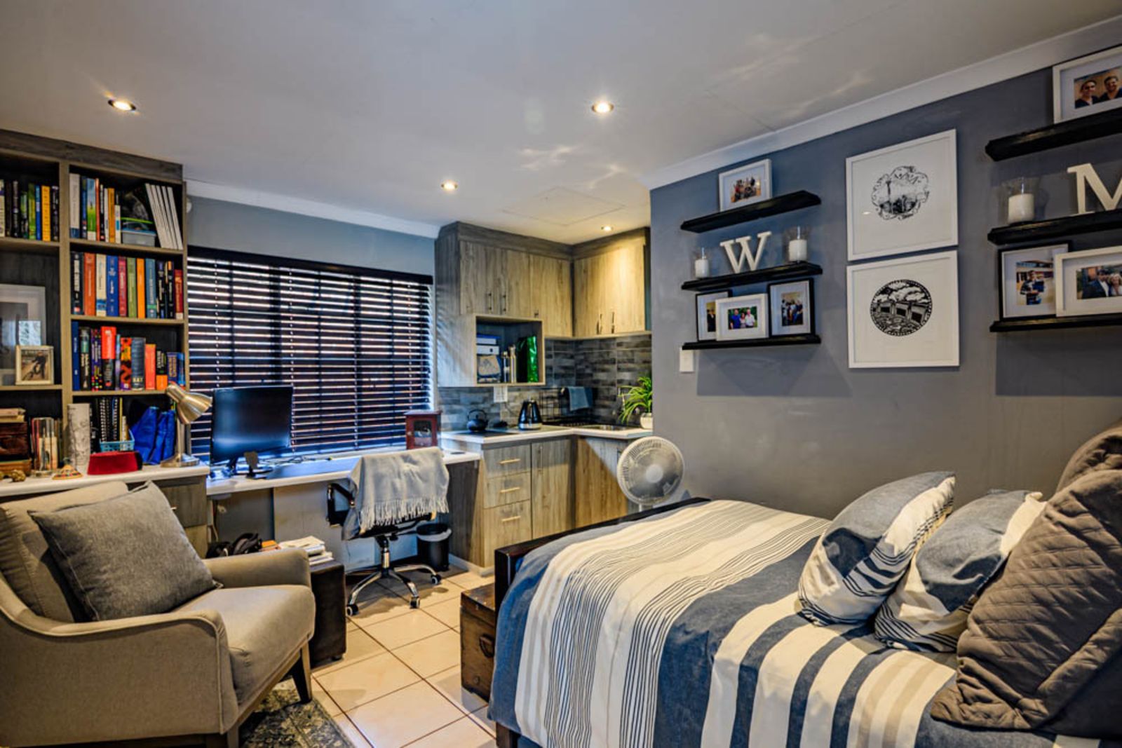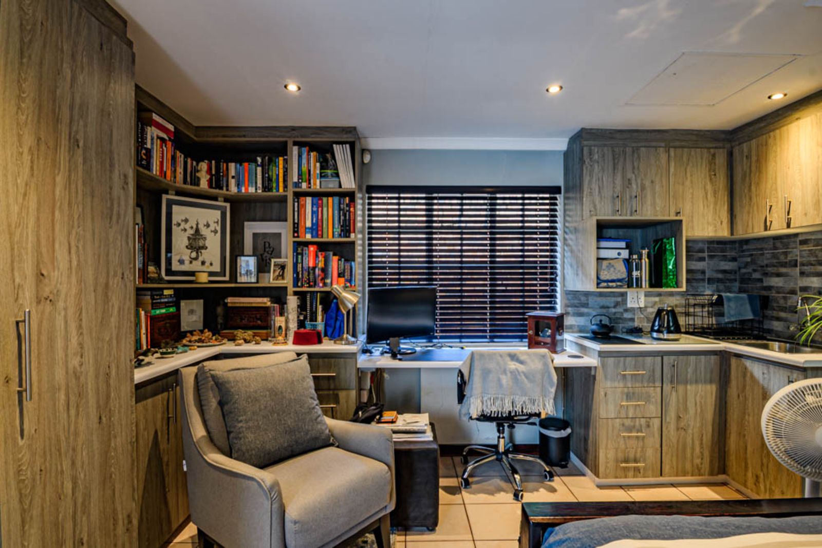 The flatlet is very modern with a special cupboard solution designed by a graphic designer. It is also fully equipped with its own bathroom, kitchen and study nook. This additional flatlet provides excellent flexibility for extended family, home office, or supplementary income.