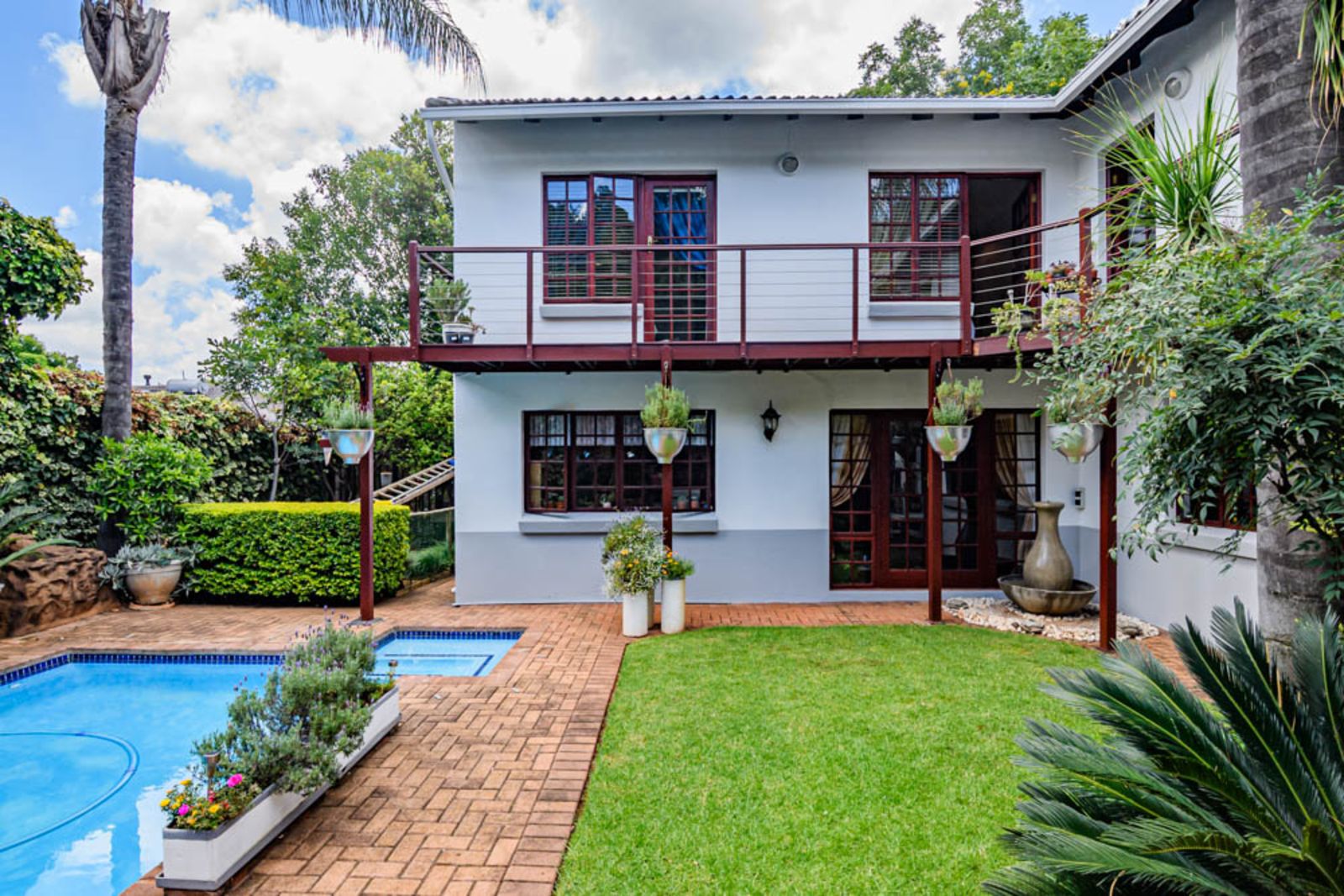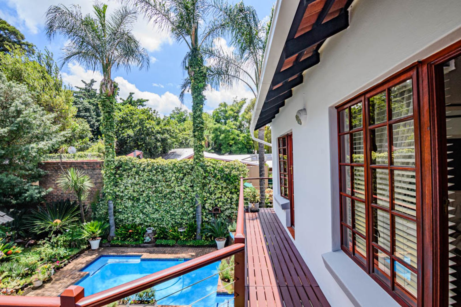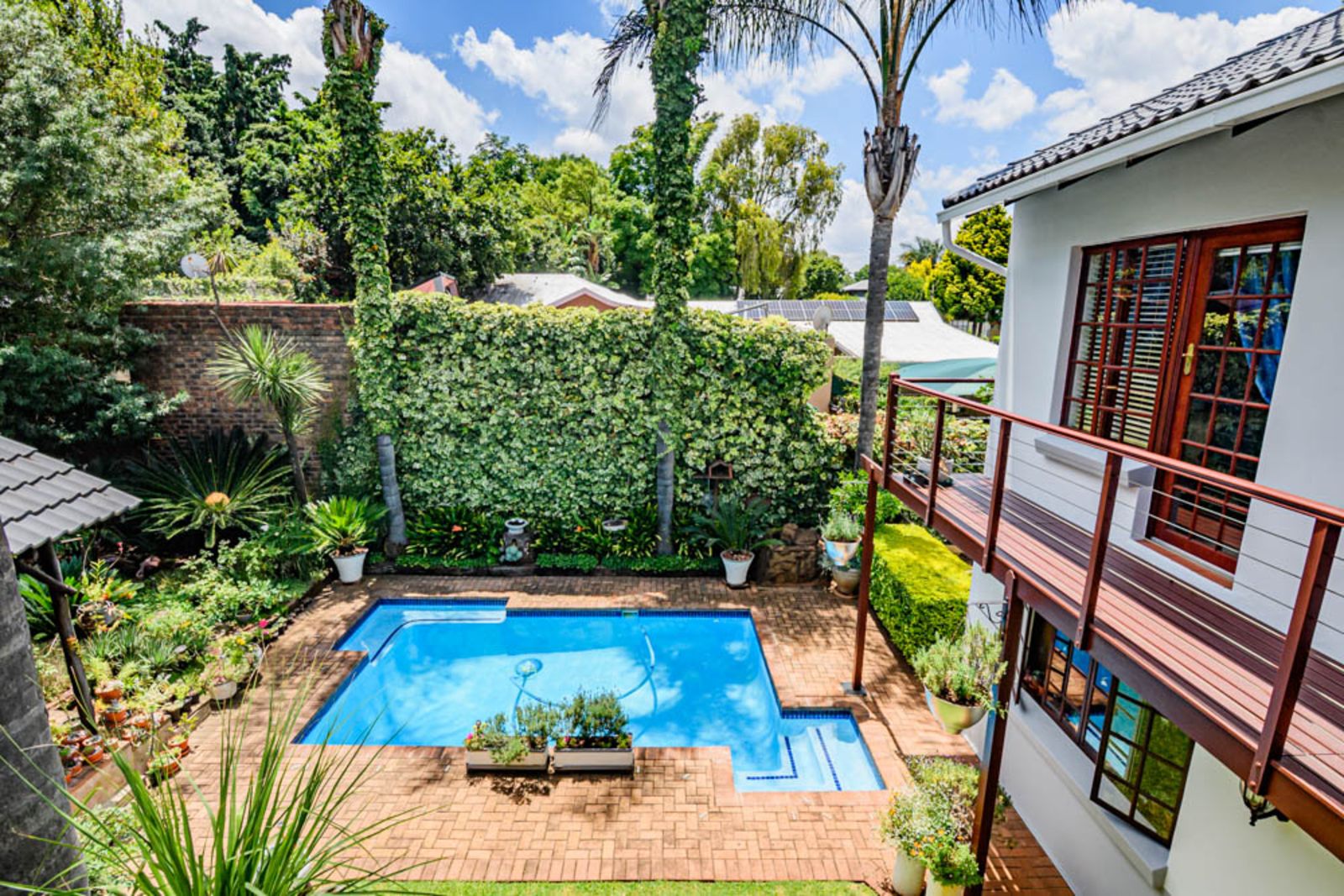 All the bedrooms walk out on a small balcony overlooking the private garden and swimming pool area. All the windows upstairs come with high-quality installed blinds – move-in ready!