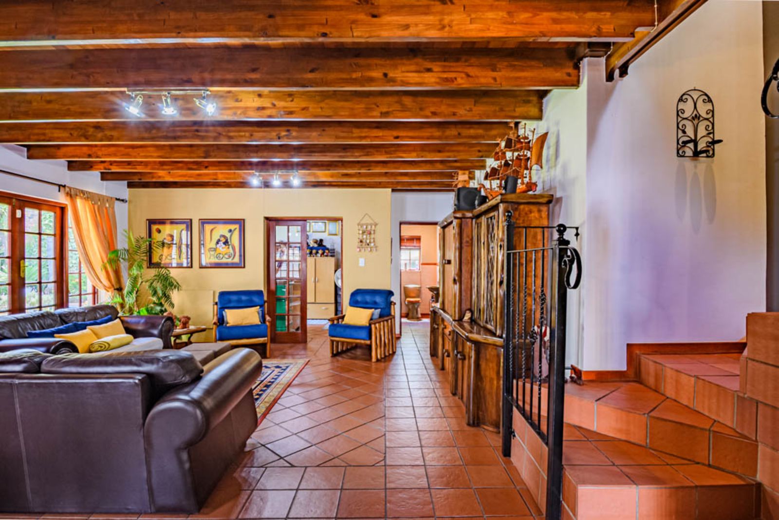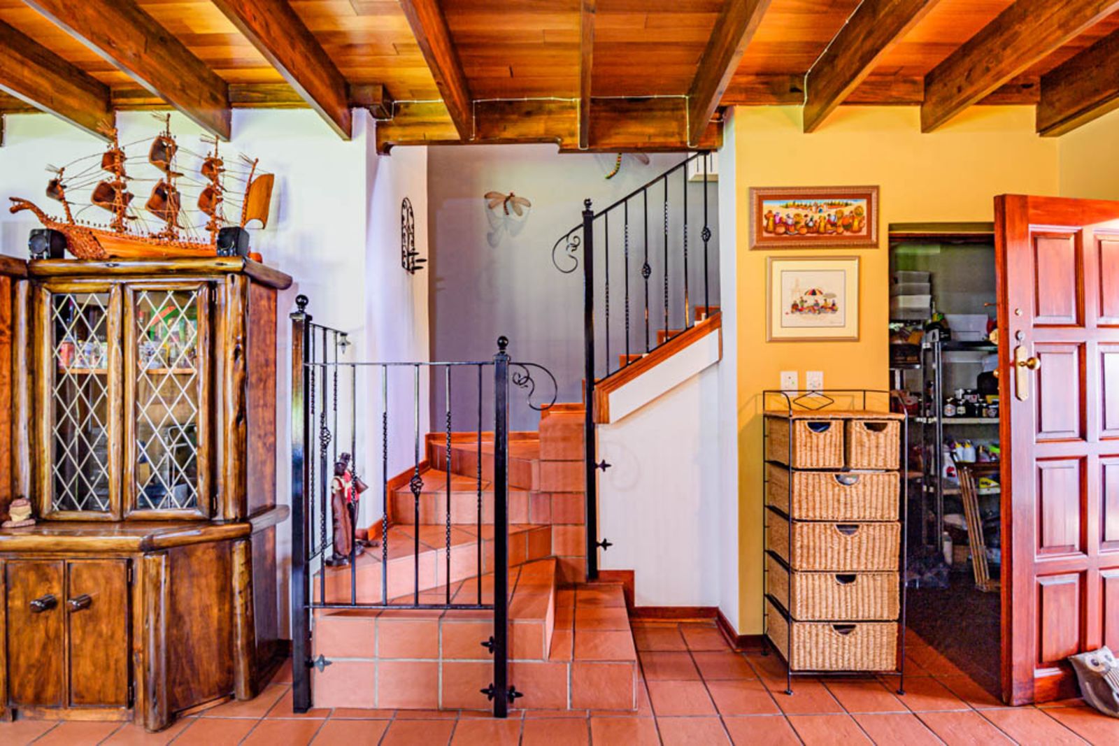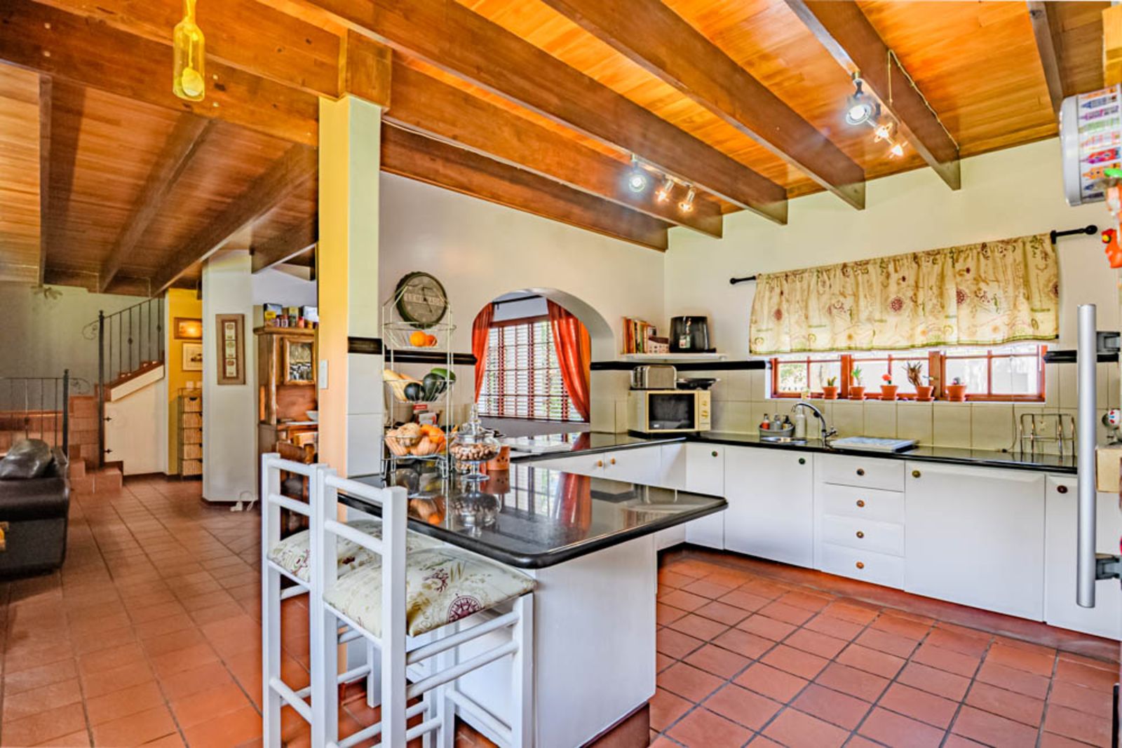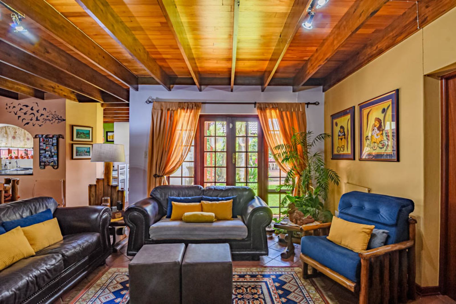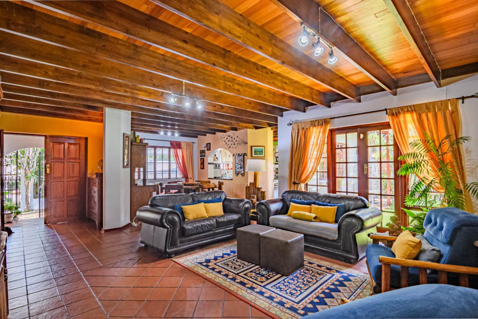 Charming architectural details including wooden ceilings and warm finishes throughout.