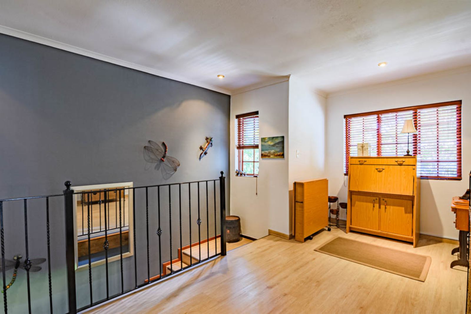 The second storey enjoys an intimate pajama lounge and 3 bedrooms with 2 bathrooms, one of which is en-suite, all with vinyl flooring and built-in cupboards.