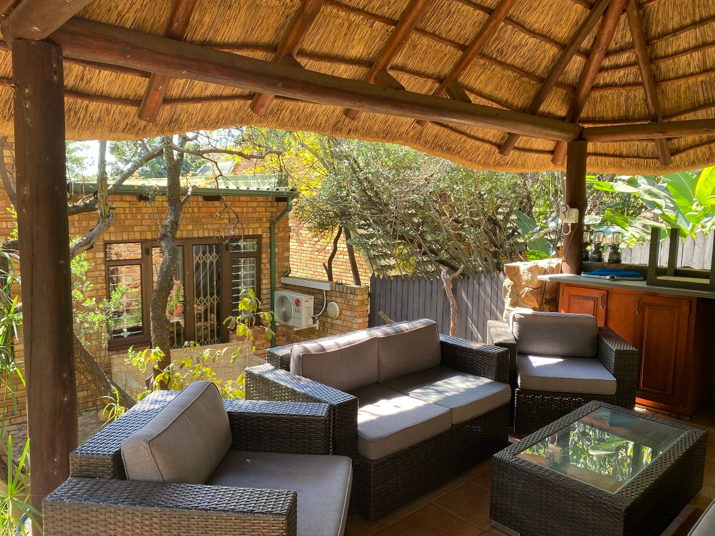 The unit is next to a mountain, offering your own piece of forest or bush veld, depending on the season. It has 2 self sustaining fish ponds, adding atmosphere to the outside towards the private lapa. There is a 1000 liter water tank included. The unit has a garage for 2 vehicles.