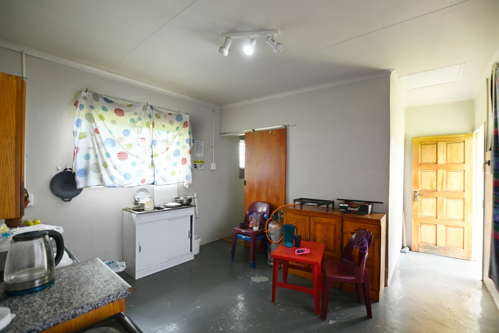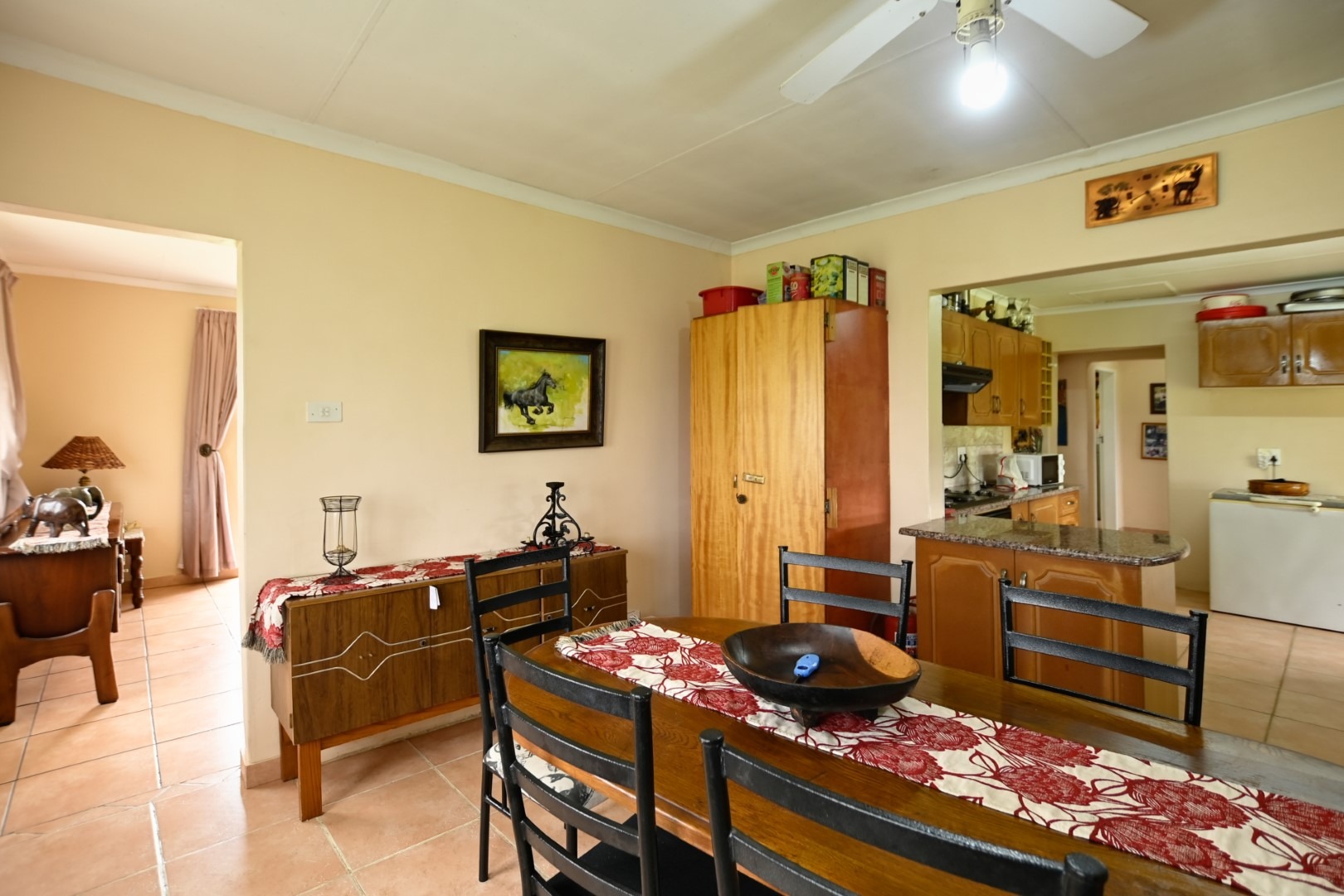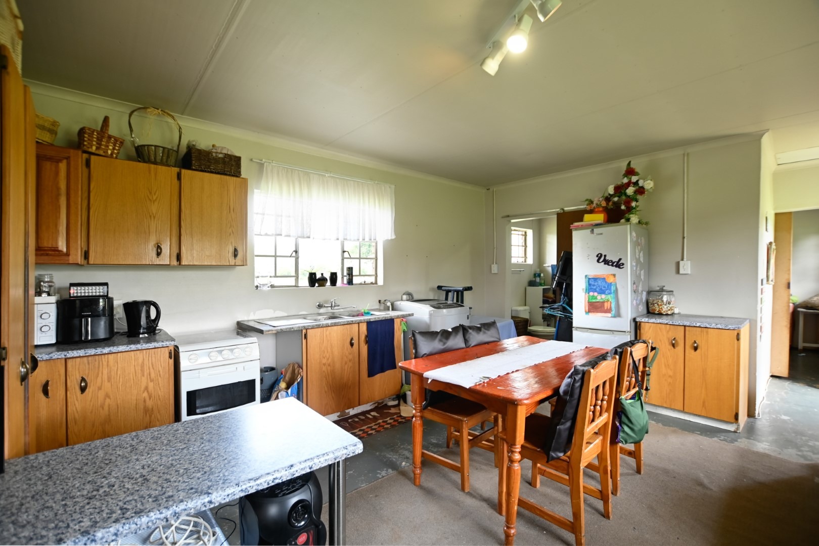 The property is electrically fenced with a Zinc reservoir, with a natural ground dam, pressure pumps for outside flats and the main house, small sheep and cattle kraal and storage facilities.