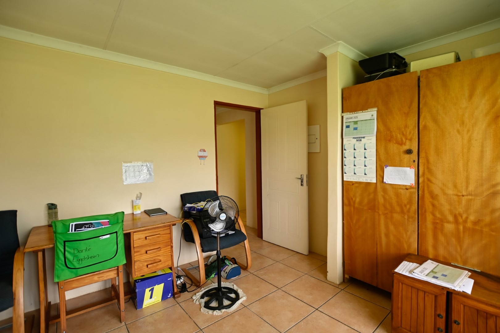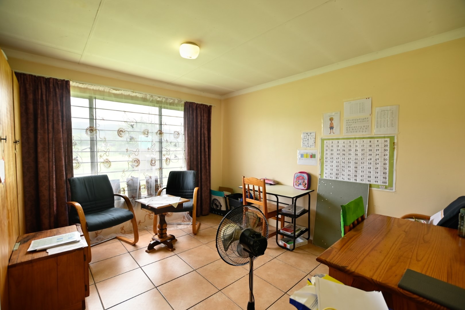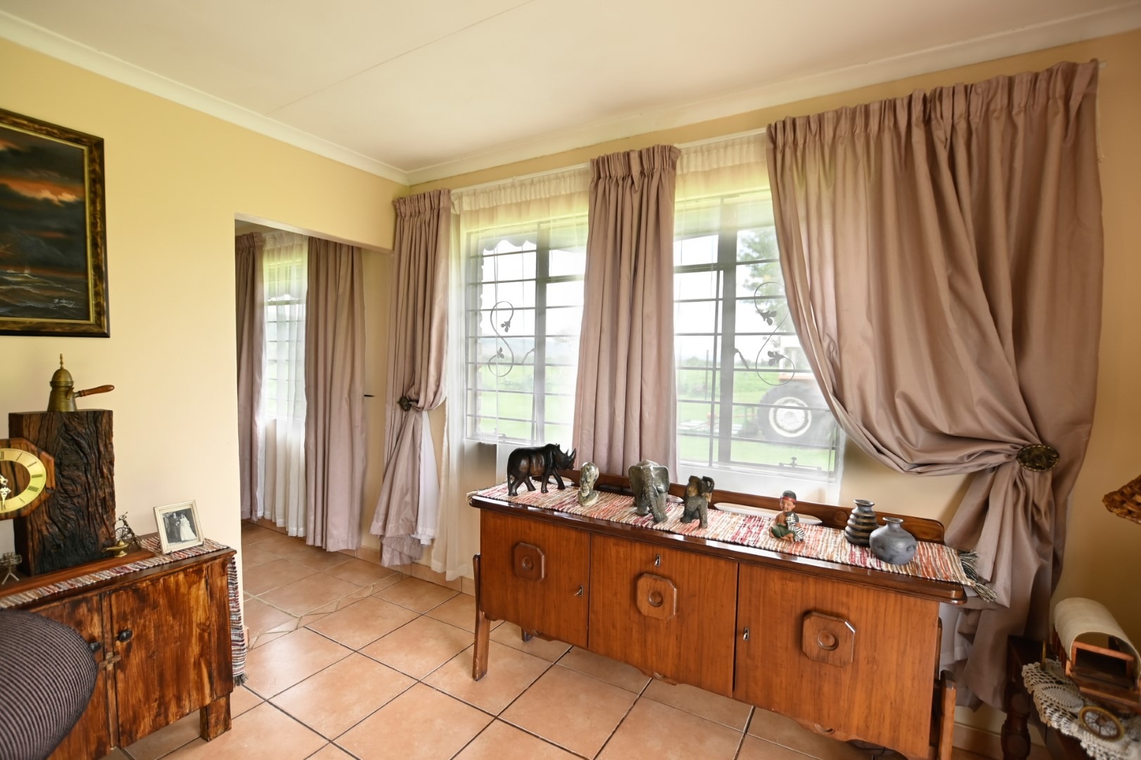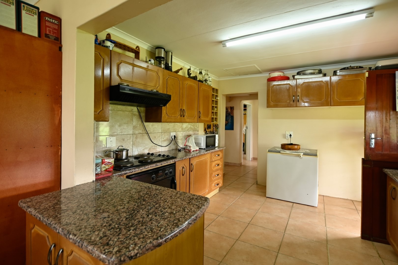 The property is electrically fenced with a Zinc reservoir, with a natural ground dam, pressure pumps for outside flats and the main house, small sheep and cattle kraal and storage facilities.