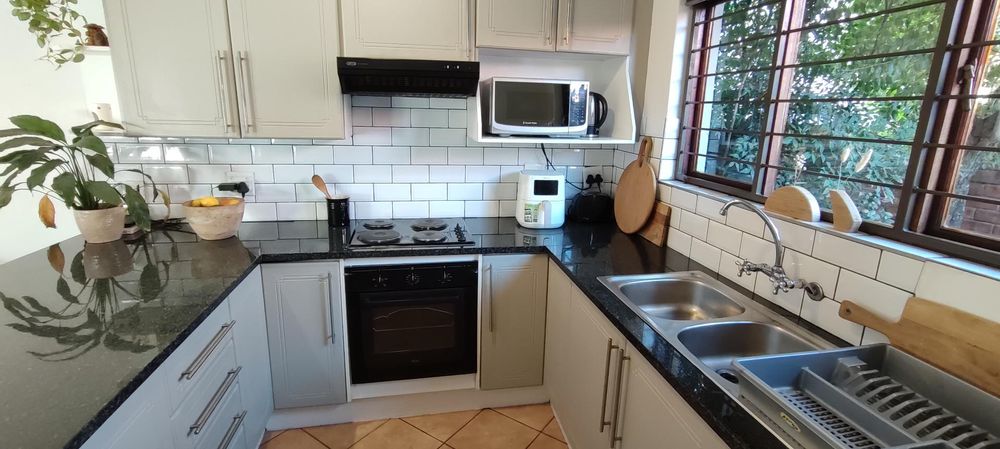The kitchen is modern with plenty of cupboard space, granite tops and breakfast nook.