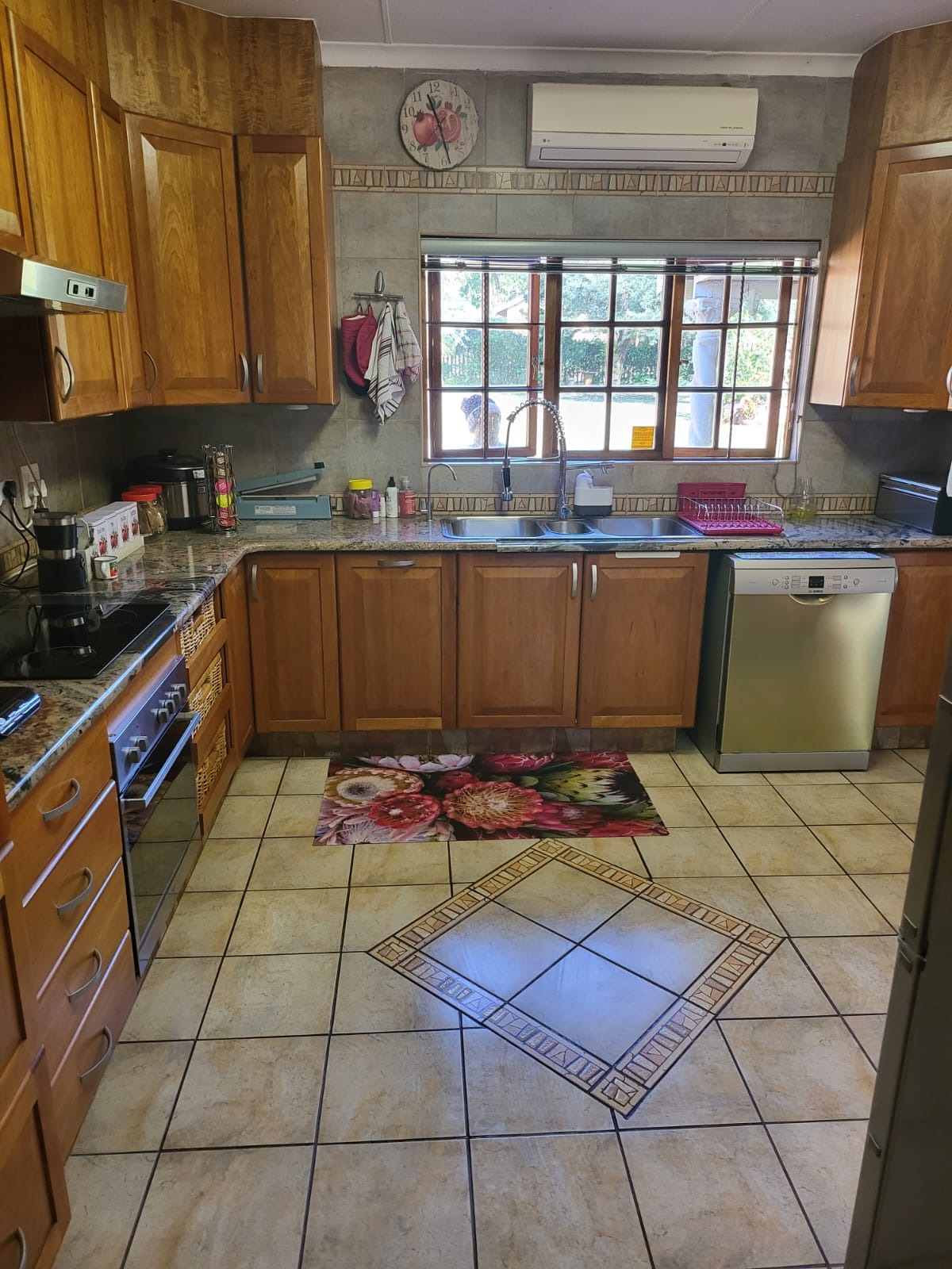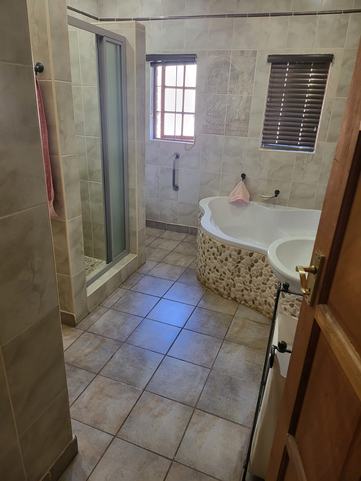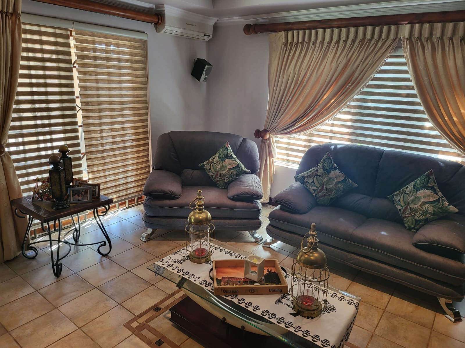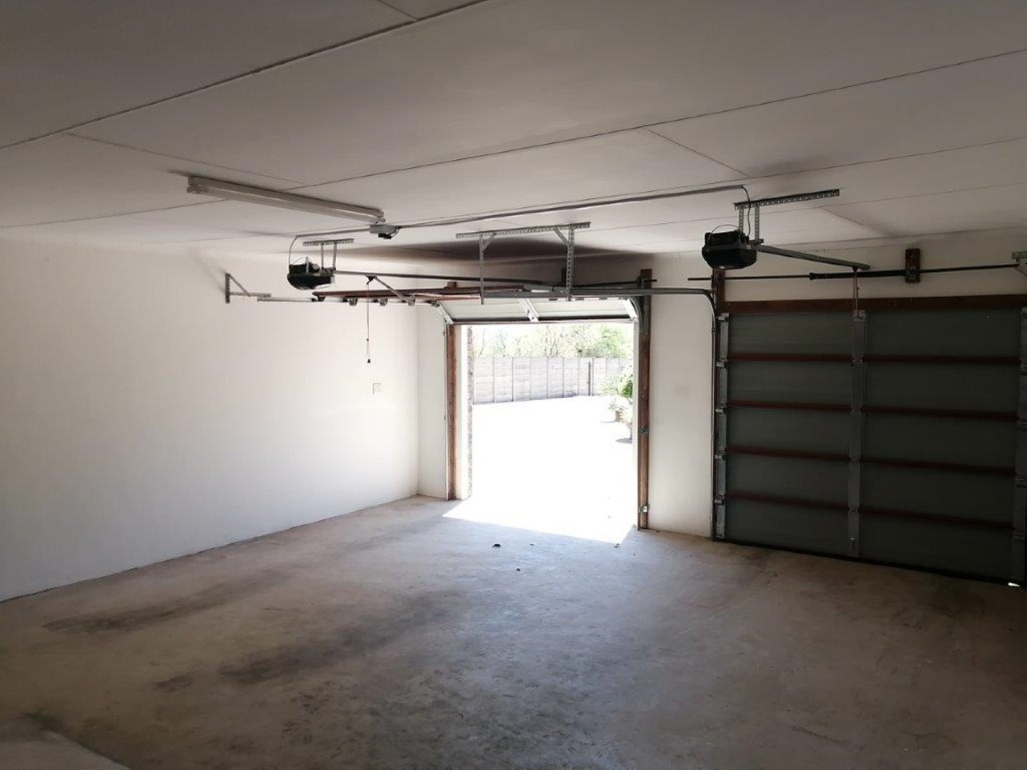 Modern house with 2 spacious bedrooms(lots of build-in cupboards), 2 x full bathrooms(one en-suite), baby room, outside office with aircon and build-in cupboards, lounge and open plan kitchen/dining room. 5 x Garages with access to the main house. Pre-paid electricity. Separate laundry room.