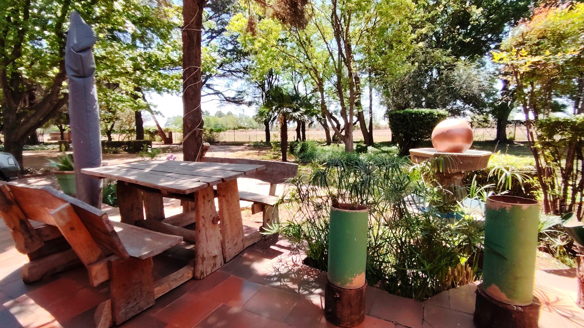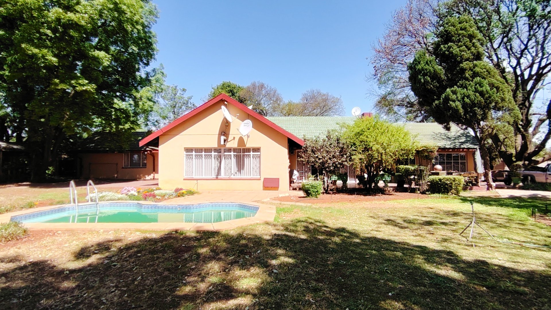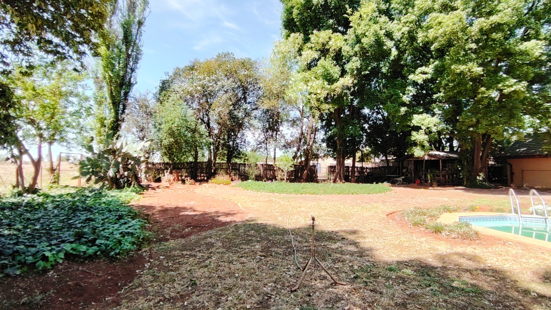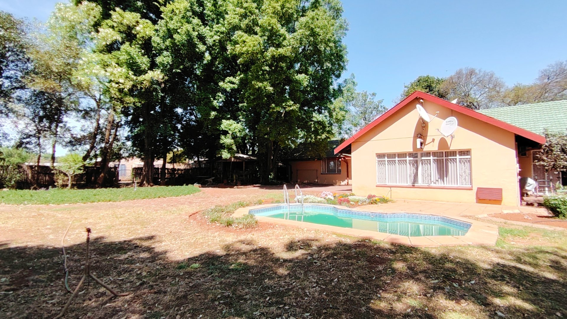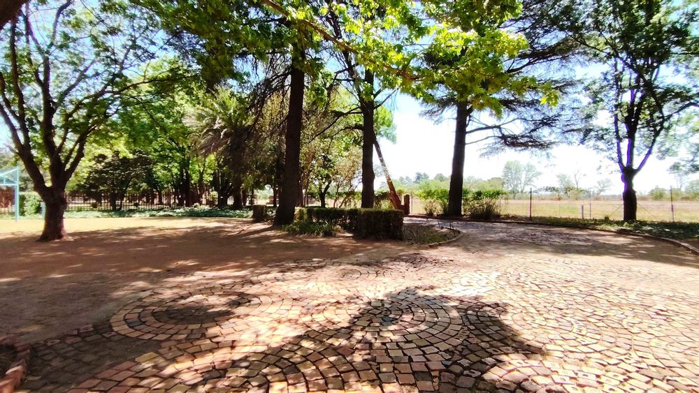 Outside, three covered carports offer secure parking, while spacious storerooms provide practical storage for equipment or tools. The property is further enhanced by a strong borehole, ensuring a reliable water supply for both household use and potential agricultural activities.