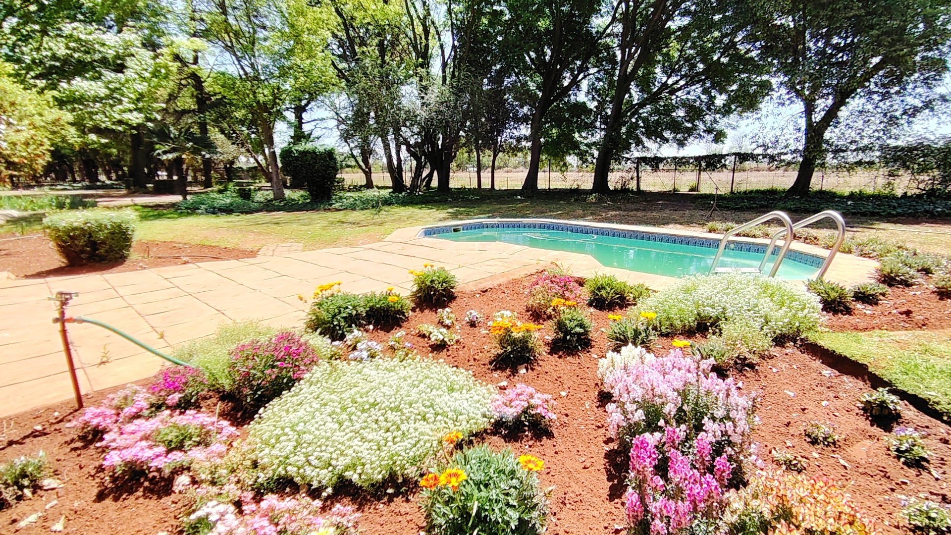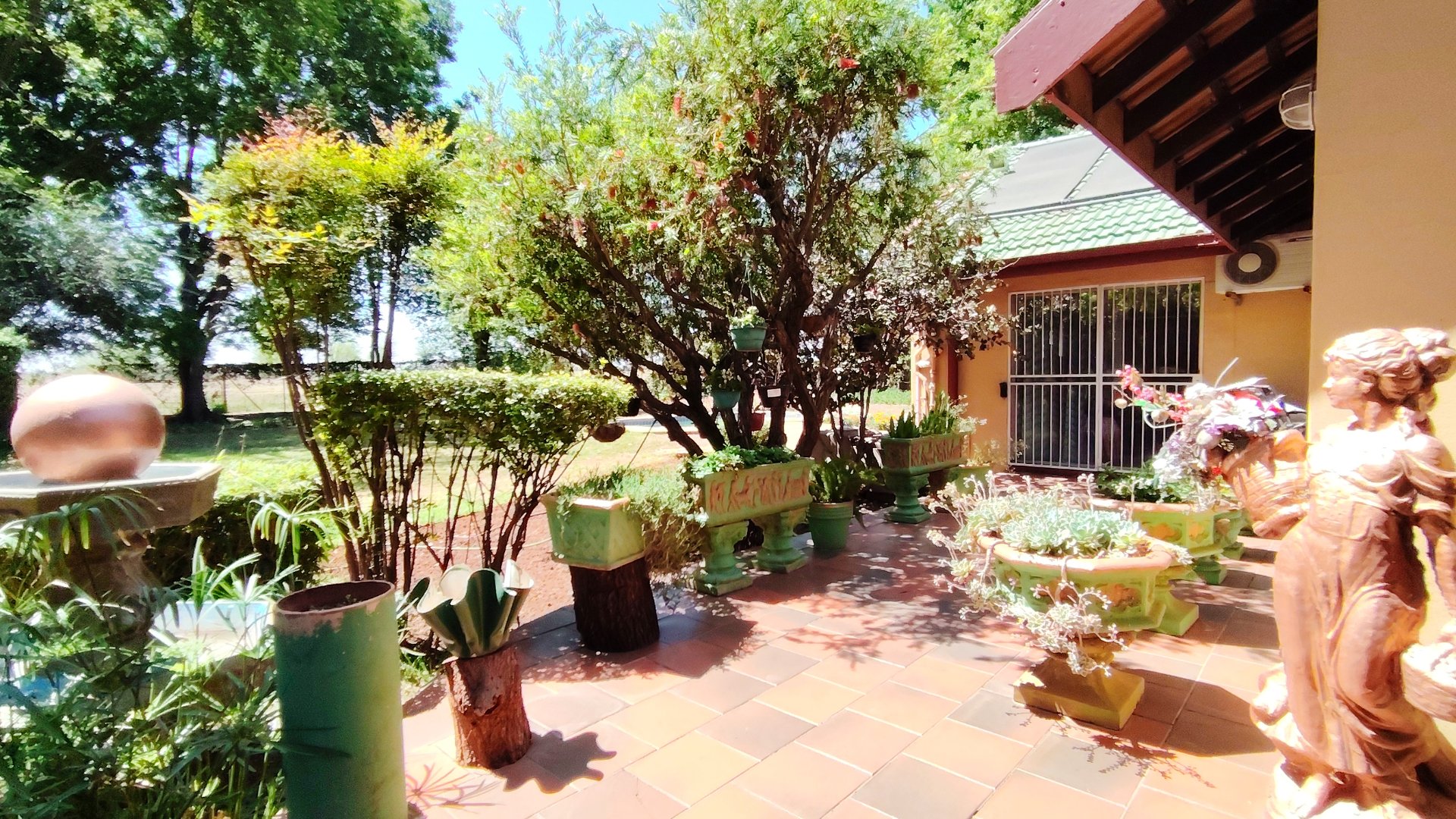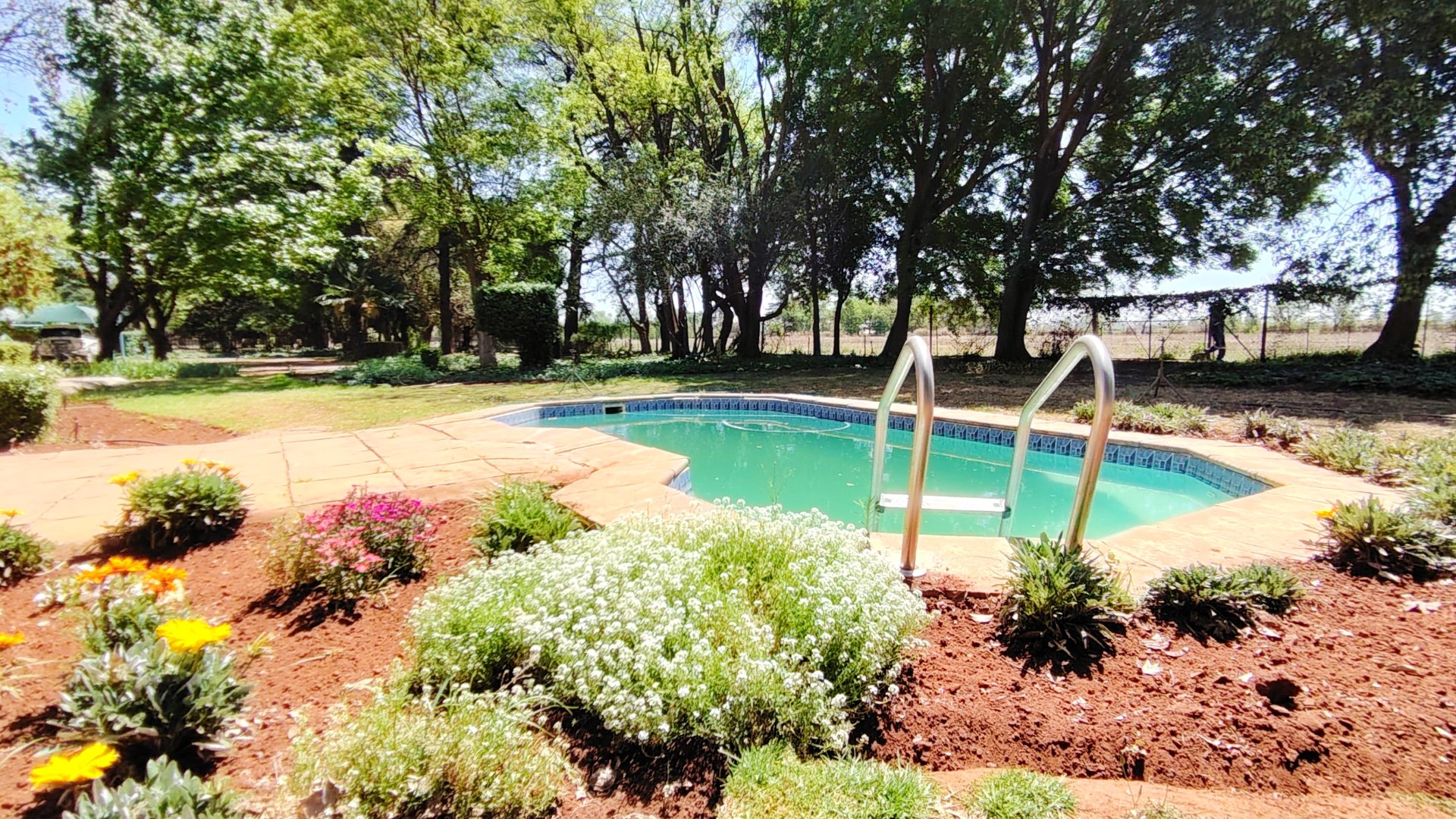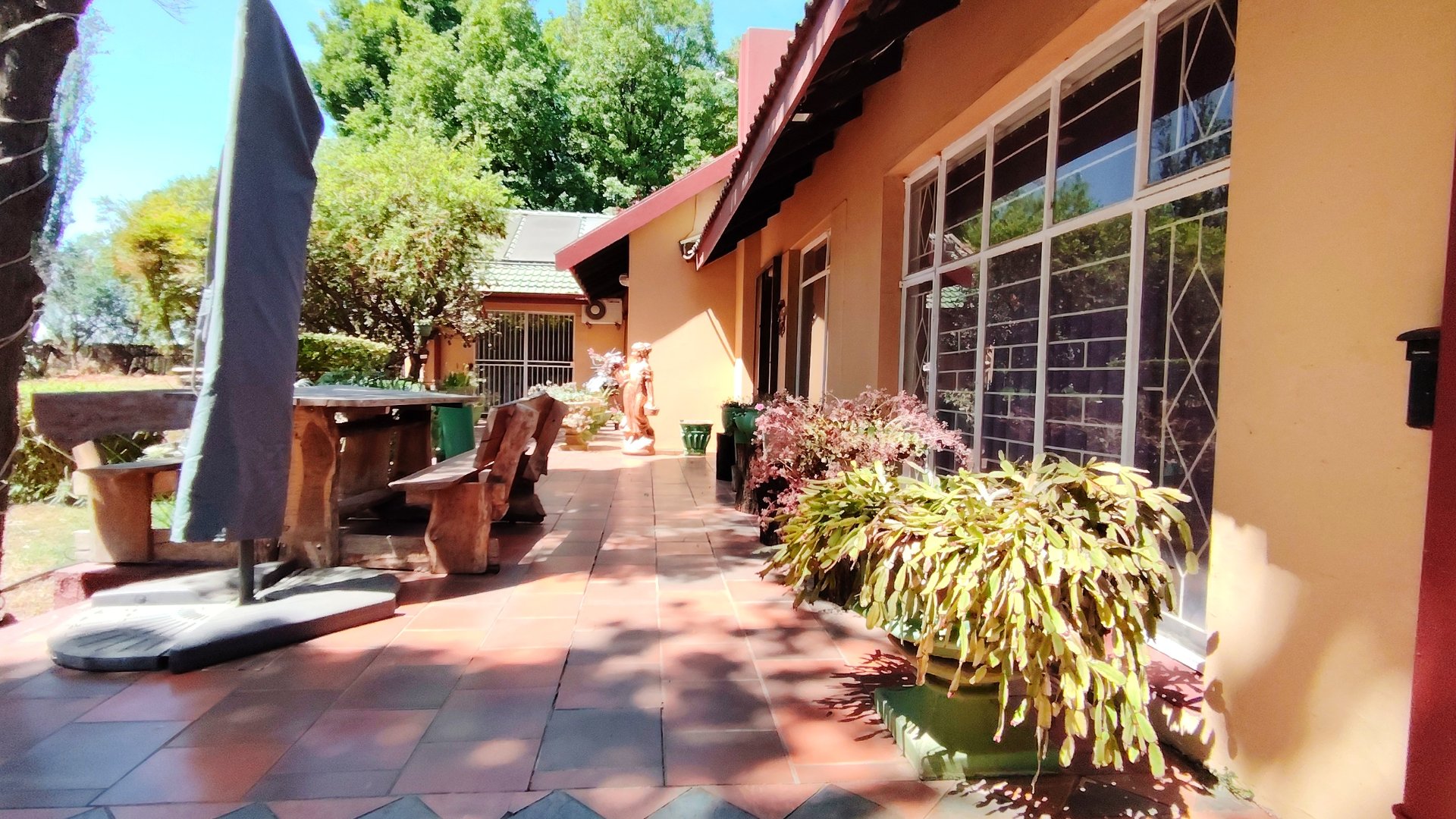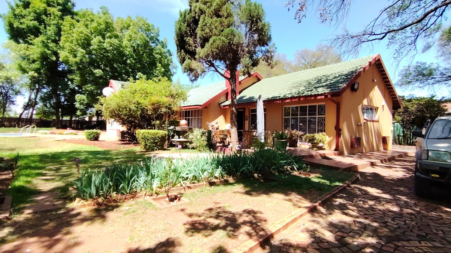 Outside, three covered carports offer secure parking, while spacious storerooms provide practical storage for equipment or tools. The property is further enhanced by a strong borehole, ensuring a reliable water supply for both household use and potential agricultural activities.