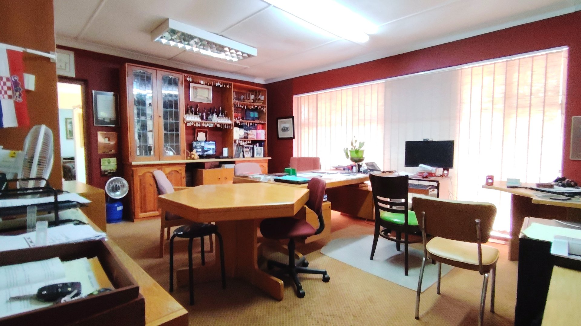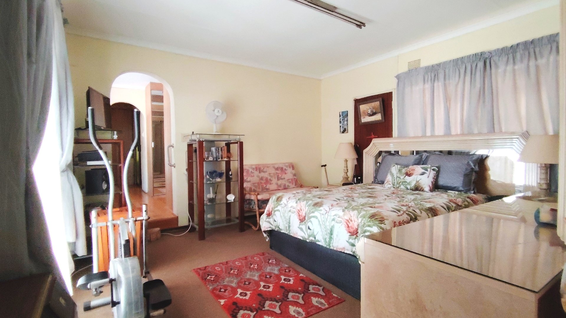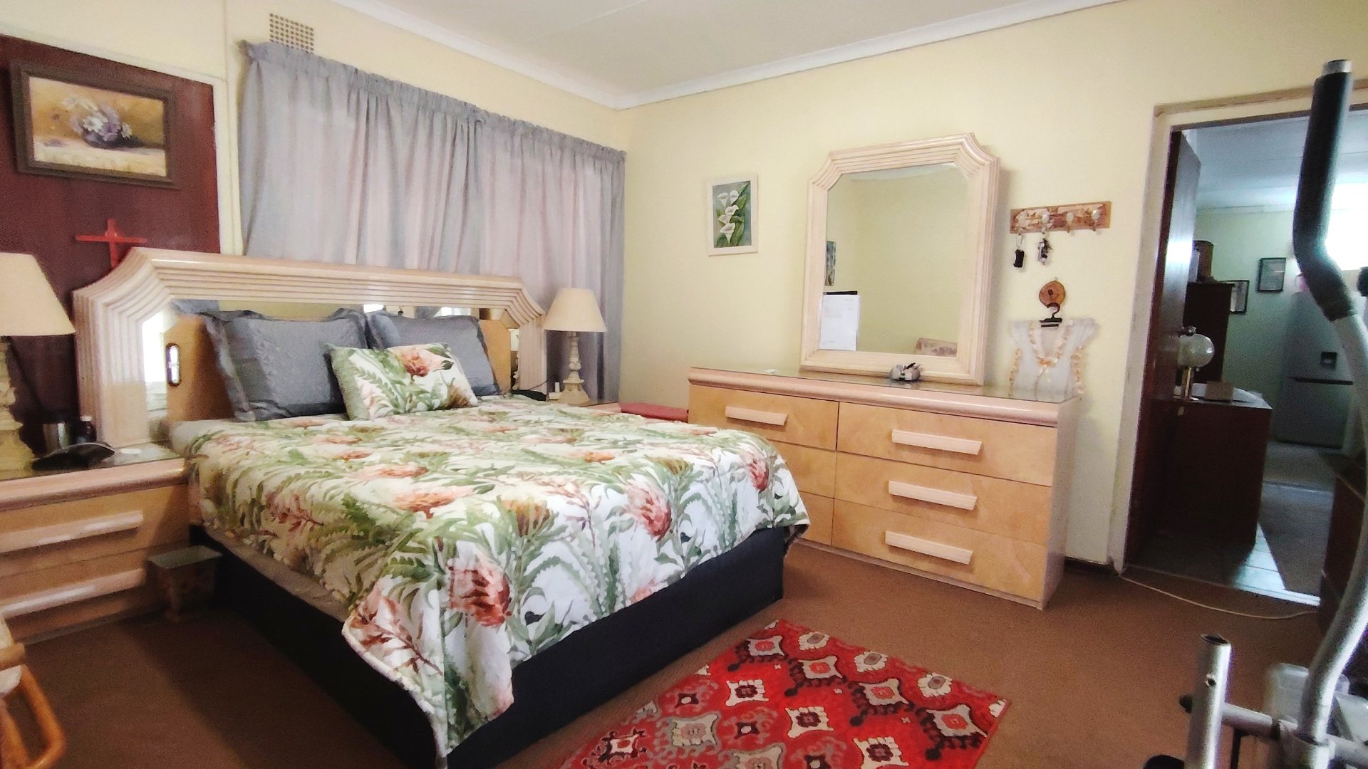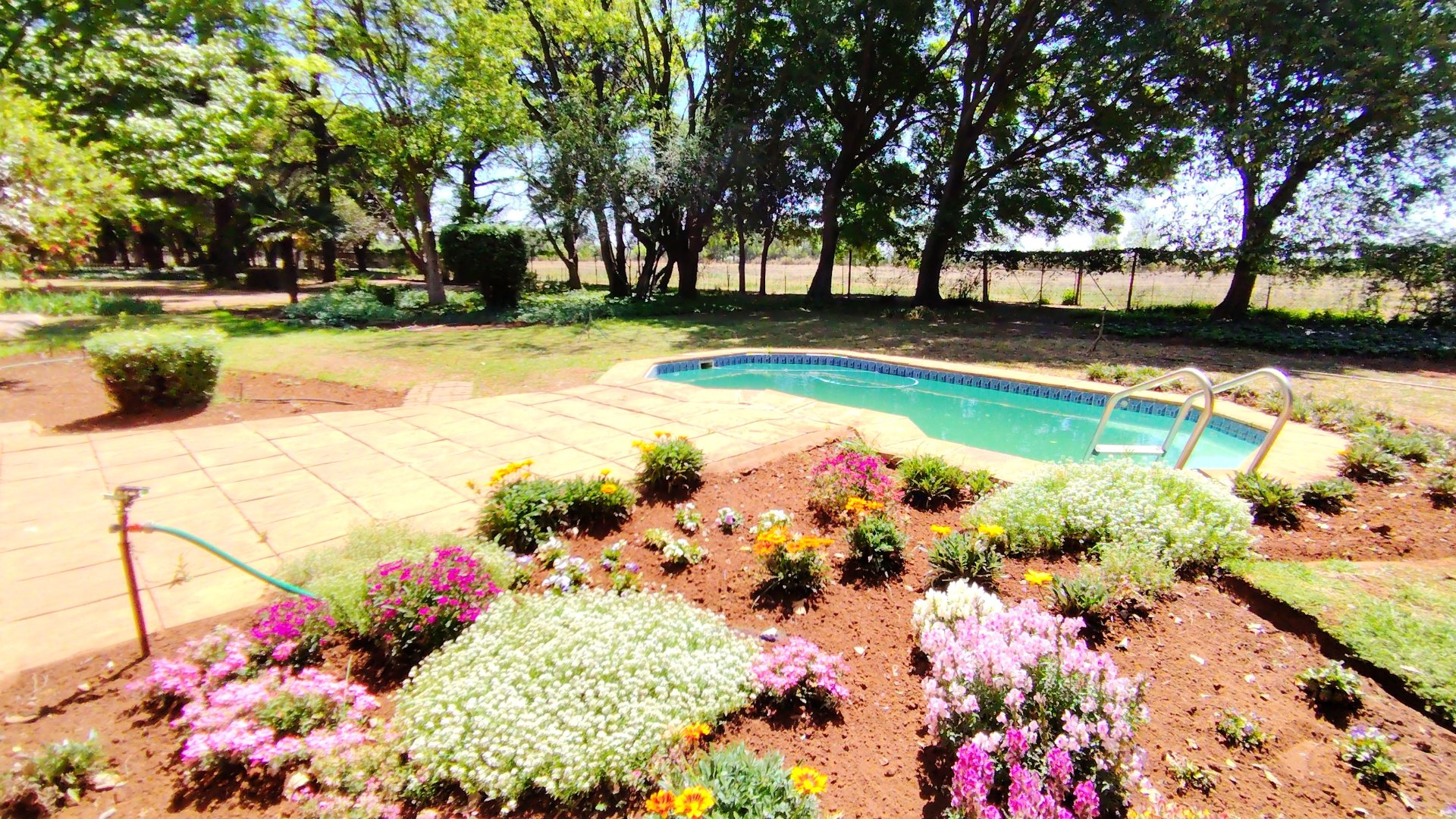 Outside, three covered carports offer secure parking, while spacious storerooms provide practical storage for equipment or tools. The property is further enhanced by a strong borehole, ensuring a reliable water supply for both household use and potential agricultural activities.