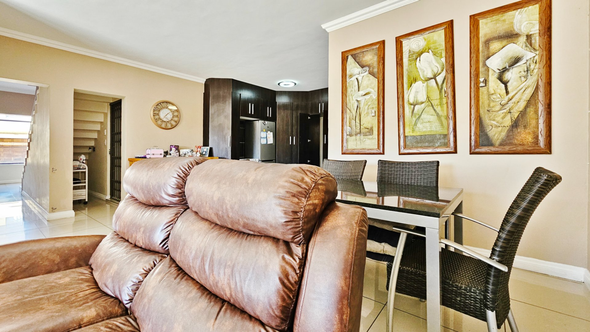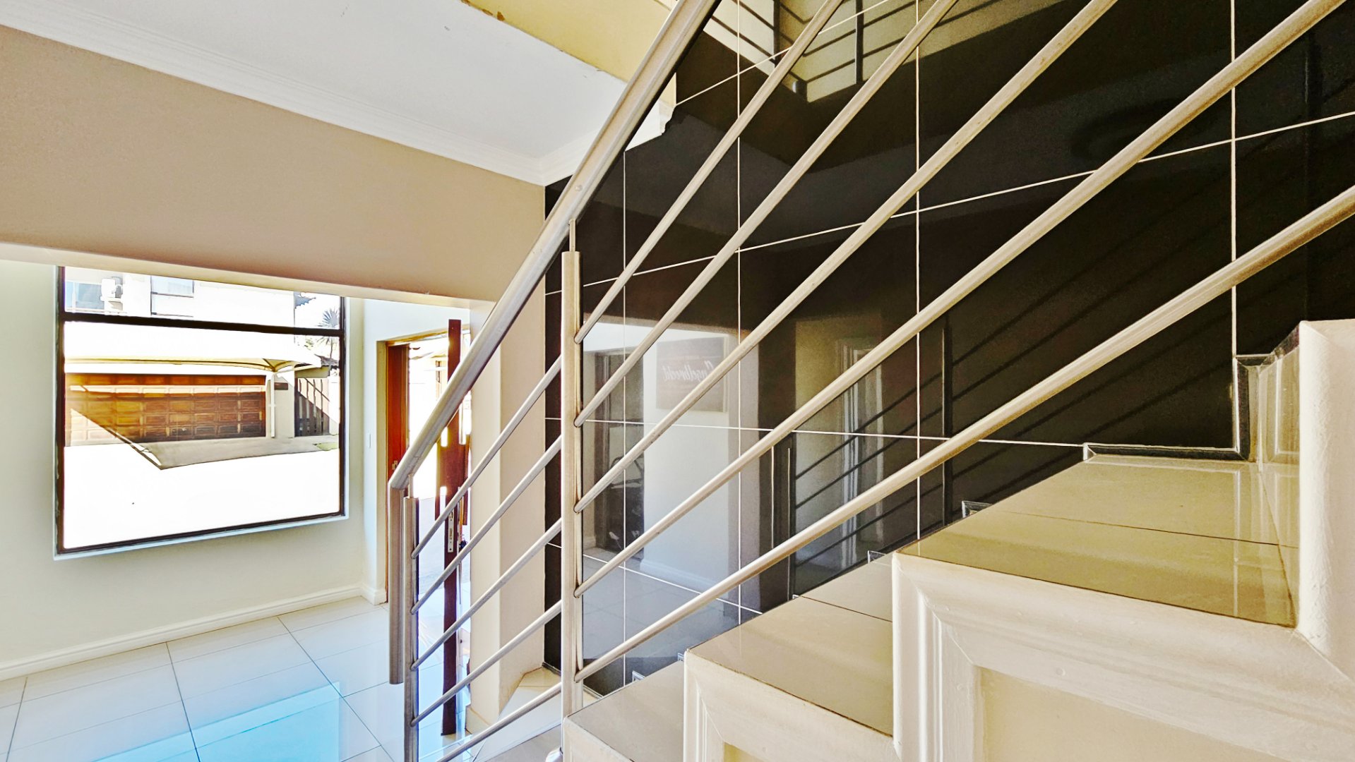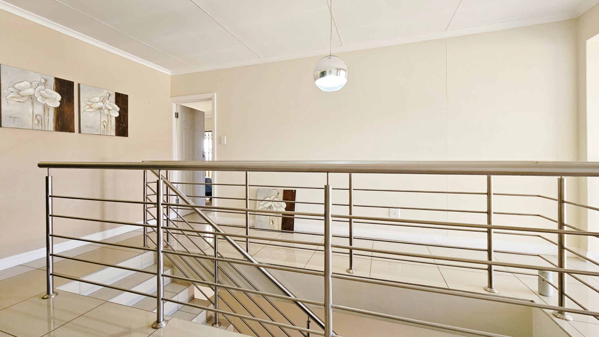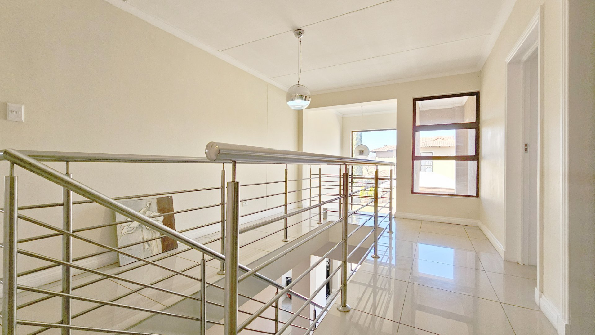 Upstairs comprises a study, three bedrooms and two luxurious bathrooms (master en-suite) with a balcony. The property oozes style and elegance with tasteful finishes all through the home.