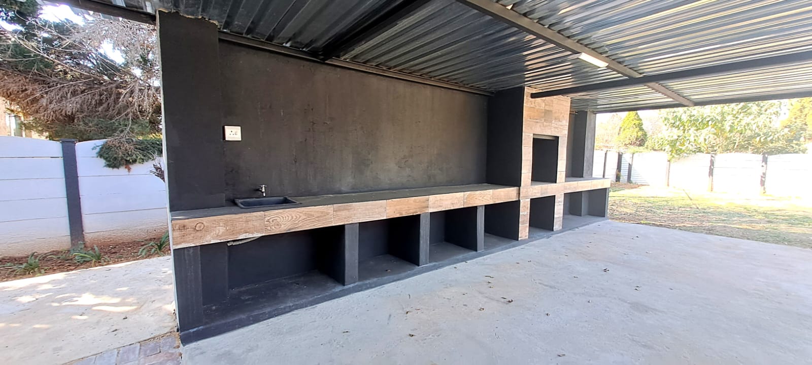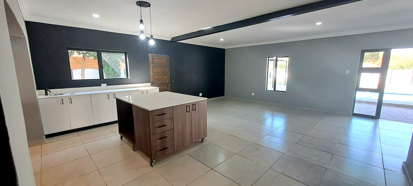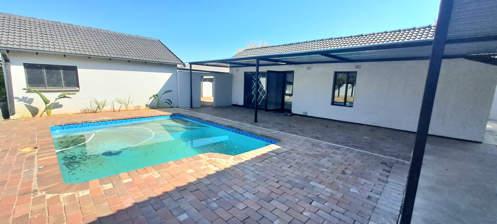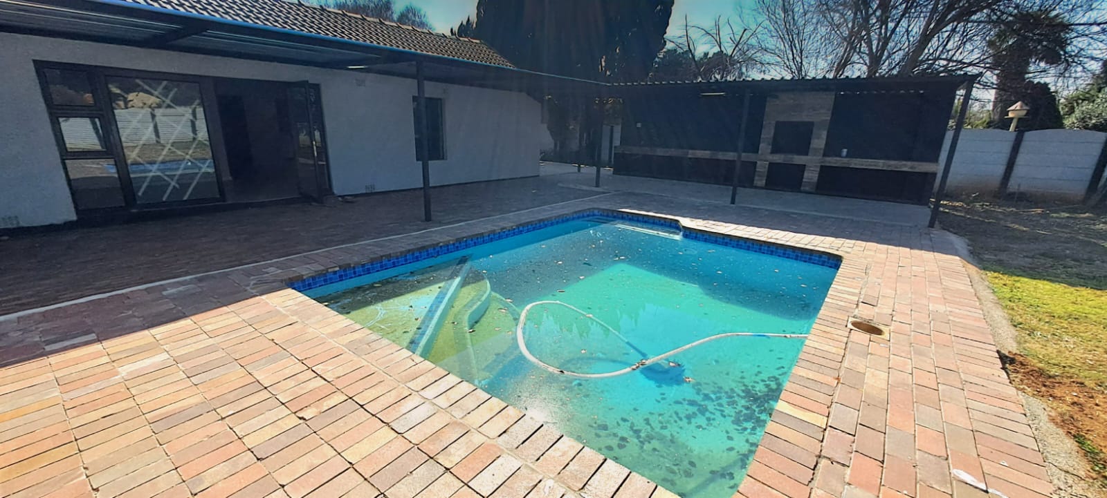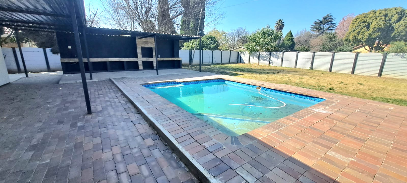 The heart of the home is a bright, open-concept living area that effortlessly connects the kitchen, dining, and lounge spaces. Expansive windows flood the home with natural light, creating a warm and inviting atmosphere throughout. Step outside, and you’ll find your own private entertainment paradise—complete with a generous patio area and a sparkling, newly renovated pool—ideal for weekend gatherings, summer lounging, or unforgettable family braais.