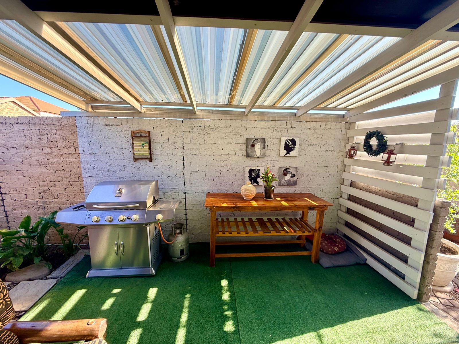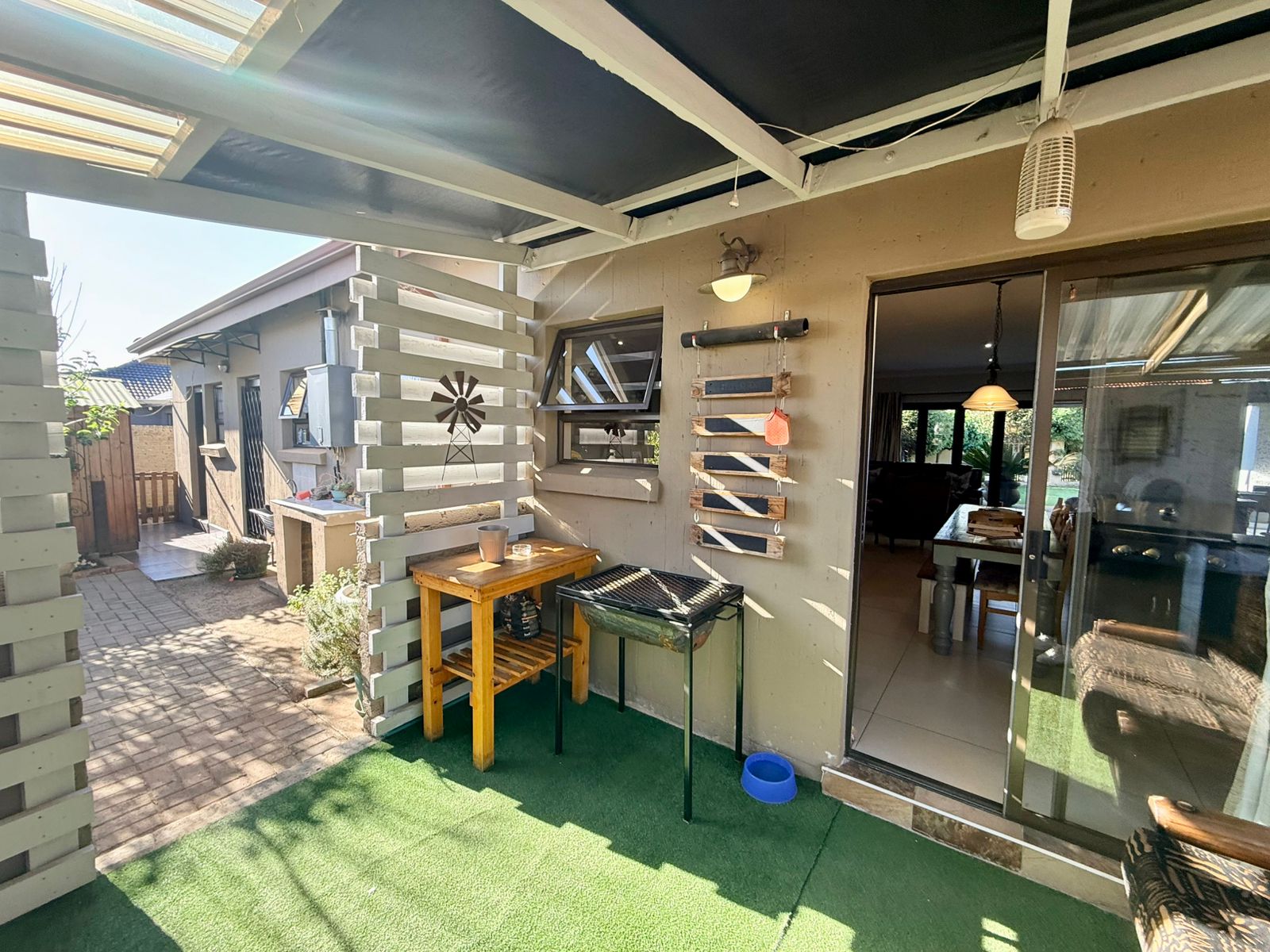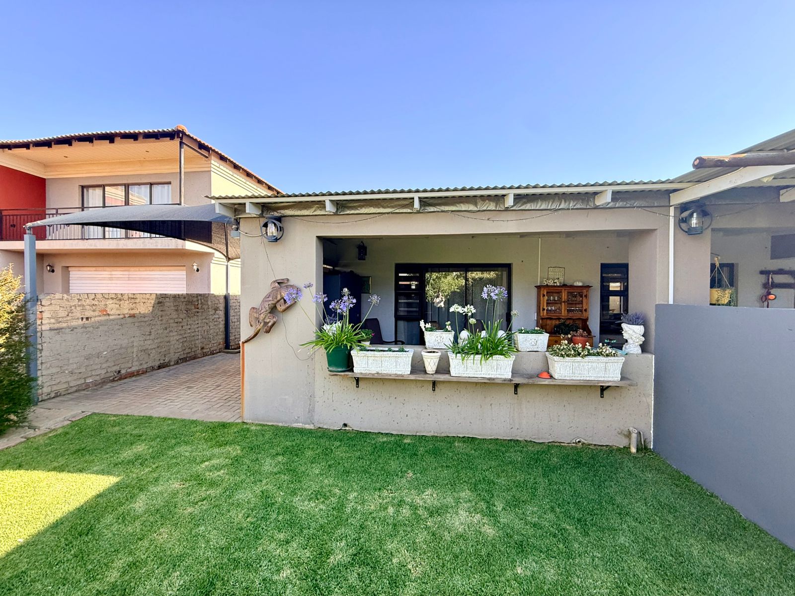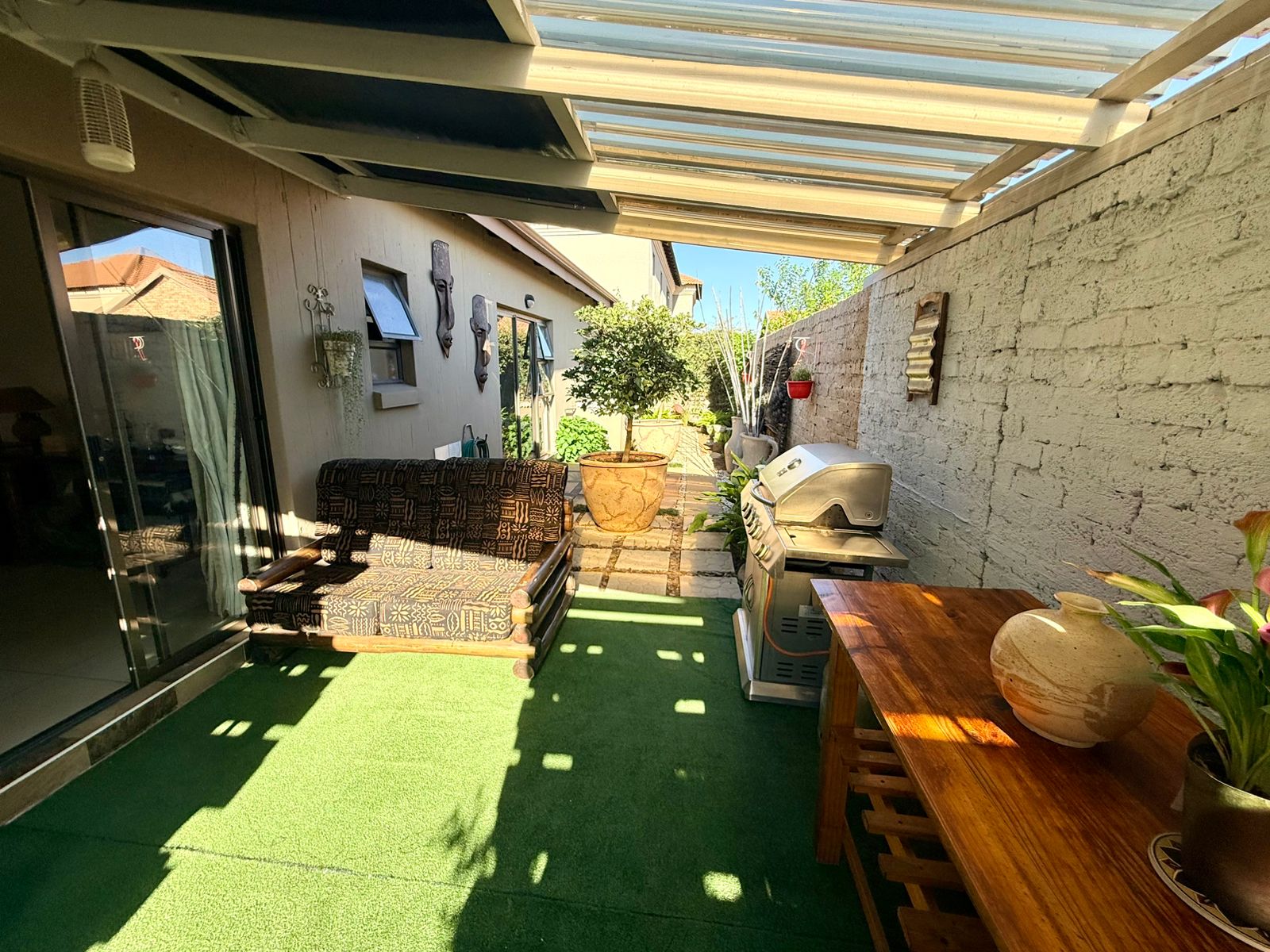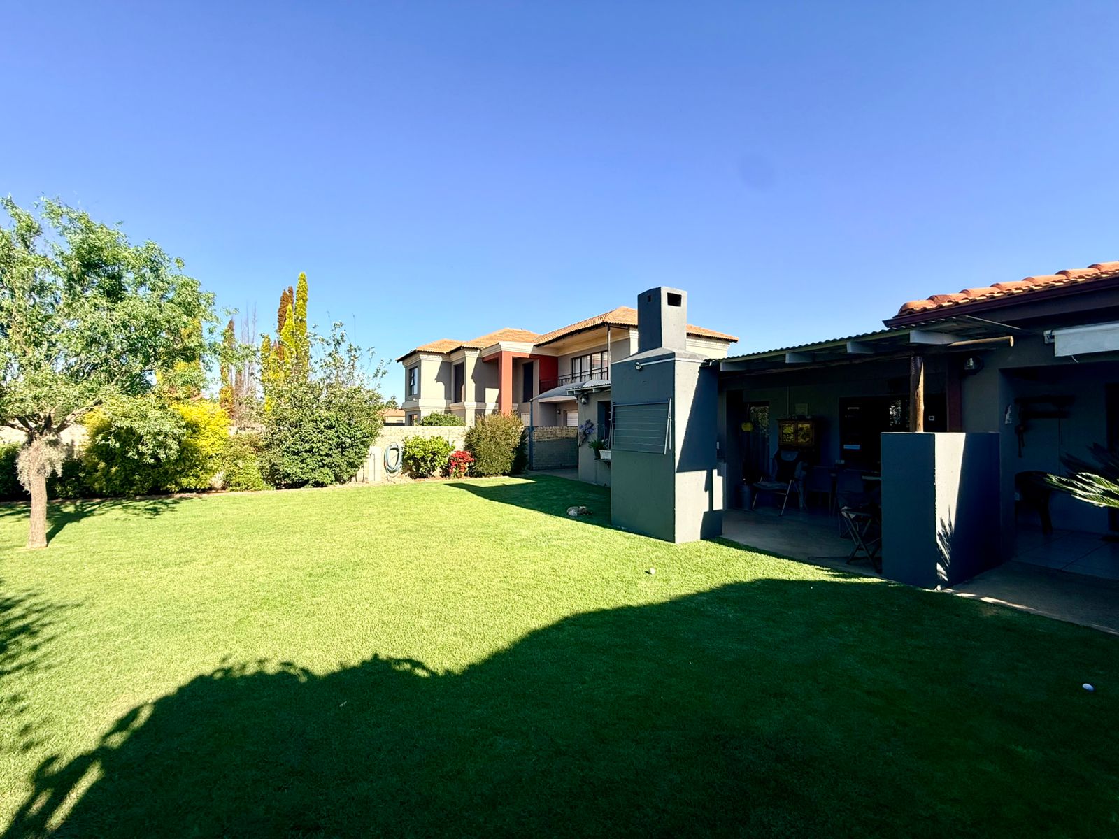 Entertainment lovers will appreciate two dedicated entertainment areas — one in front with a built-in braai, and another at the back that is covered for all-weather enjoyment.