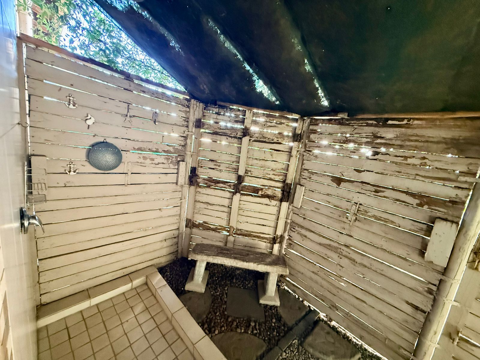 The main bedroom features an en-suite bathroom and opens up to a unique outdoor shower, creating a peaceful retreat.