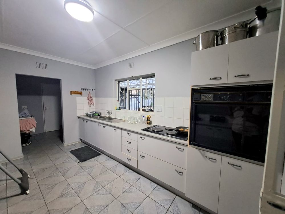 The modern kitchen includes an electric hob, eye-level oven, and separate laundry area for convenience.
