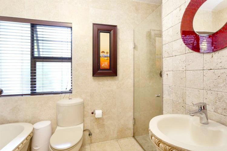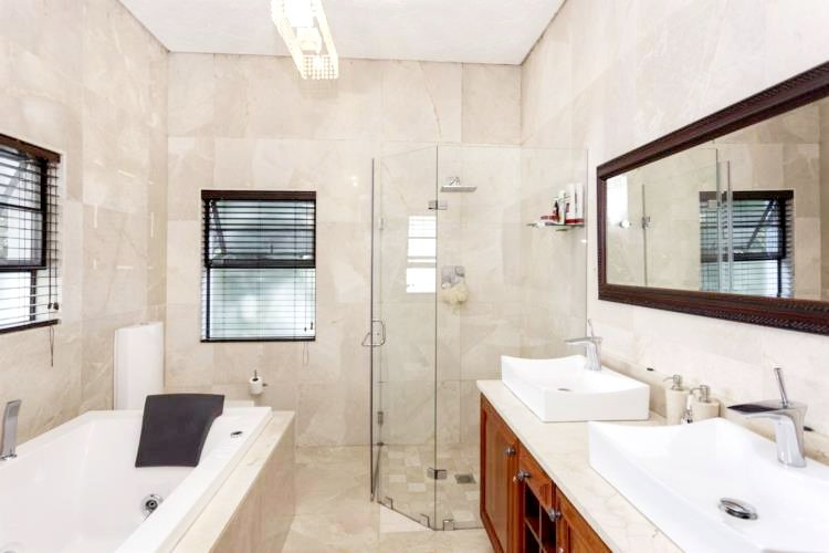 The master bedroom is fitted with a designer LG Picture Air cooling sytem, a walk in cupboard that is every woman's dream is met with the ample storage The Master bathroom boasts a treatment light spa bath, marble floors, shower and double sinks.