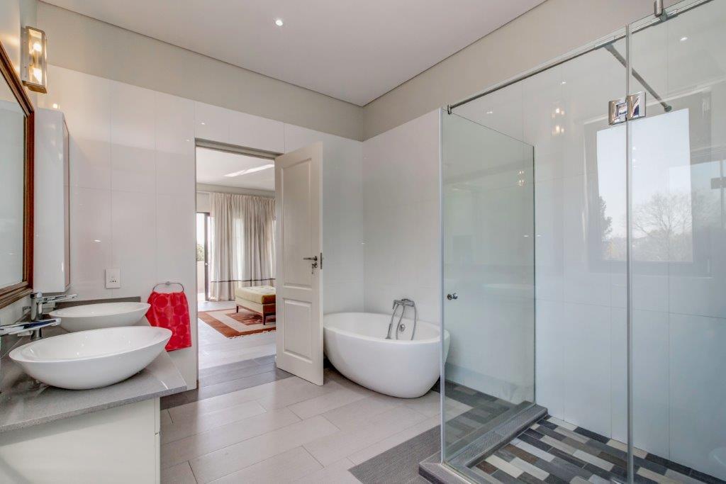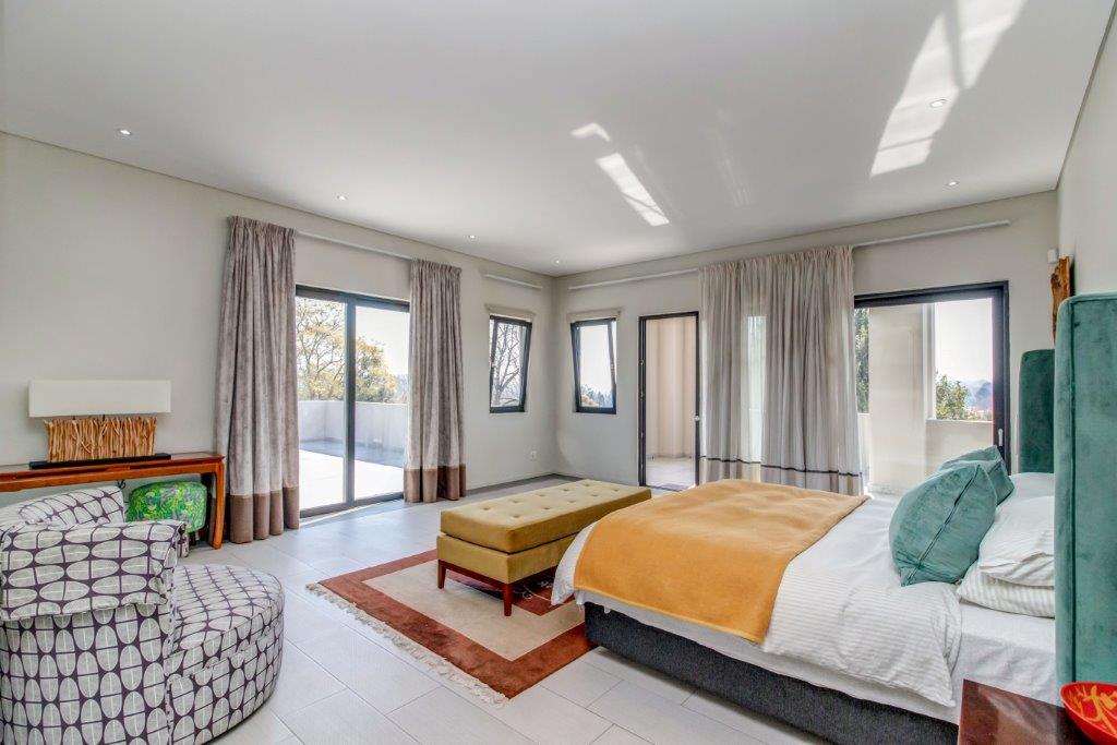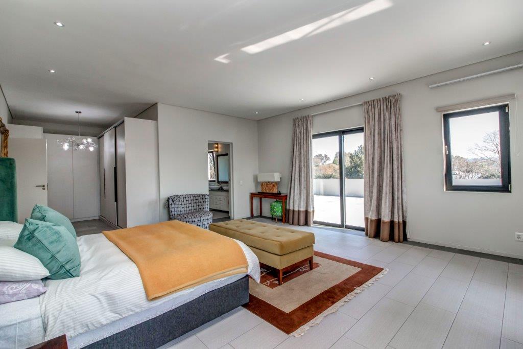 The architecturally designed home offers you 6 magnificent bedrooms each with a lounge area and a luxurious en-suite bathroom. Each bedroom is strategically positioned giving seclusion and privacy. Each has an abundance of top end built in cupboards in dressing area.