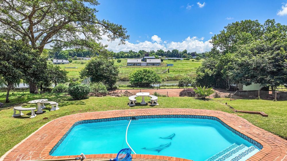 Situated in a peaceful area with scenic views over River Goose and the Umngeni River, this well-built home offers three bedrooms, three bathrooms, and generous living spaces. Nicely sized garden with a swimming pool.
