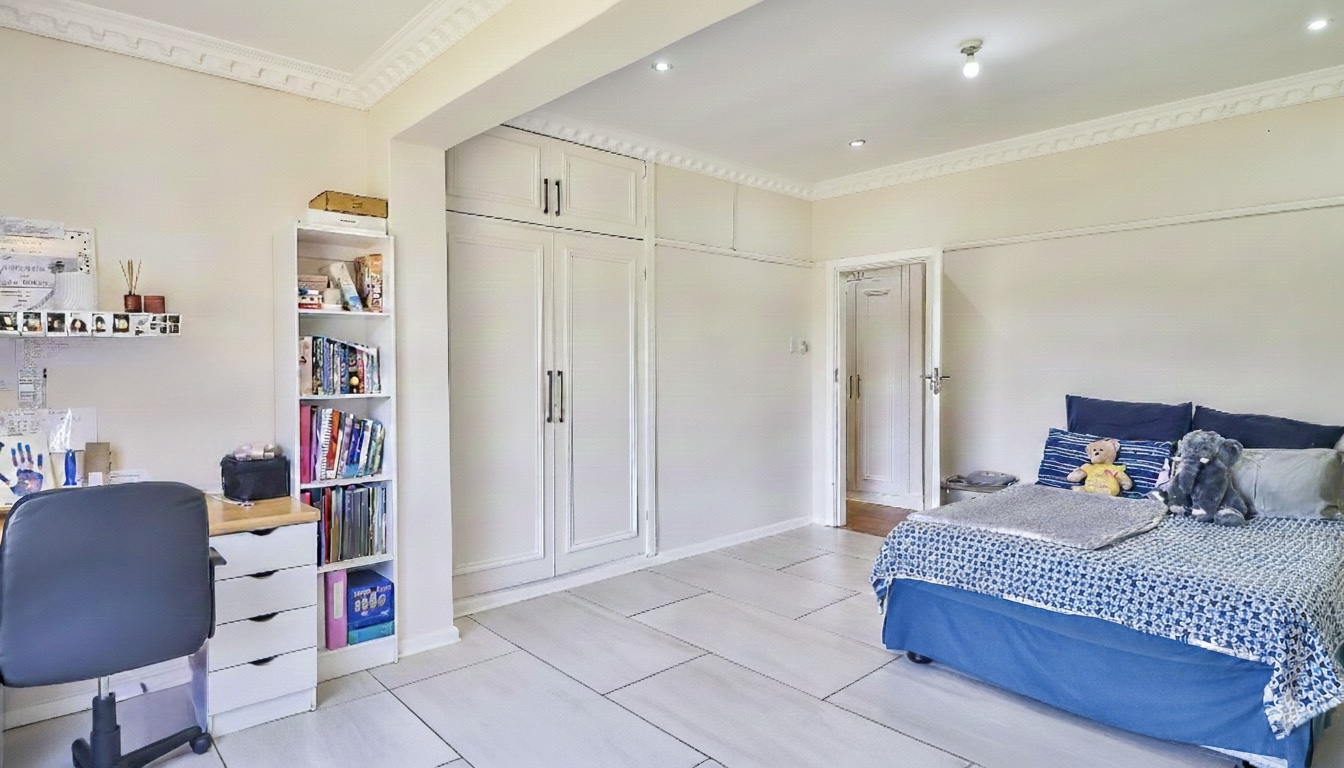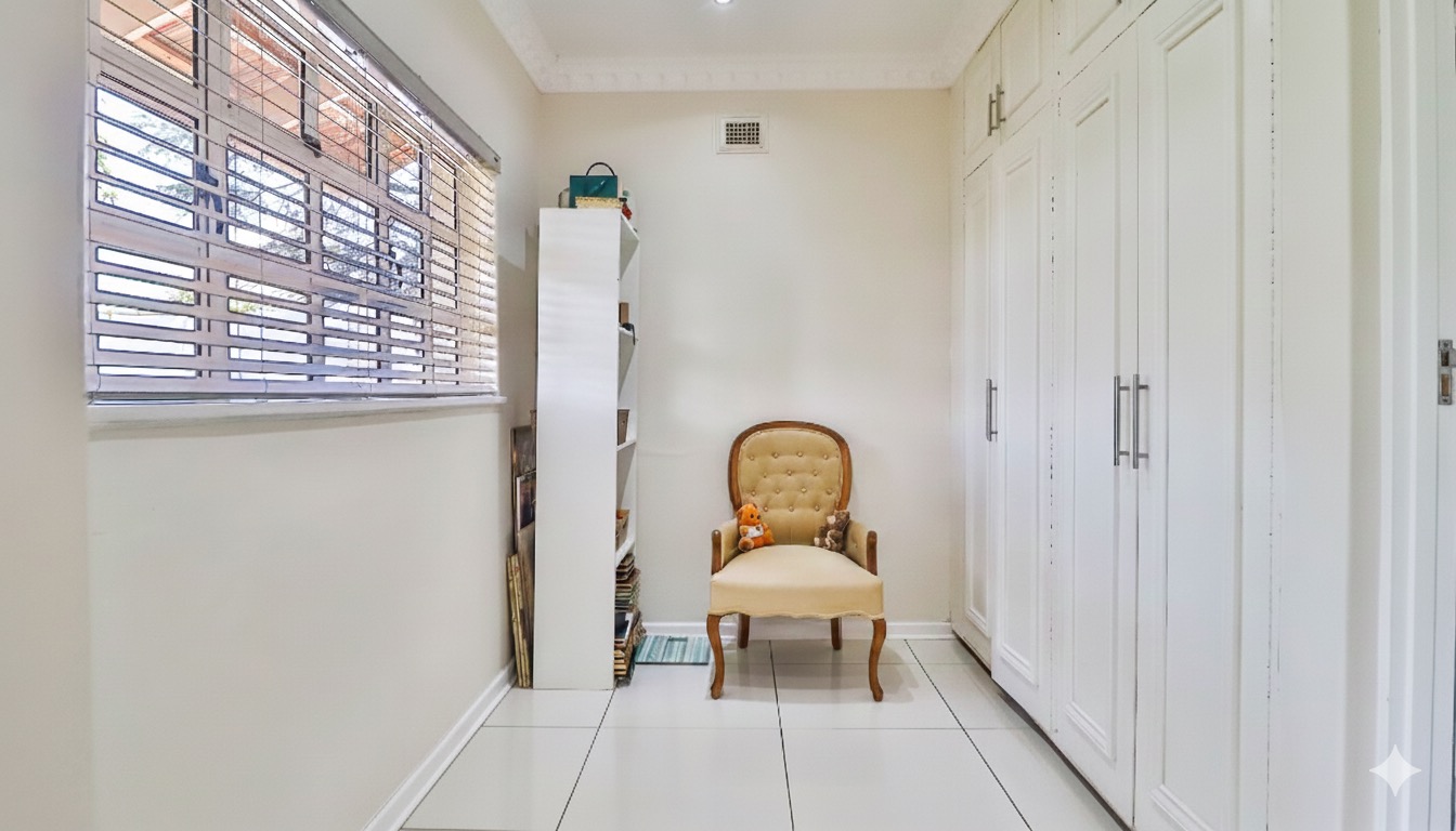 The home includes three bedrooms all featuring newly fitted aluminium windows, and garden views, with the main bedroom offering a large walk in closet, en-suite bathroom fitted with a shower, toilet, and basin. The family bathroom includes a wash hand basin and shower, with a separate toilet. A dedicated study or home office adds flexibility for work-from-home or administrative needs.