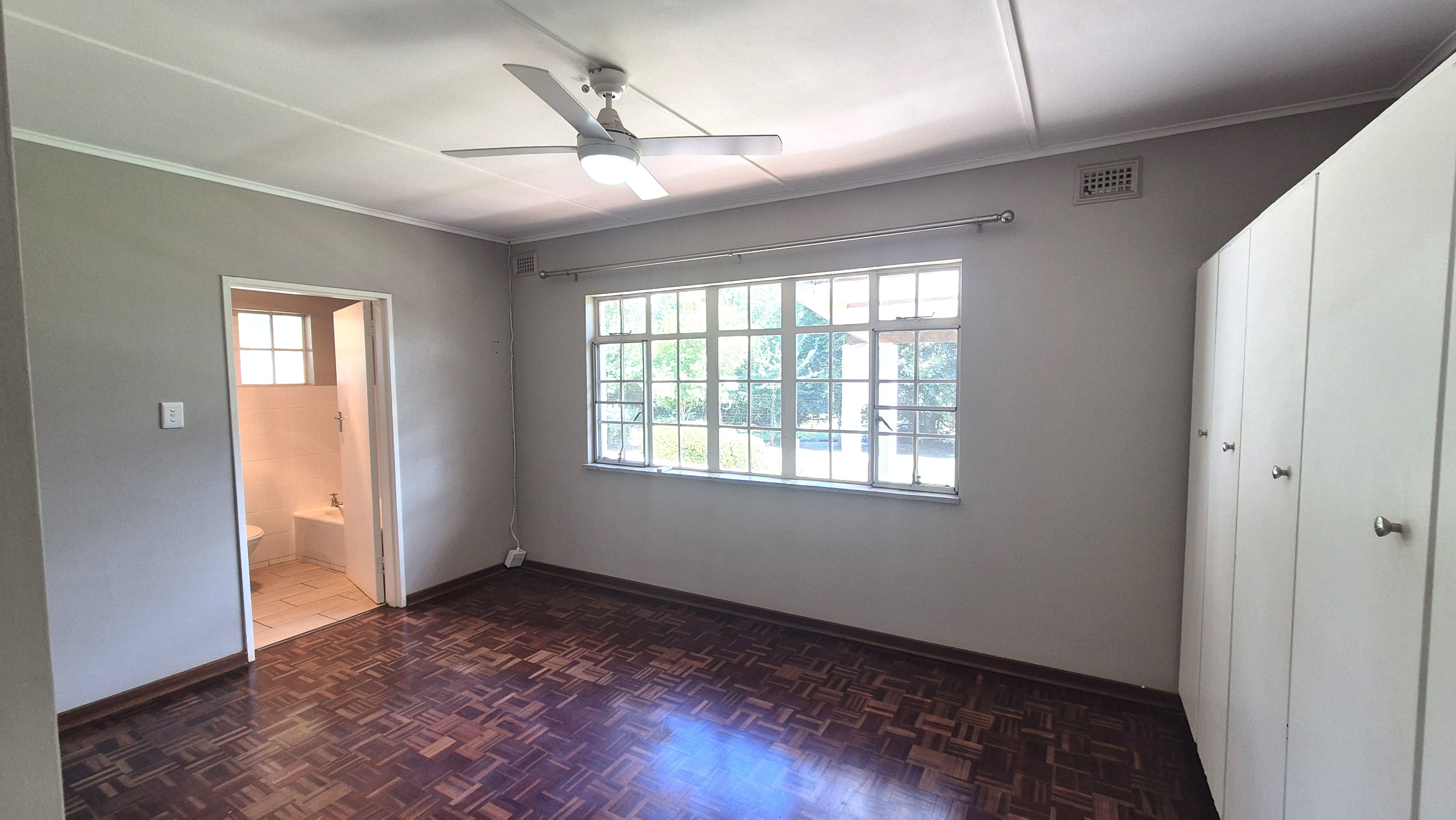 On one side of the dining room is the bedroom wing. All three bedrooms have built-in cupboards, and two include ceiling fans. The family bathroom has a separate toilet, which is practical for a busy household. The main bedroom has its own en suite bathroom.