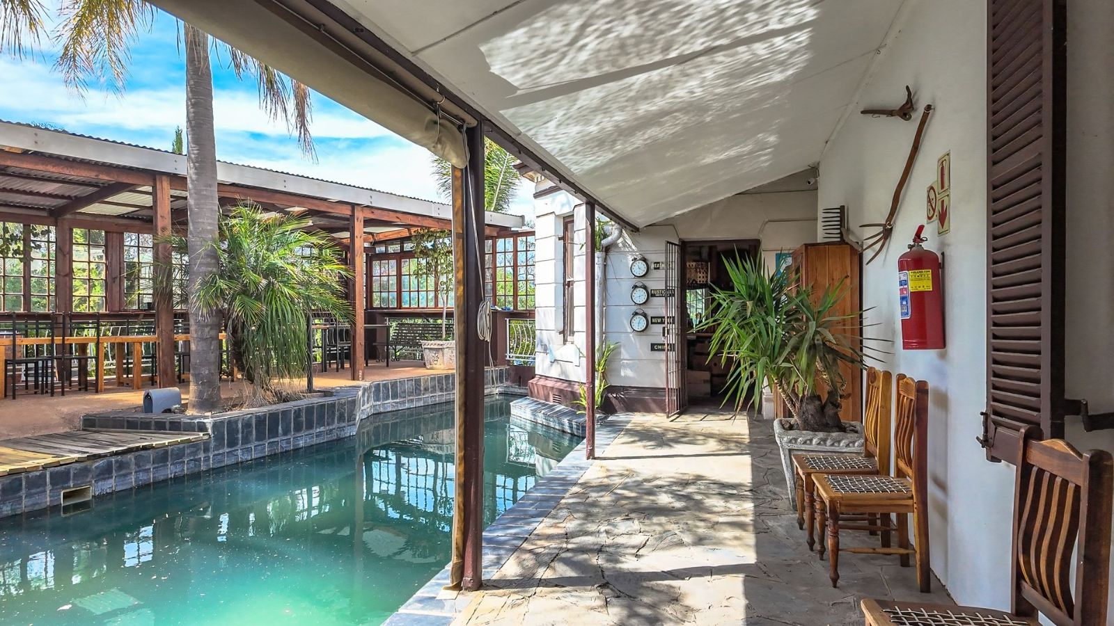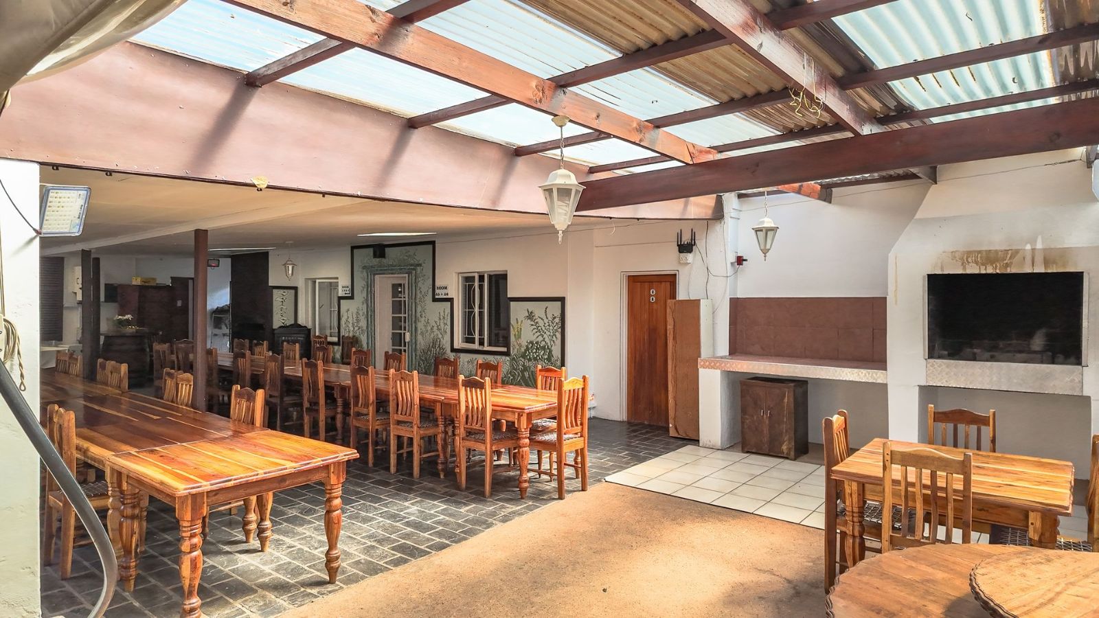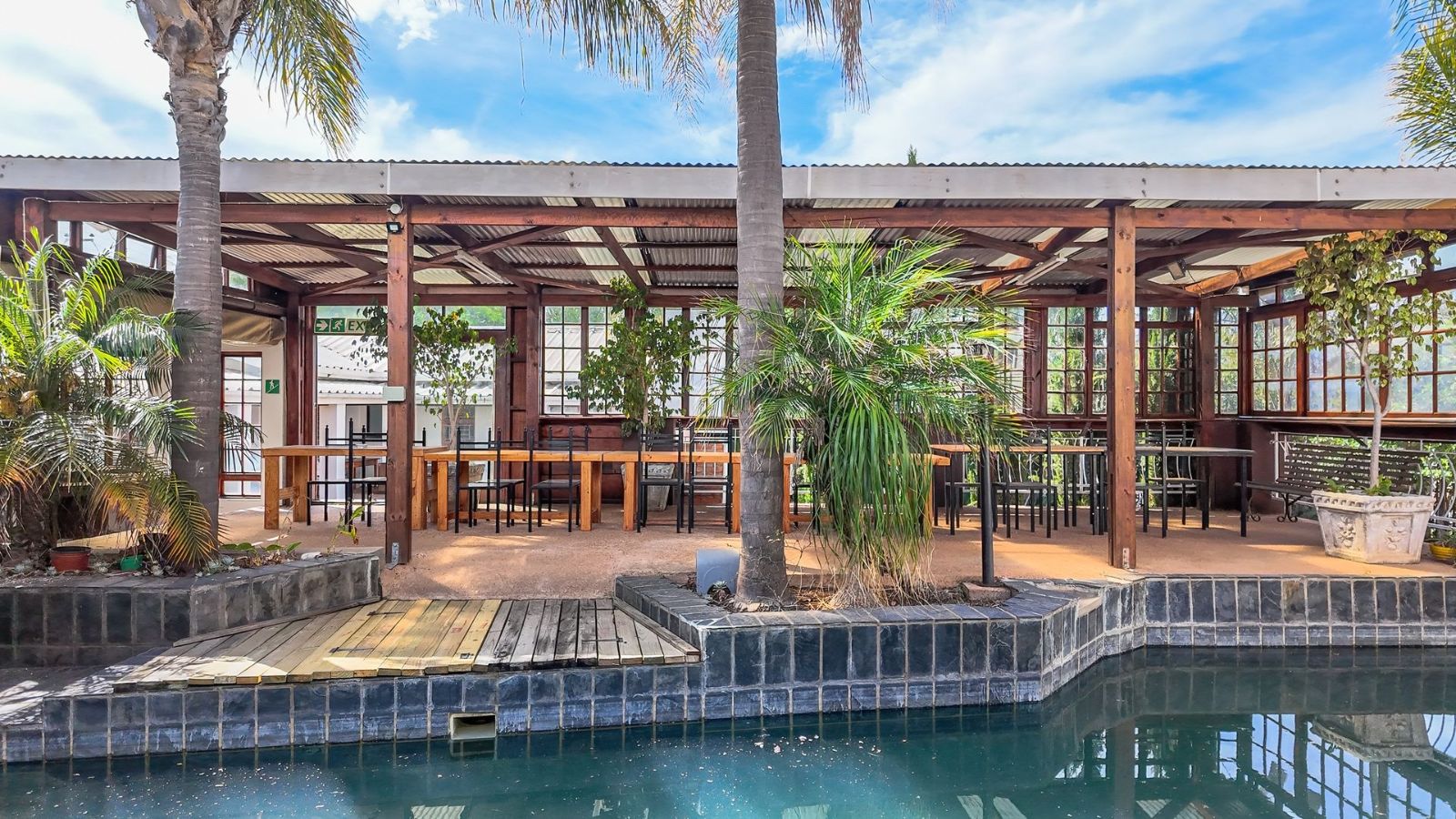Inviting lounge that flows out to a covered entertainment area complete with a swimming pool, bar, and outdoor braai facilities – ideal for hosting weddings, conferences, or private celebrations.