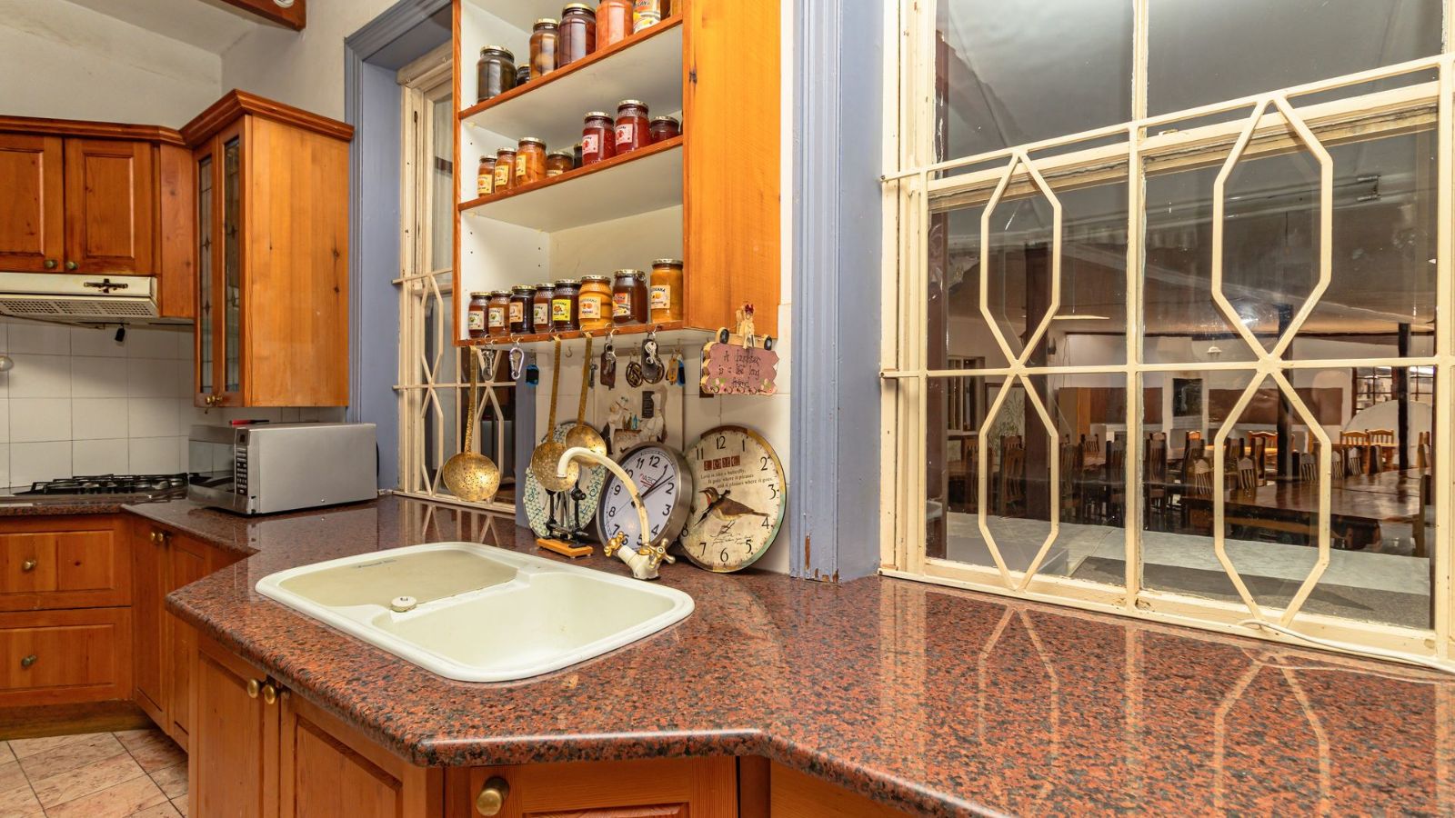 Fully equipped professional kitchen with ample cupboards, gas and electric stoves – ideal for guest catering or expanding into events and functions.