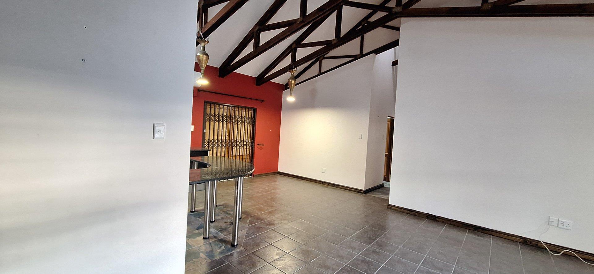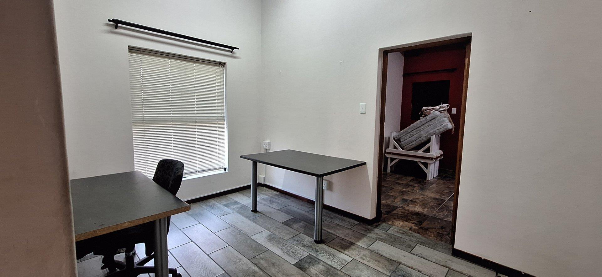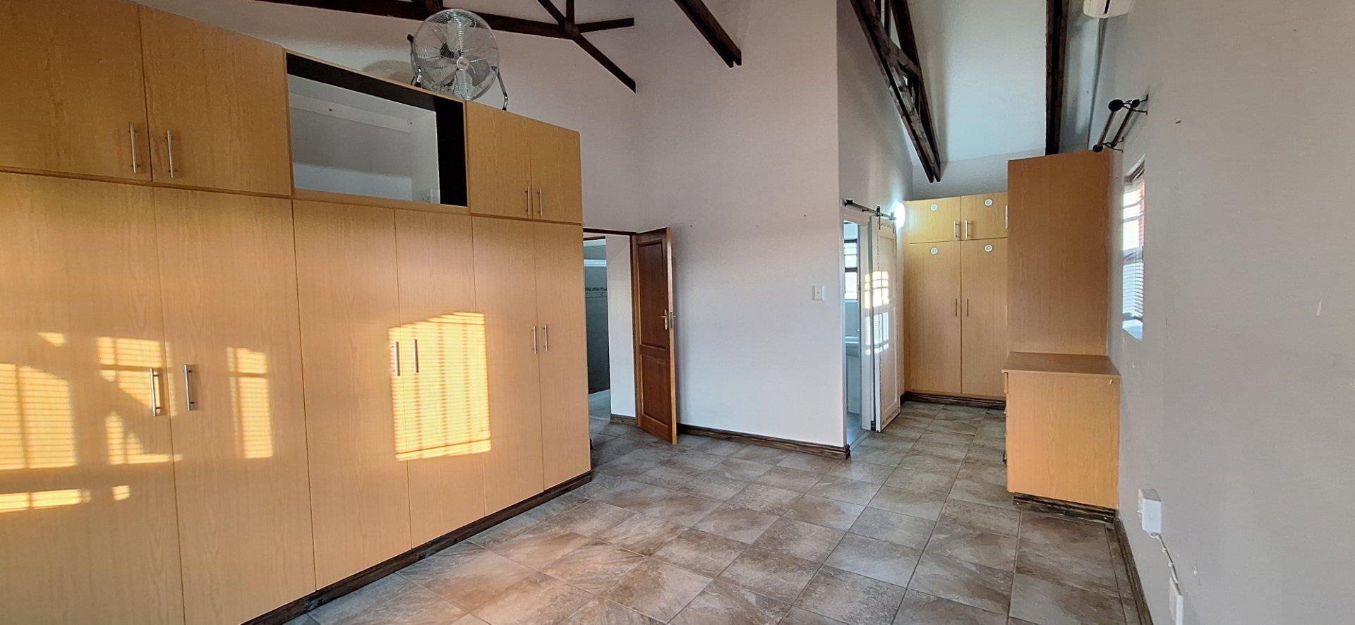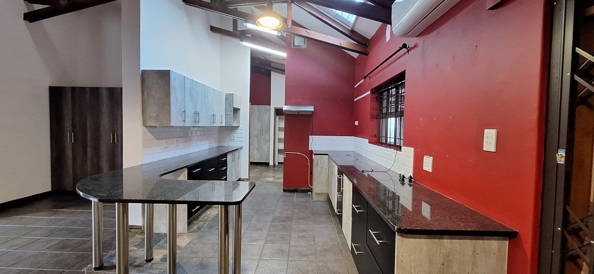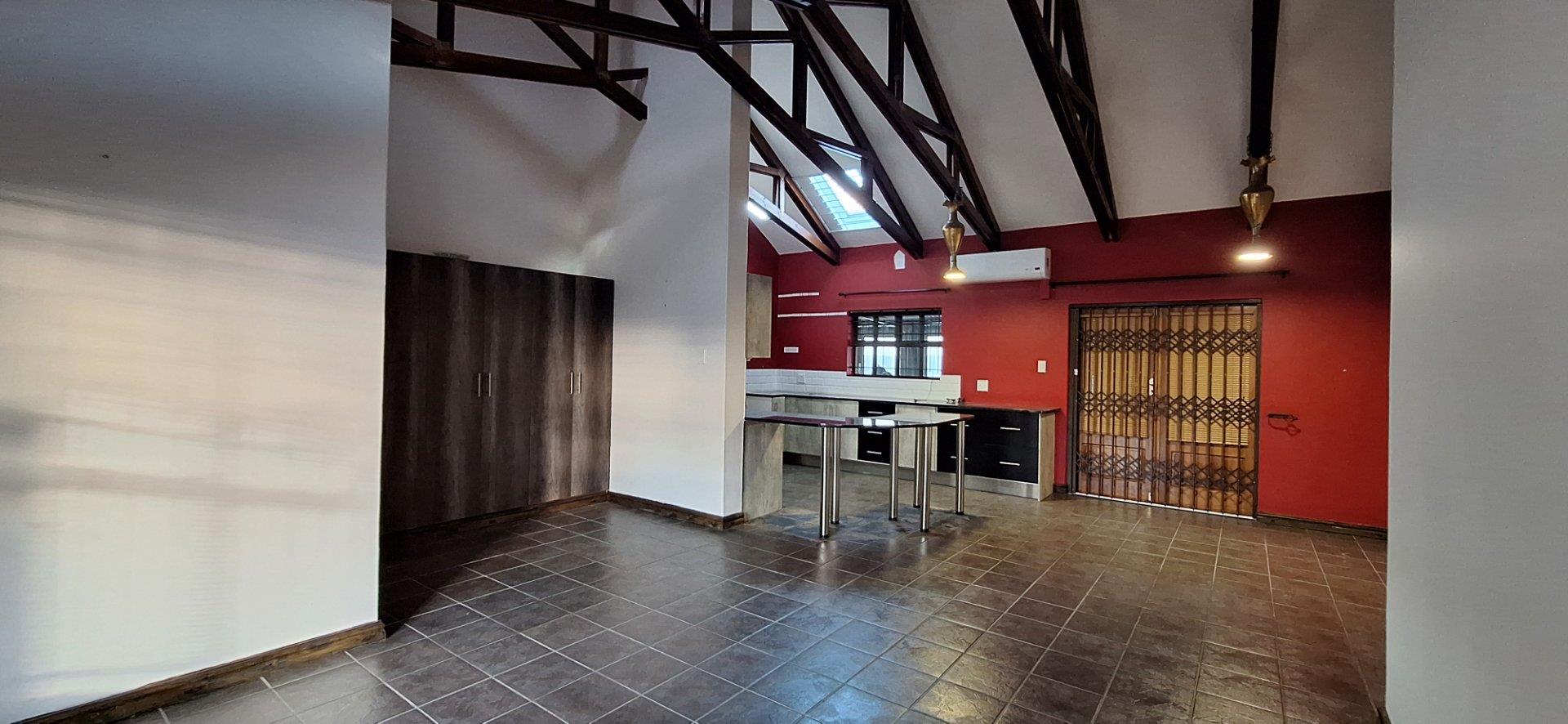 The home boasts an open-plan living and kitchen area with striking exposed beams, creating a spacious and airy atmosphere. A separate scullery and an extractor fan in the kitchen add to the functionality, while air conditioning in both the living area and main bedroom ensures year-round comfort.