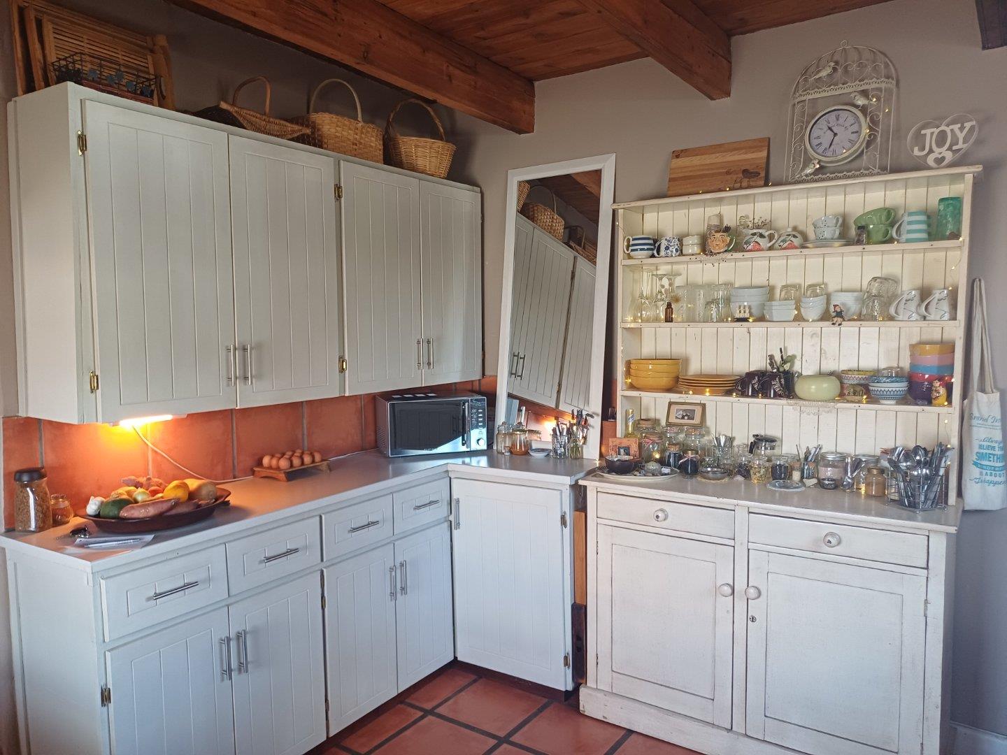 The inside oozes with warmth, tranquility, and homeliness. The country-style kitchen with its ample cupboards enhances this feeling.