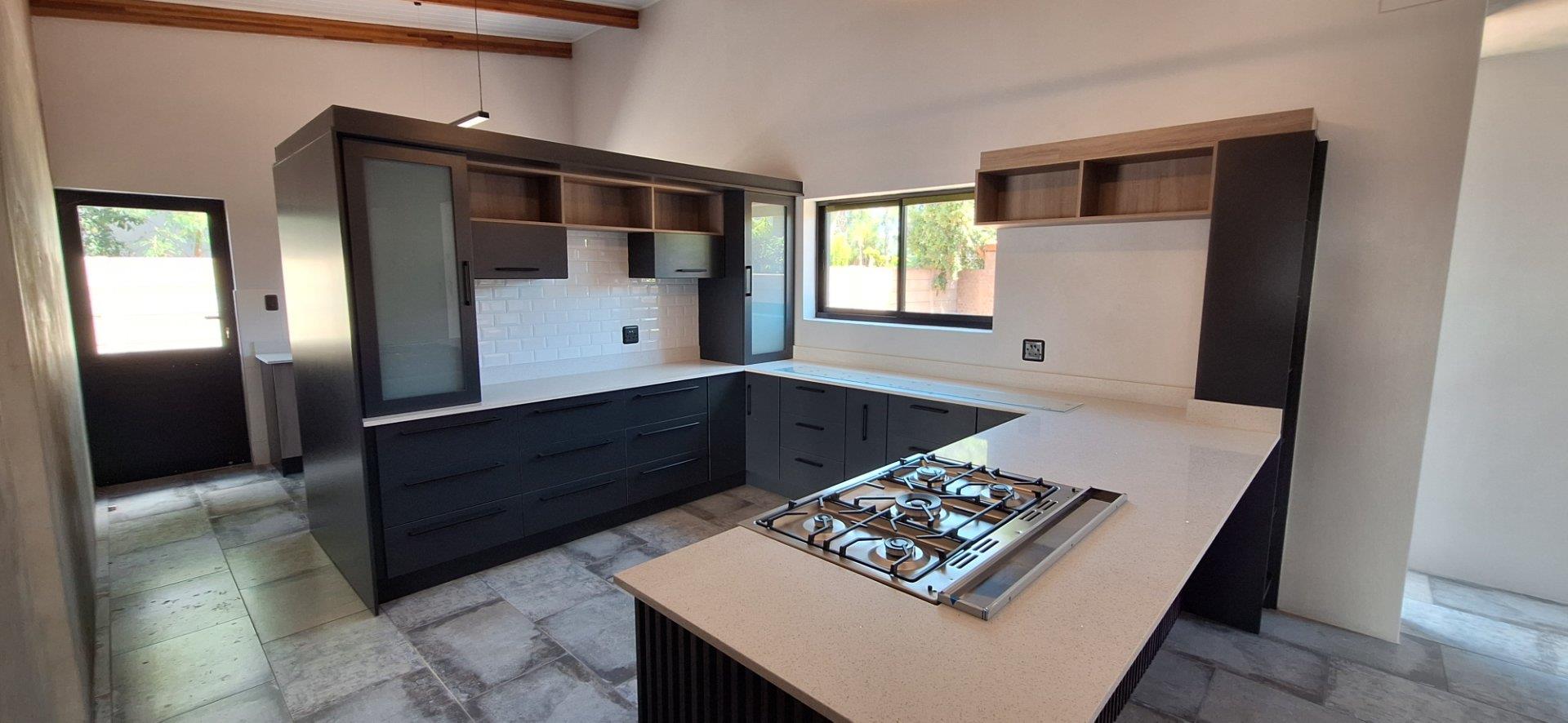 The heart of the home is the open-plan kitchen, dining, and living area, which flows seamlessly into a stunning indoor braai area—ideal for effortless entertaining and family gatherings throughout the year. The contemporary kitchen is both stylish and practical, featuring quality finishes and a separate scullery, making it perfectly suited for hosting and everyday living.