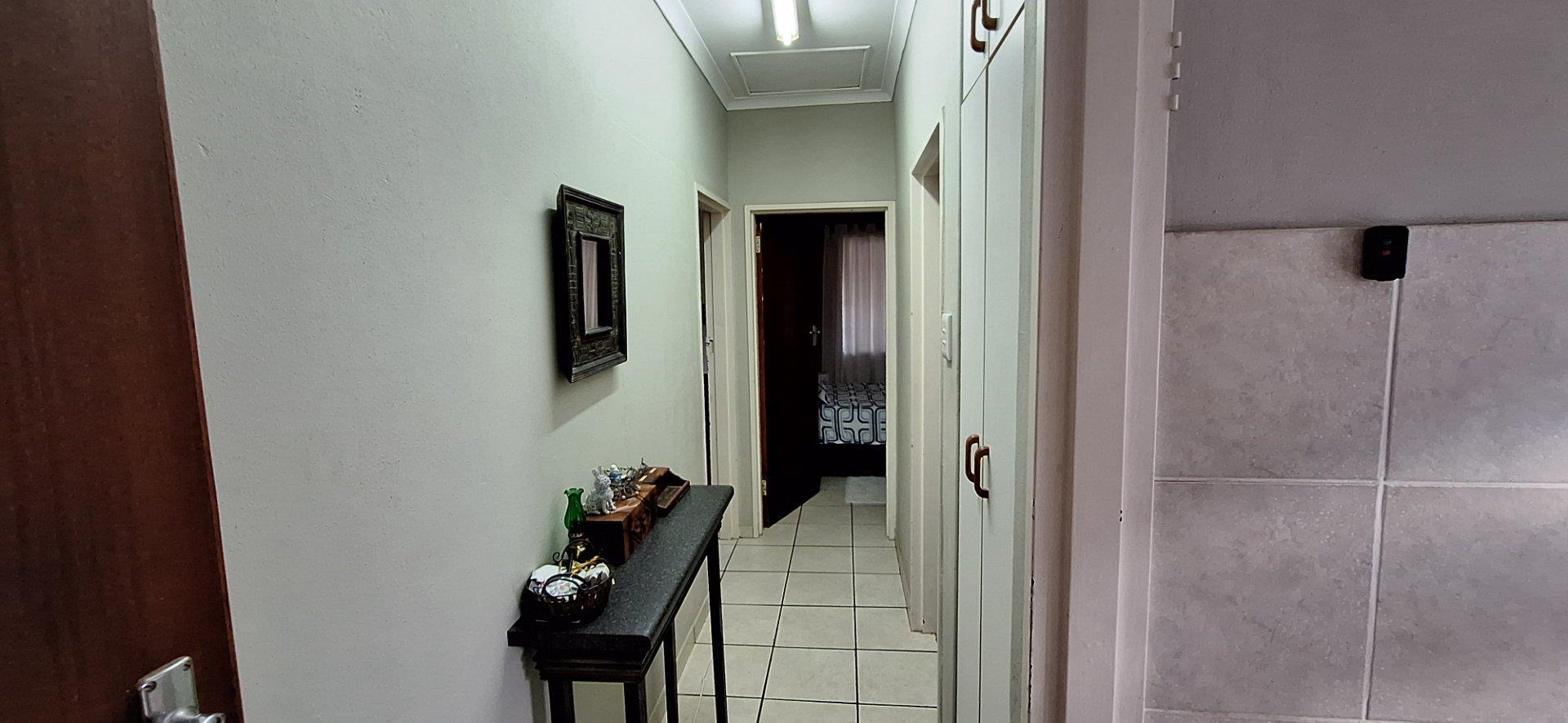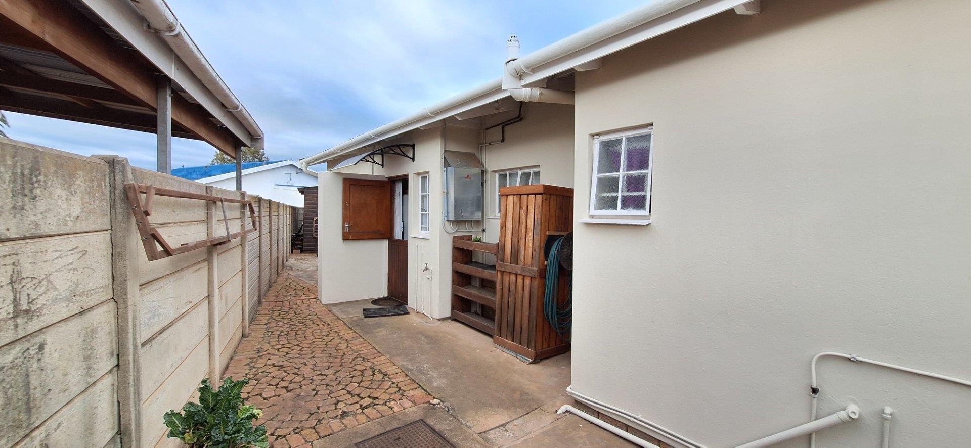 The home offers two well-sized bedrooms, with the possibility of a third bedroom, study, or hobby room. There is a full family bathroom and an en-suite bathroom with shower. All the bedrooms have built-in cupboards giving ample storage space along with a linen cupboard situated in the passage.