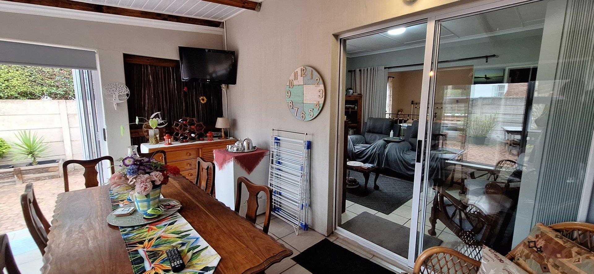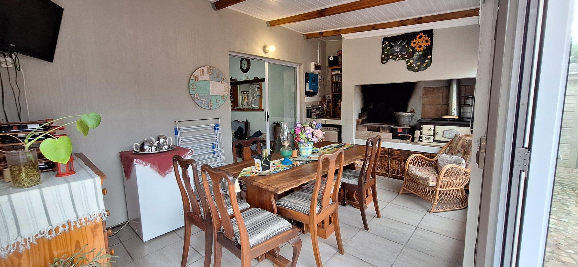 A welcoming braai room forms the heart of the home, creating the perfect space for relaxed evenings and easy entertaining throughout the year. The area has fold-away doors enabling you to open up and create an even larger area for entertaining by including the outdoors with the indoors. There is a firepit in the outdoor area making it an even more desirable entertainment area. The well-maintained garden is low-maintenance and adds to the overall appeal, offering a pleasant outdoor space without requiring extensive upkeep.