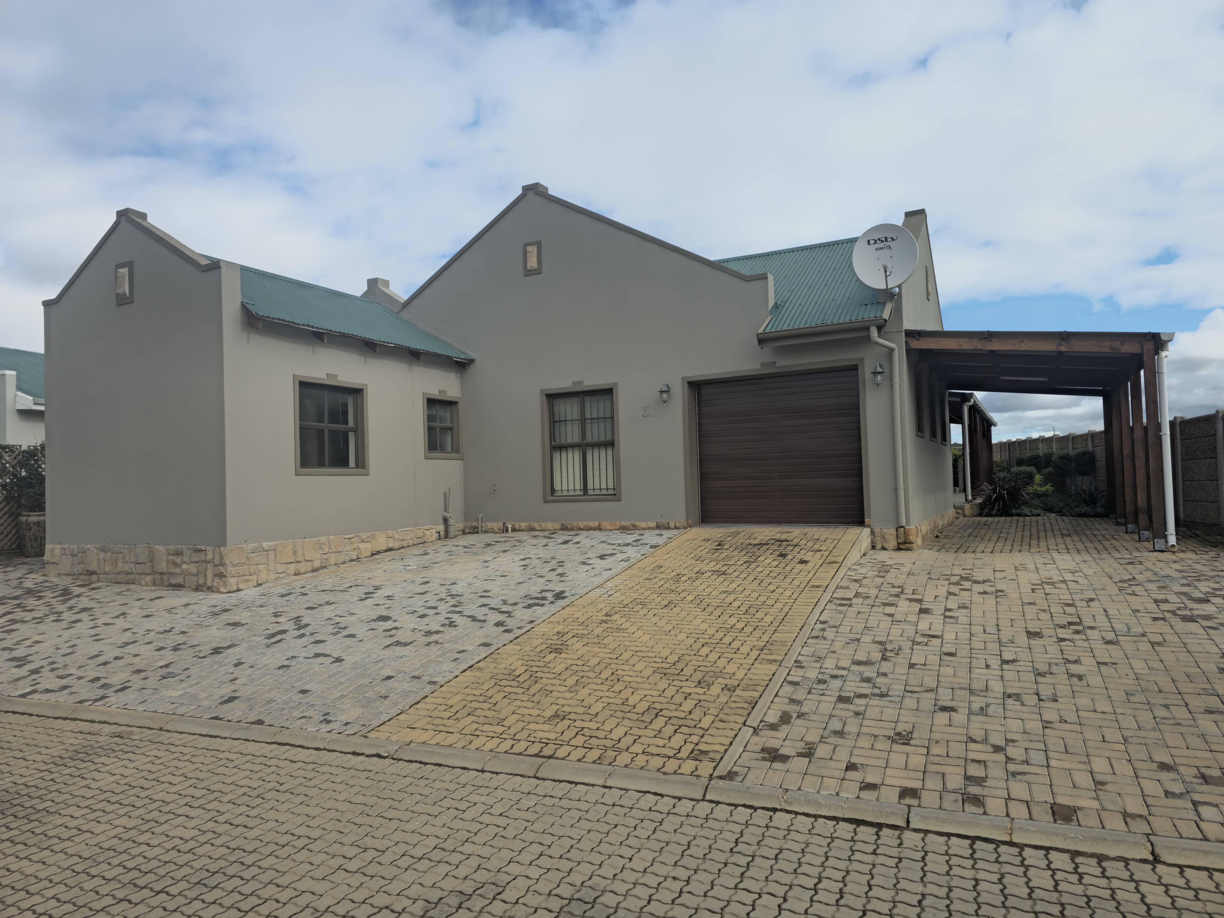 Nestled in a sought-after secure complex in Riversdale, Western Cape, this meticulously designed three-bedroom home offers contemporary comfort, energy efficiency, and breathtaking surroundings.