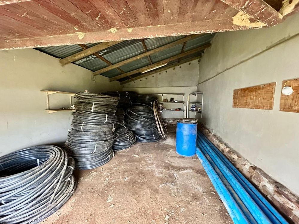 A garage, 150 m2 barn, and store room for equipment and supplies.