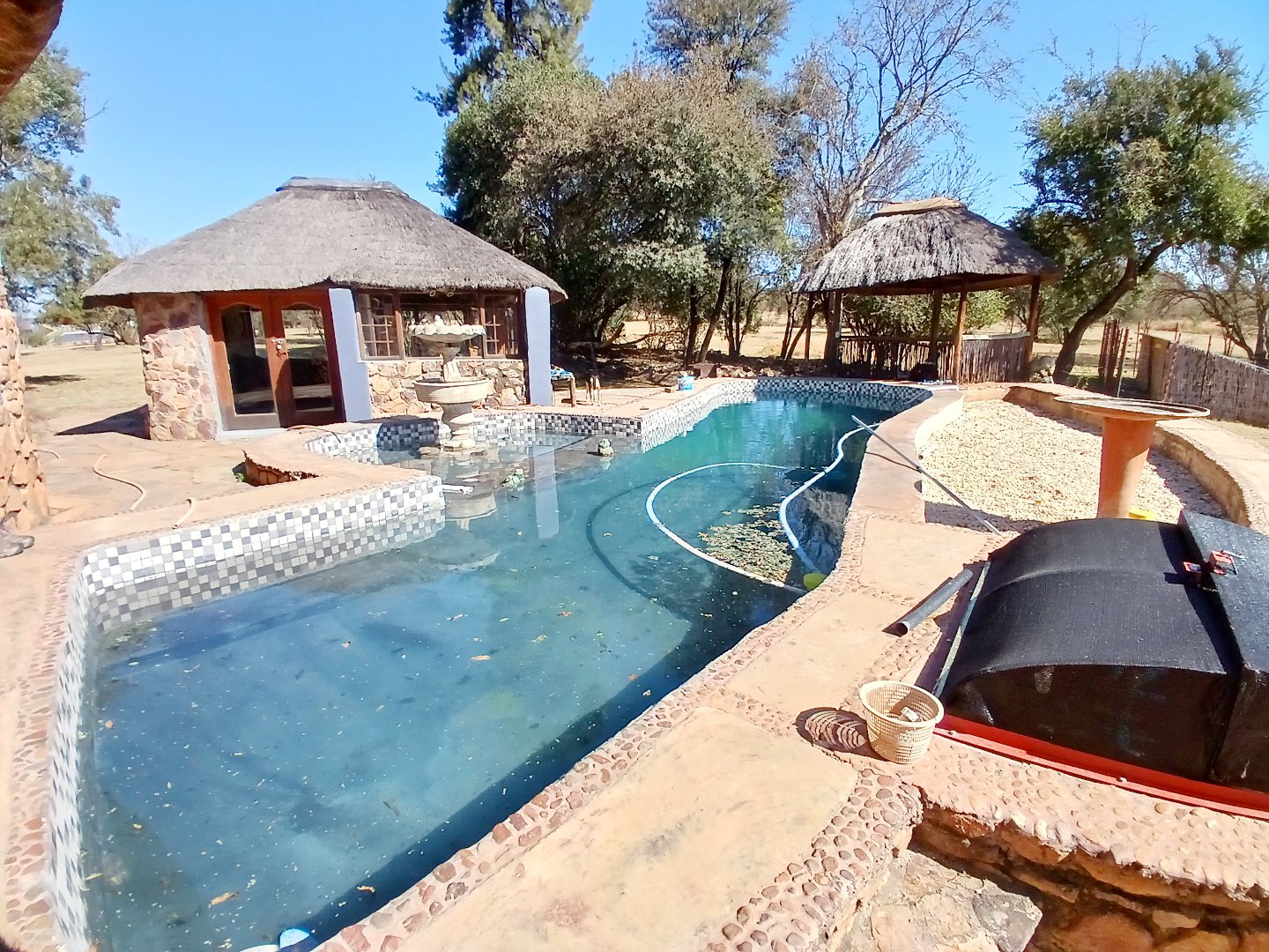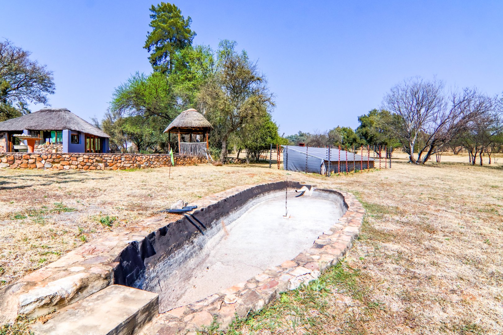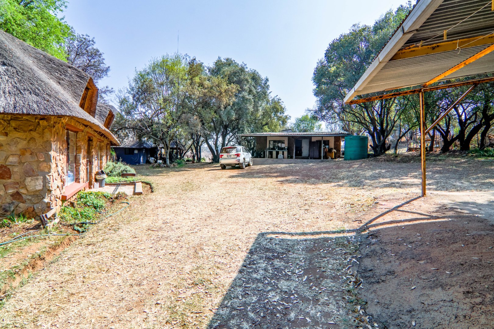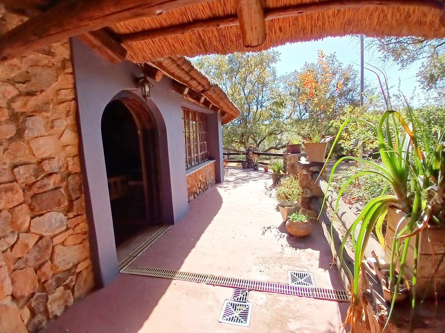 The property has a borehole, which is never used! The family harvest rainwater, which is sufficient for their needs, backed up by a number of storage tanks. For irrigation, there is a pump from the river. The property is fenced and has Roboguards and cctv for security. Solar panels provide 40-60% of power requirements, backed up by a single-phase Eskom supply. a Smart Power 15kva inverter manages power usage.