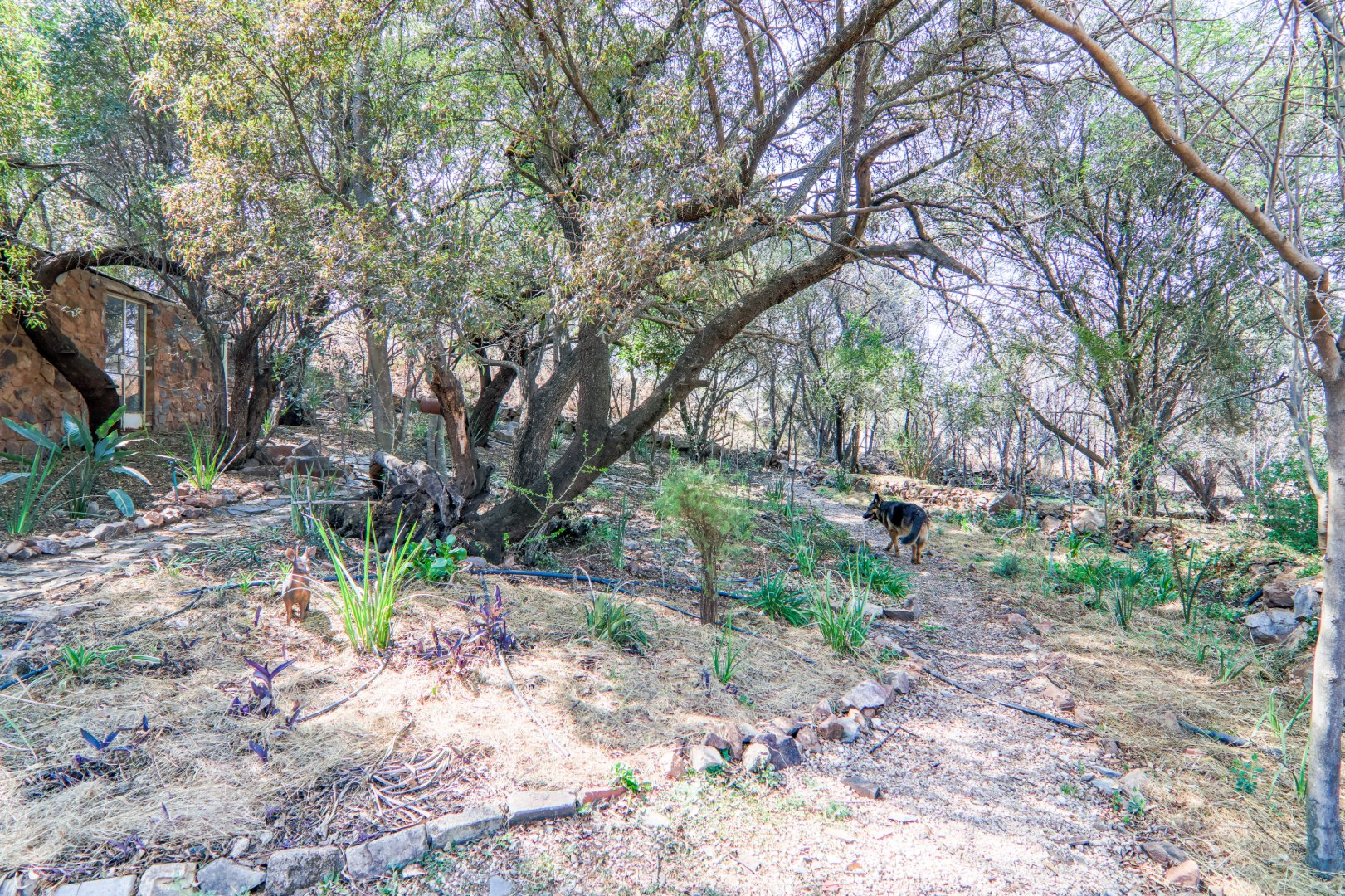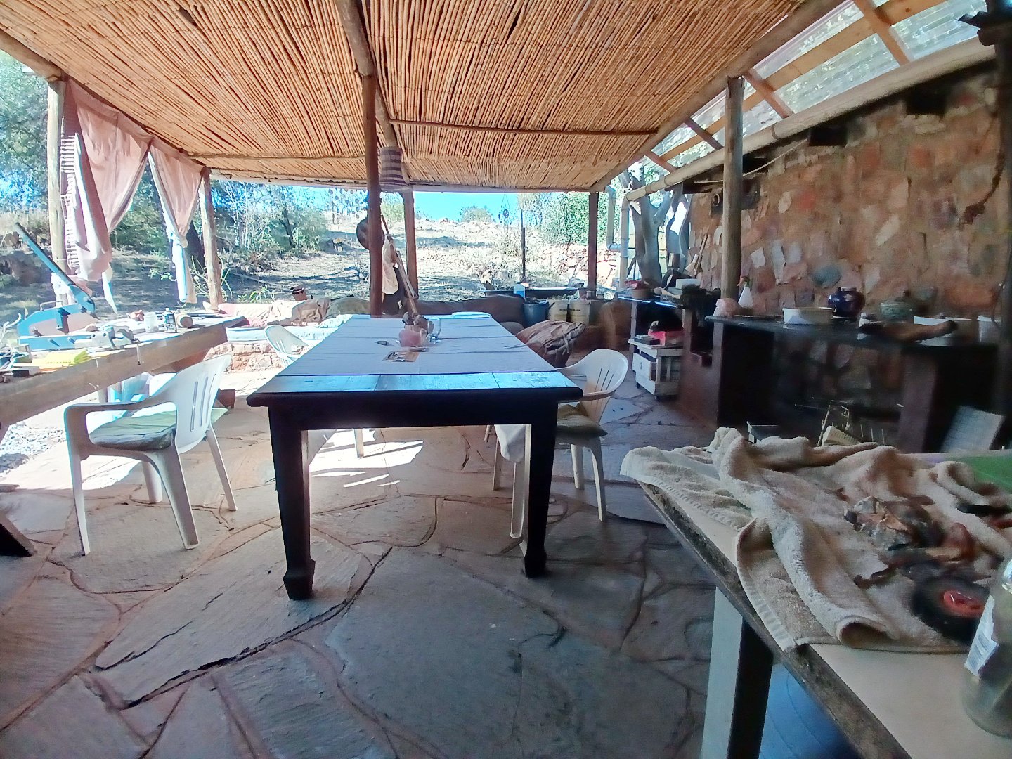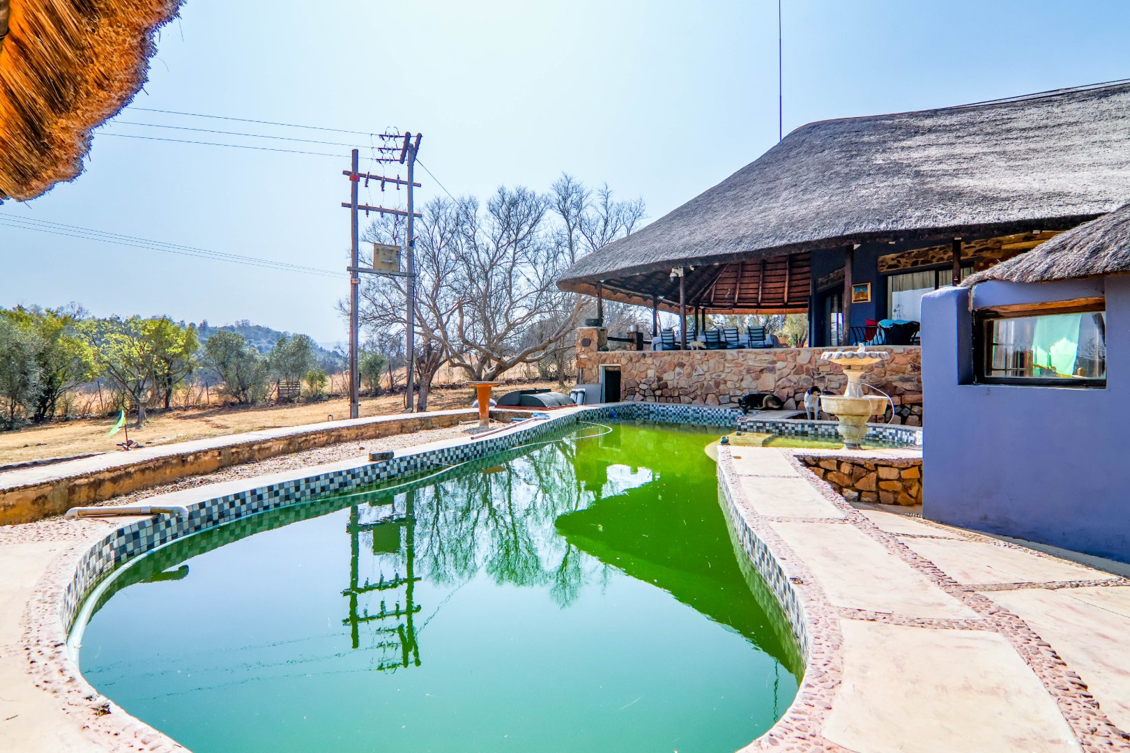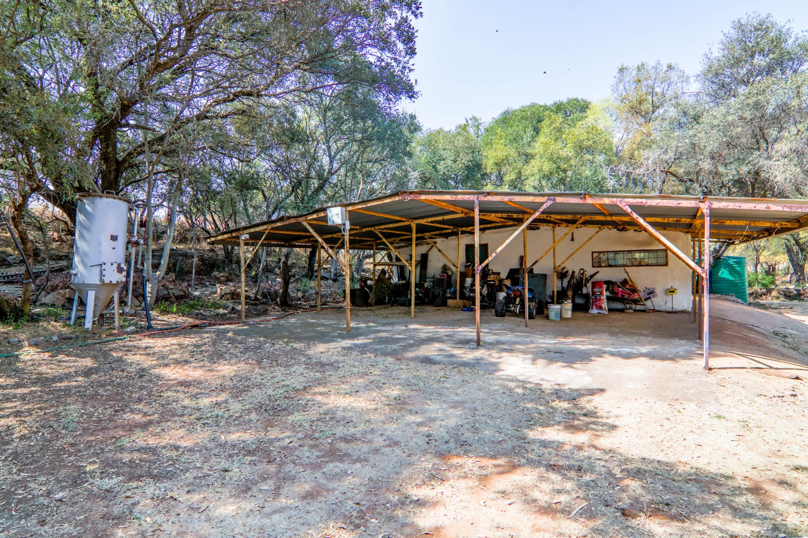 The property has a borehole, which is never used! The family harvest rainwater, which is sufficient for their needs, backed up by a number of storage tanks. For irrigation, there is a pump from the river. The property is fenced and has Roboguards and cctv for security. Solar panels provide 40-60% of power requirements, backed up by a single-phase Eskom supply. a Smart Power 15kva inverter manages power usage.