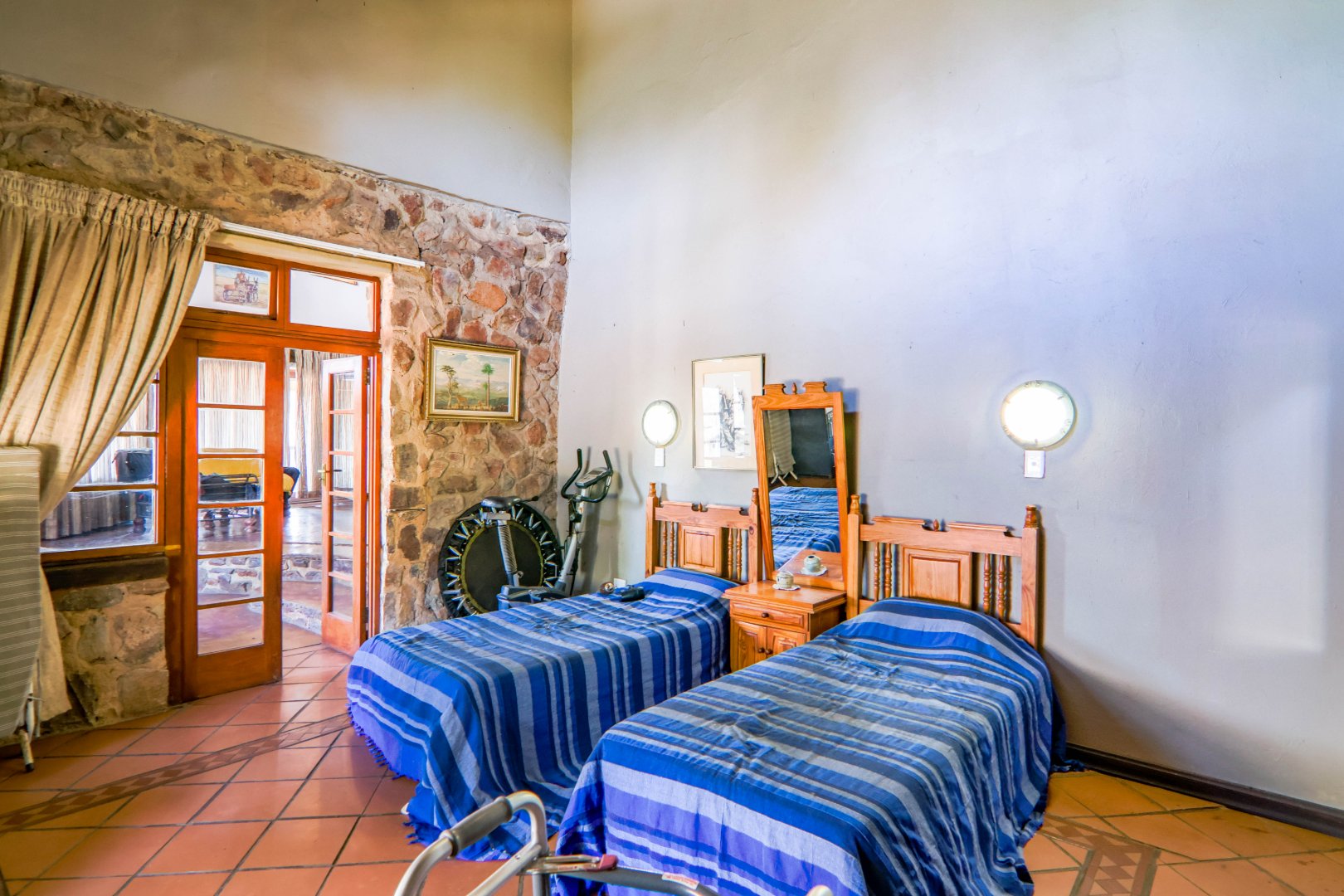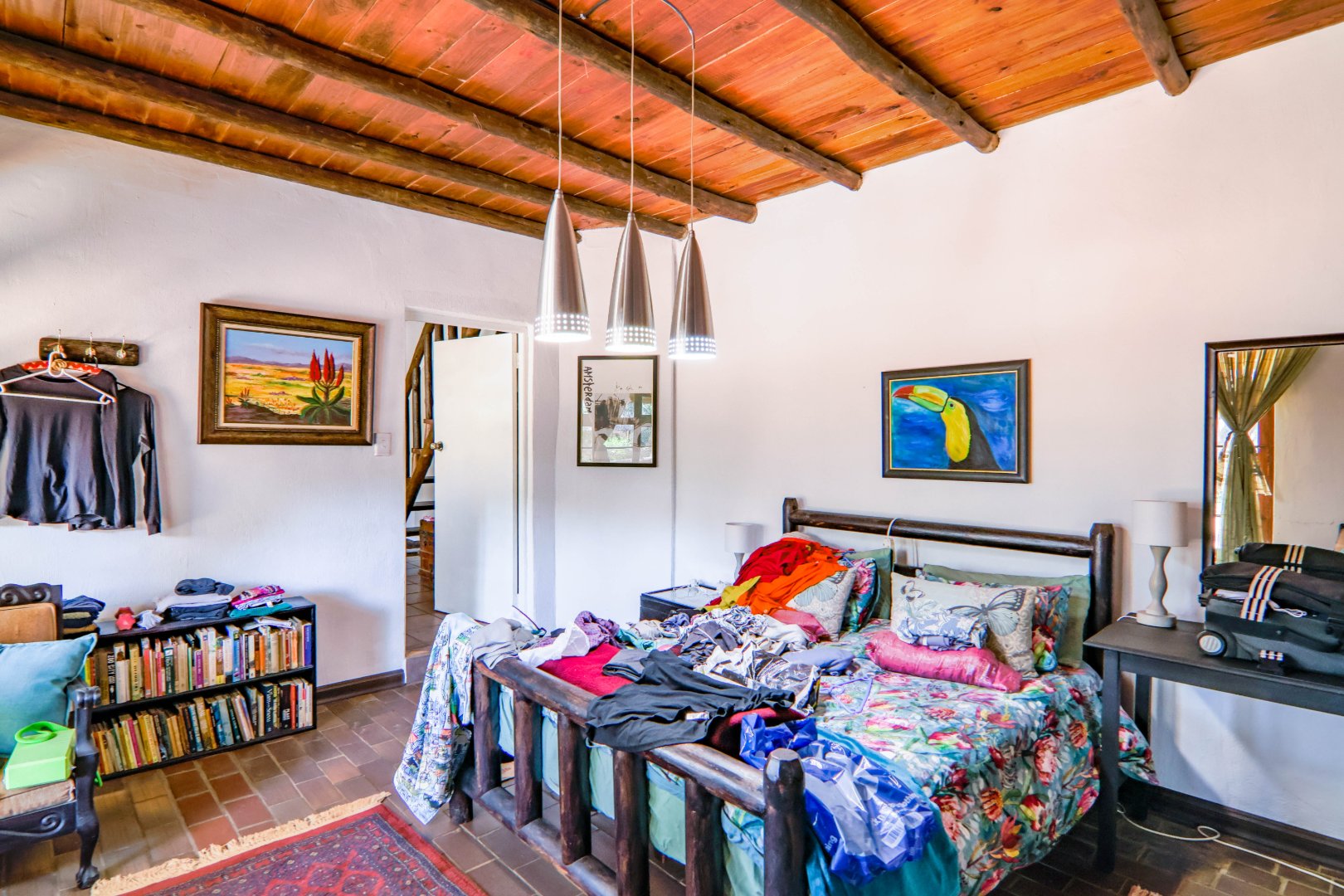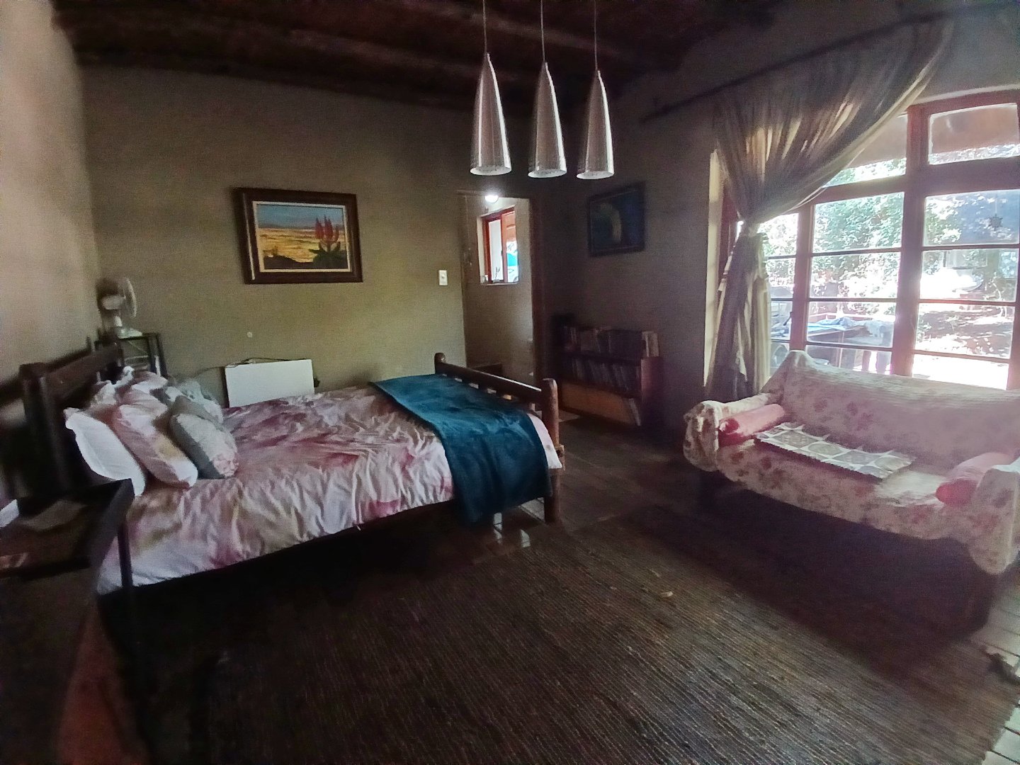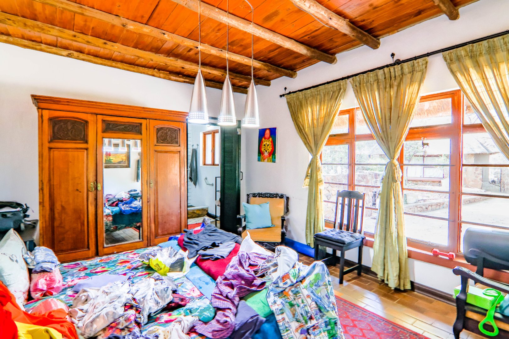 The property has a borehole, which is never used! The family harvest rainwater, which is sufficient for their needs, backed up by a number of storage tanks. For irrigation, there is a pump from the river. The property is fenced and has Roboguards and cctv for security. Solar panels provide 40-60% of power requirements, backed up by a single-phase Eskom supply. a Smart Power 15kva inverter manages power usage.