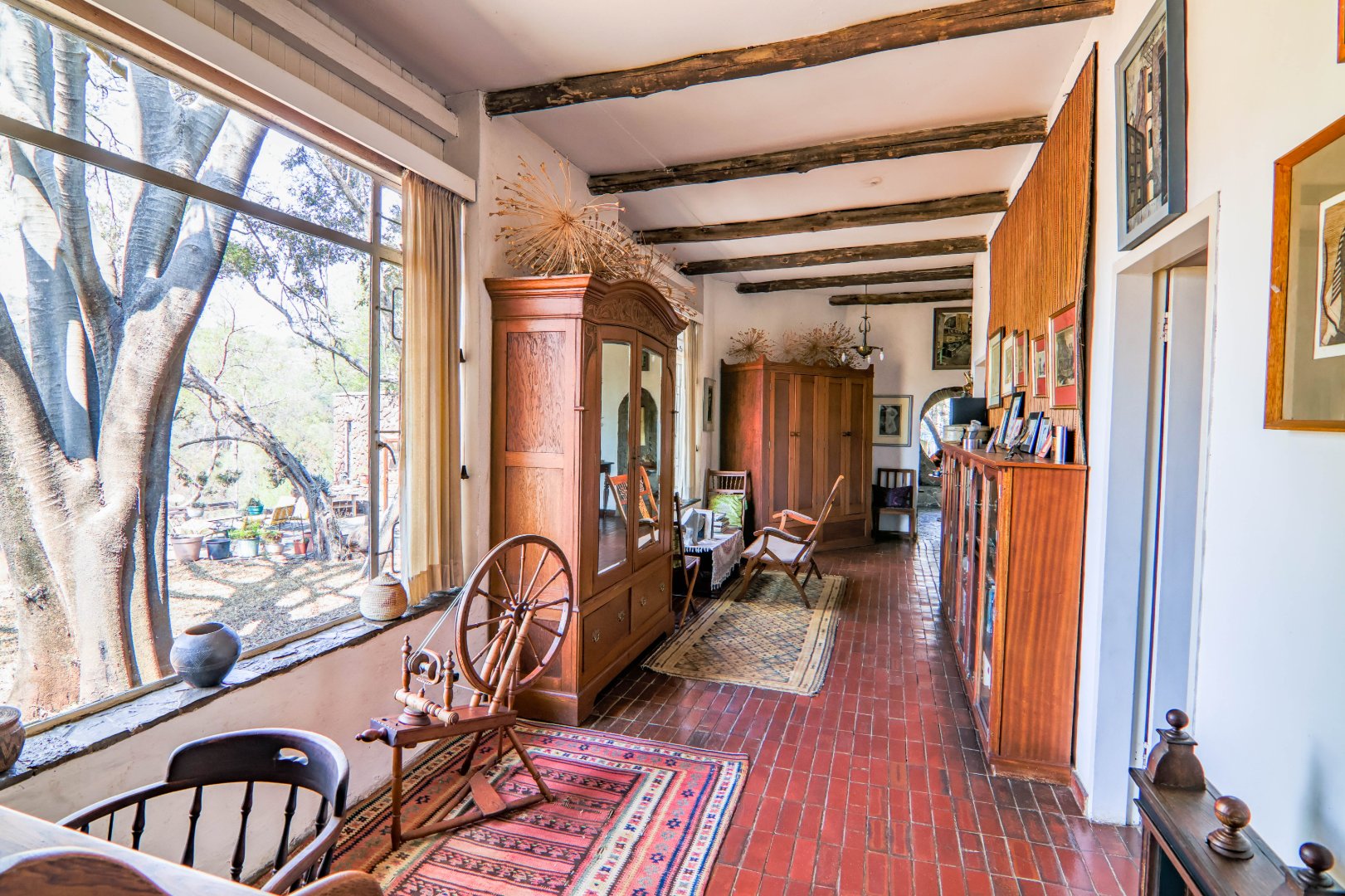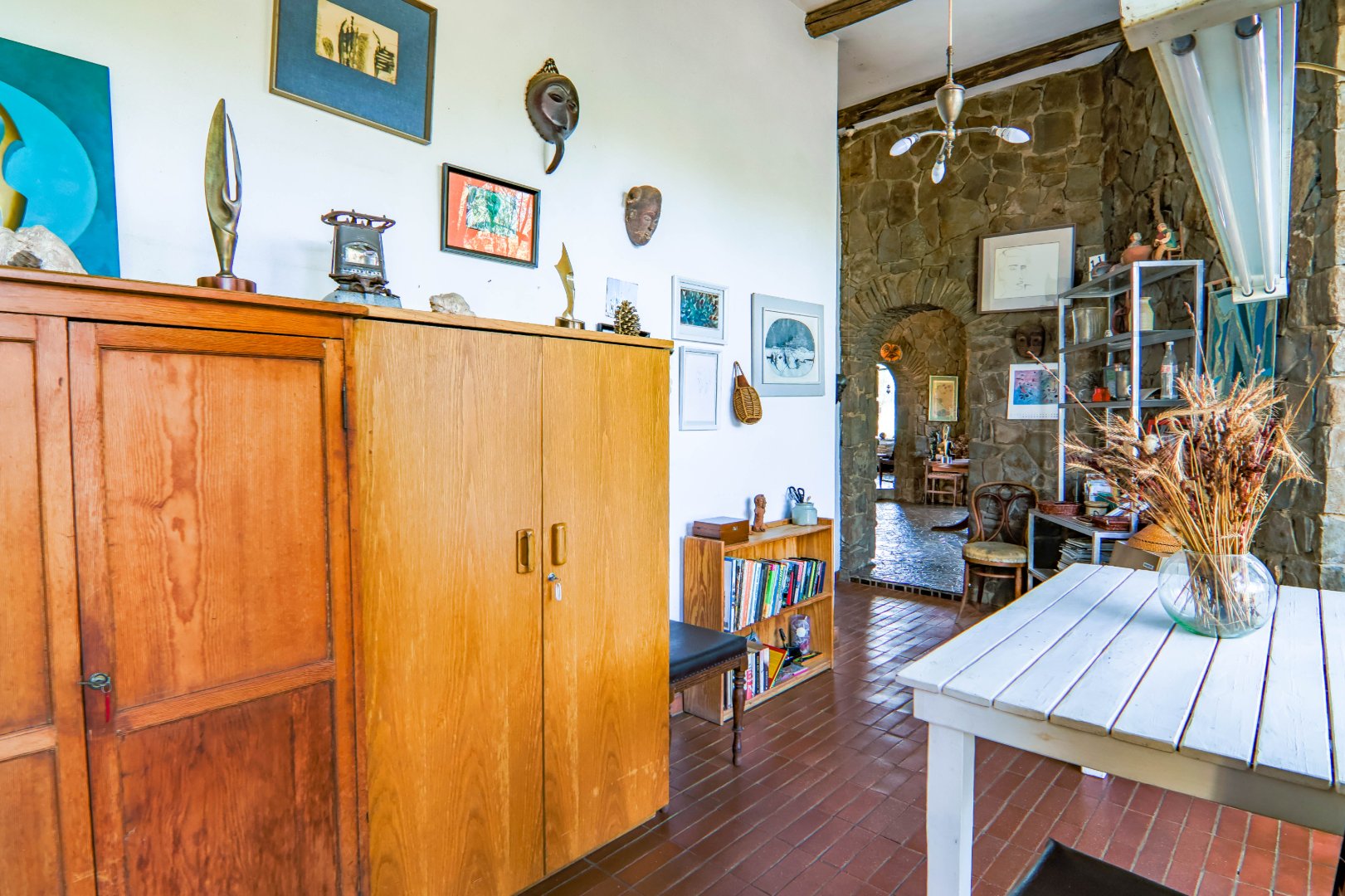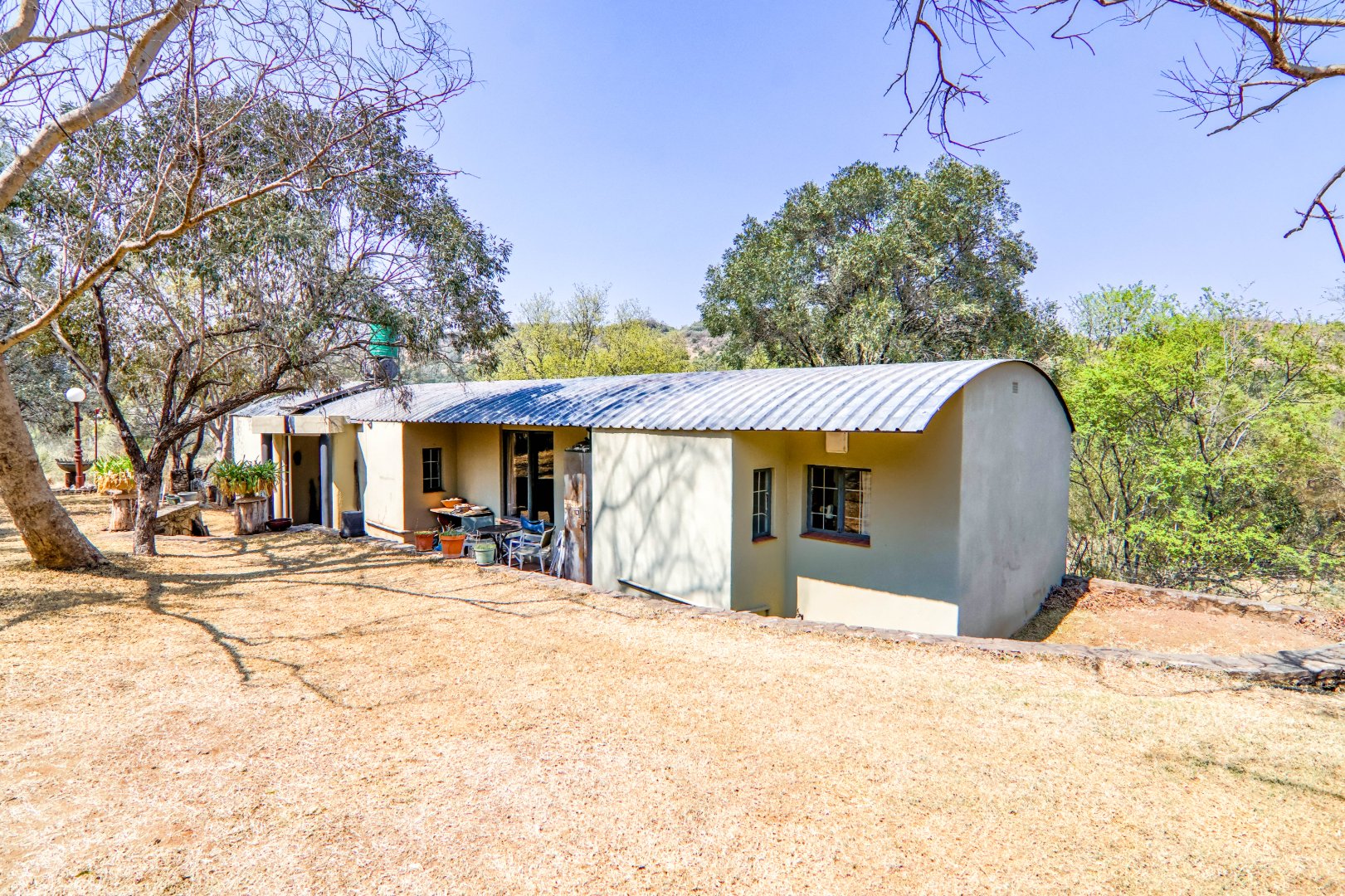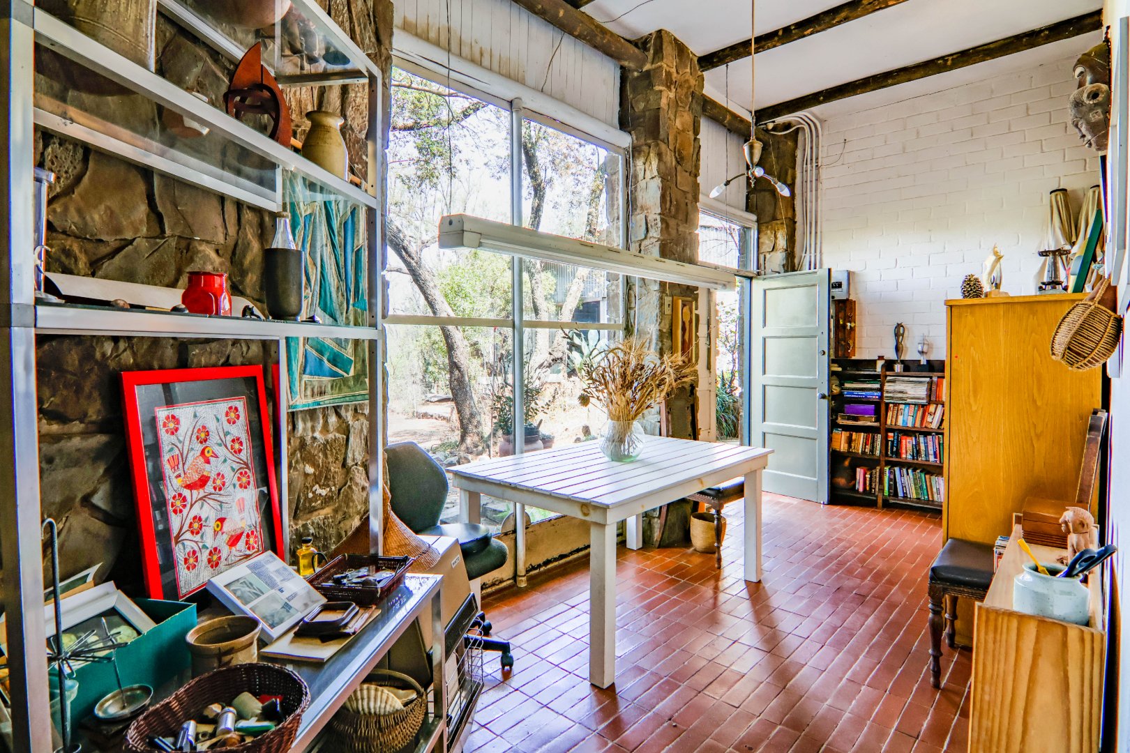 This amazing property was designed and hand built by the renowned artist Johan van Heerden. Built from local stone, the large main house has amazing flow. The house has 3 bedrooms, 2 bathrooms, a large studio, workshop and numerous outbuildings. A 3-bedroom cottage, staff quarters, garage and more, all enclosed within a secure area surrounded by an electric fence.